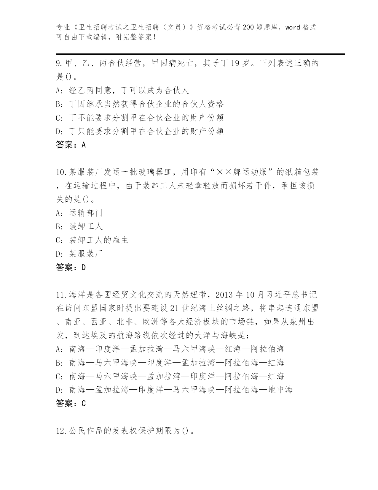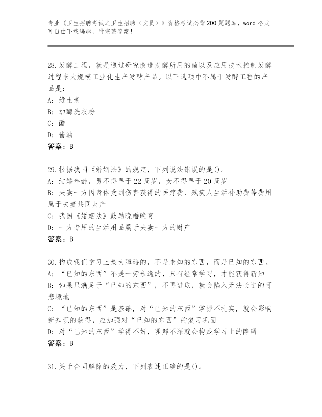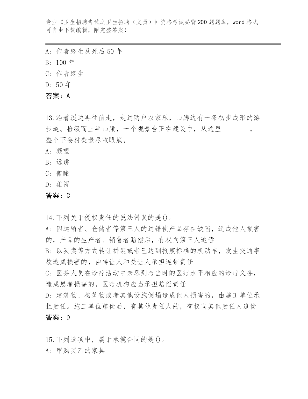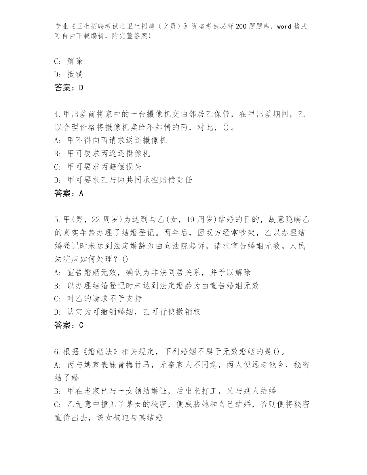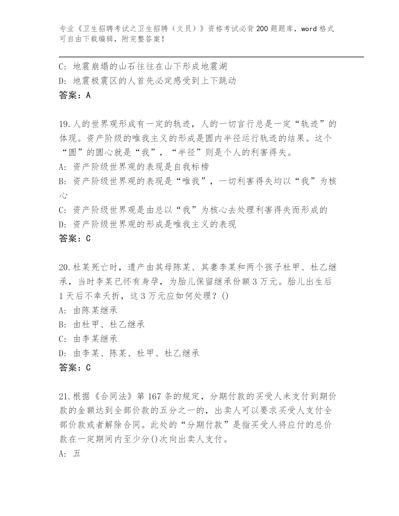 山东省2024《卫生招聘考试之卫生招聘(文员)》资格考试必背200题题库带答案