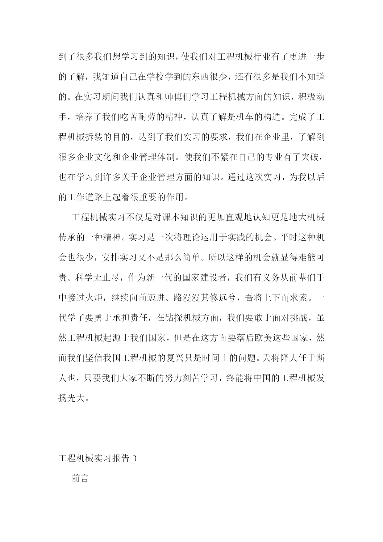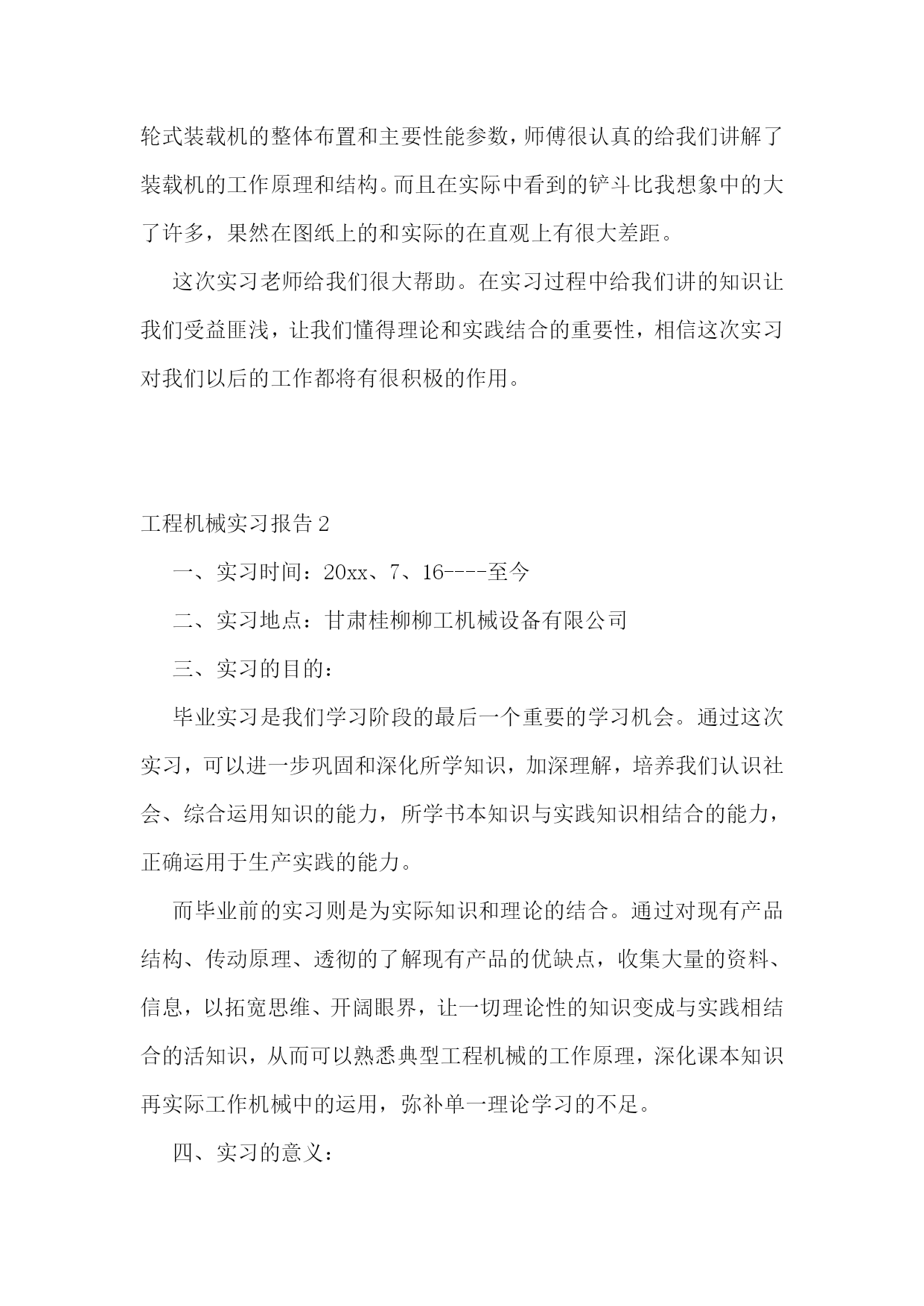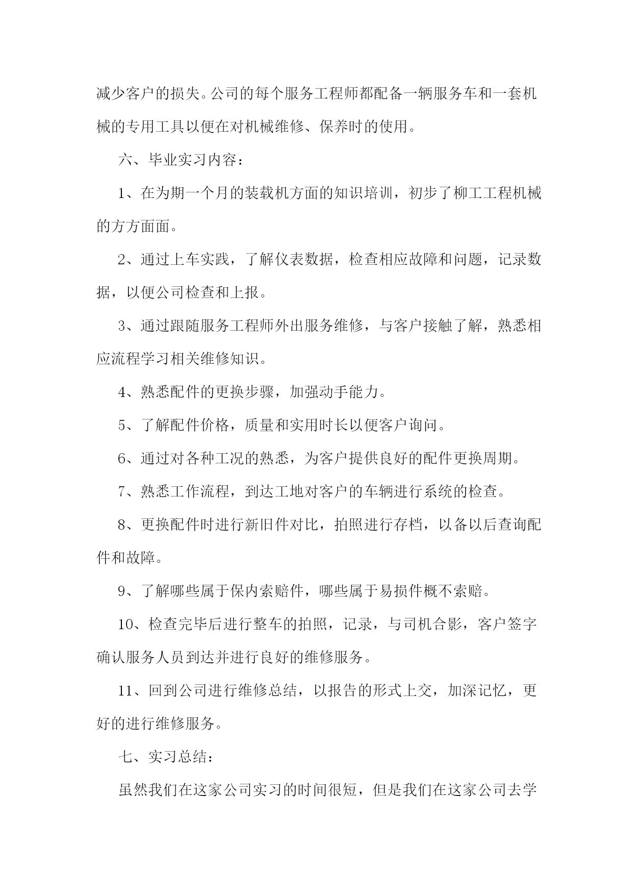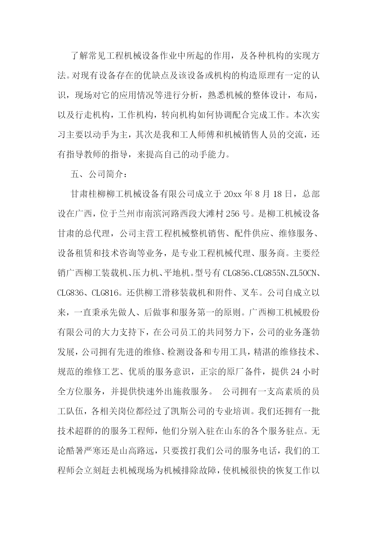 工程机械实习报告工程机械实习报告1一、实习时间:20xx.05二、实习单位:北京恒日工程机械有限公司三、实习单位基本情况简介北京雷沃工程机械有限公司北京恒日工程机械有限公司(简称北京恒日),成立于1997年,旗下包括北京恒日投资有限公司、北京小松工程机械有限公司、北京山推工程机械有限公司,是为国内矿山、桥梁、公路、水利、地产、铁路、物流企业以及诸多基础建设行业提供工程机械类最优产品和最佳服务的专业公司,是国内一大批央企挖掘机、装载机、推土机、叉车等工程机械设备使用单位的战略合作伙伴,是中国工程机械工业协会代理商委员会副理事长级单位,享有国家经贸委授予的进出口经营权。截止20xx年底,北京恒日总资产达到25000万元,年销售收入突破20xx00万元,纳税超过7000万元。在职员工近20xx人,专业技术人员500人,遍布全国14家子公司,超过100家服务站,各地服务车300余辆。拥有国内行业中最为完备的办公设施和现代化车间,是中华人民共和国劳动与社会保障部指定的工程机械维修工劳动技能鉴定单位,是国内最大的工程机械销售公司和行业最具声誉的标杆企业。北京恒日自创建伊始即立志成为行业进步的领导者和推动者,创造了行业内诸多“第一”。成立中国第一家工程机械现货市场,成为华北地区第一家年销售过亿的工程机械代理企业,建立全国第一支工程机械售后服务专业团队,成为北京地区第一家获得工程机械按揭贷款的代理商企业,行业第一家公司出资赞助超过二十四人高管团队集体攻读MBA的先例,首先打造“成功伴侣无忧管家”概念,跟随设备远赴亚、非、拉等各大洲进行跟踪服务的企业,成为行业第一家引进1ERP管理系统的工程机械销售公司,率先开创“恒日客户节”销售模式,引领行业新浪潮未来,北京恒日仍将继续带给行业一个又一个的惊喜四、实习目的:通过理论联系实际,巩固所学的知识,提高处理实际问题的能力,了解设计专题的主要内容,为毕业设计的顺利进行做好充分的准备,并为自己能顺利与社会环境接轨做准备。五、实习内容根据毕业设计需要,我们详细了解了北京恒日工程机械有限公司的雷沃装载机,使我更多的在感官上对装载机的歌主要部件有了一个直观形象的认识,并加深了对理论知识的理解,其中装载机的各主要参数与整体布置情况,是对我毕业设计的重要参考资料。详细内容为:装载机属于铲土运输机械类,是一种通过安装在前端一个完整的铲斗支撑结构和连杆,随机器向前运动进行装载或挖掘,以及提升、运输和卸载的自行式机械。装载机分别实现装载机的前进、铲装、后退、转向和卸载五个作业动作,用于装卸成堆的散装物料。装载机主要用于铲装土壤、沙石、煤炭、石灰等散状物料,也可对矿石、硬土等作轻度铲挖作业,换装不同的辅助工作装置还可以进行推土、起重、、破碎等作业。由于装载机具有作业速度快、效率高、机动性好、操作轻便等优点,因此广泛用于公路、铁路、建筑、水电、港口、矿山等建筑工程。公司主要产品:雷沃装载机ETX系列可分为:30系列、50系列和60系列,30系列有FL936其主要适用于沙场,土方和矿山,以下是它的工作环境发动机的基本配置:采用玉柴或潍柴发动机,工作装置都为反转六连杆系统,转斗油缸有单个的也有双个的,多为单个。以ETX956为例:1.标准斗容3m,发动机功率162kw,工作质量16500kg。2.铰接式车架结构,转弯半径小。3.整体式密封减振驾驶室,视野开阔,安全舒适,可选配冷暖空调。4.采用全液压流量放大转向系统,转向轻便快捷。5.单管路气顶油行车制动系统加紧急制动系统,安全可靠。6.工作装置有装卸叉、侧卸斗、除雪等工作装置供选7.变速箱采用同轴变速液力传动,变矩器为二级变矩器。技术参数:操作质量:16500±200kg斗容范围:1.8~4.5m最大牵引力:160±5kN转向角度:左右各35±1°提升时间:≤6.5s爬坡能力:≤30°轮胎规格:23.5—25整机长度:8034±100mm整机高度:3483±50mm卸载矩离:1200±50mm运输位置收斗角:46°额定功率/转速:2200r/min额定载荷:5000kg最大掘起力:167±5kN后桥摆动角度:±11°三项合时间≤11.5s整机宽度:2976±30mm普通卸载高度:2970±50mm加长卸载高度:3365±50mm下挖深度:60mm最小转弯半径:铲斗外侧7720mm主要特点是:1.工作装置采用了短棒状,直繁荣的新结构,掘起力更,单臂时间短,易转移与材料由分散停止功能,任何地方自动平功能,高效率。2.前后车架铰链中的轴距,这种结构类型中安排点,这台机器有一个较小的转弯半径,提高整体稳定性。没有前后桥之间,无动力循环消费,前方和后方的轨道速度的差异始终是相同的,降低转向