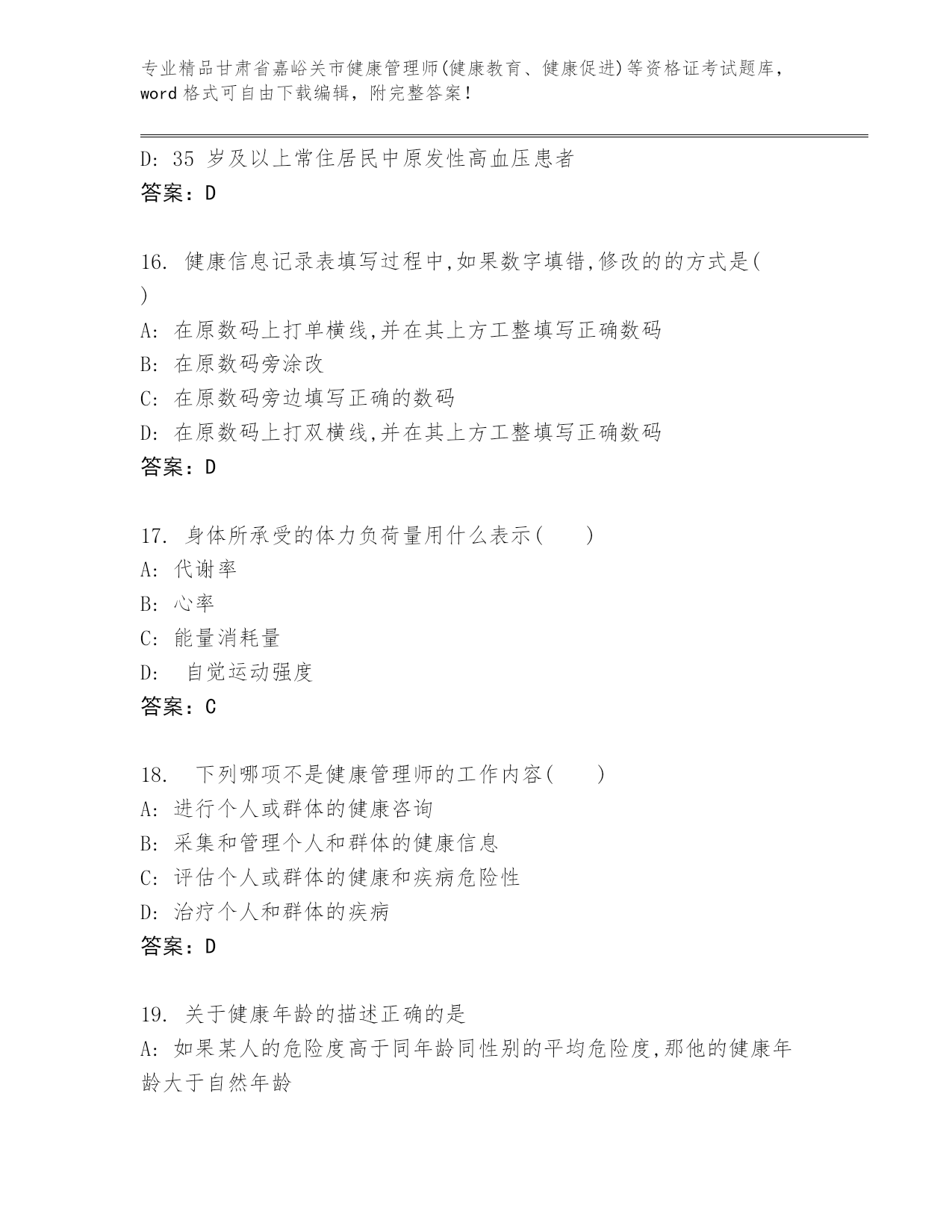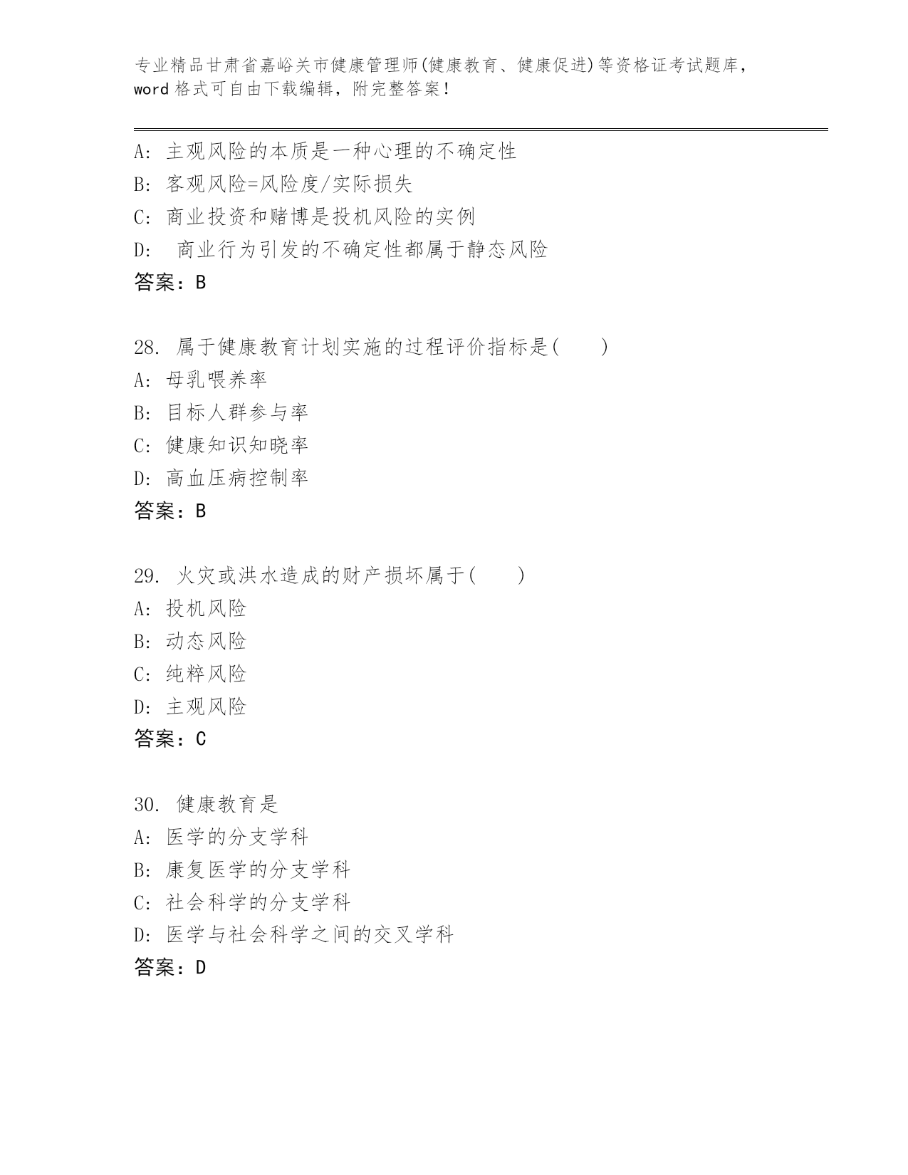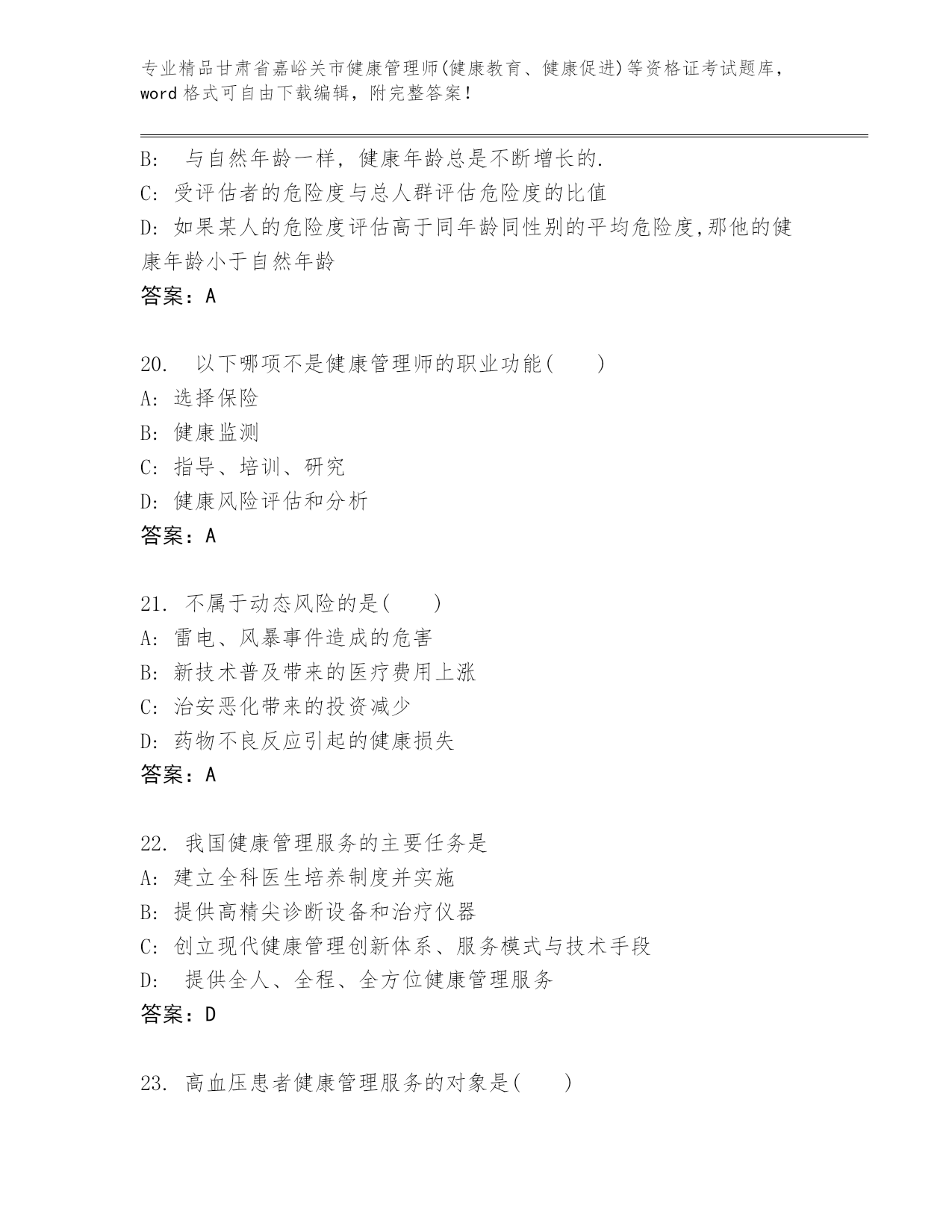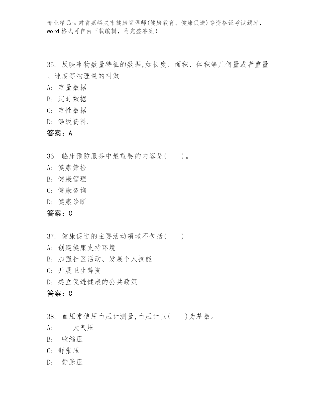 精心整理甘肃省嘉峪关市健康管理师(健康教育、健康促进)等资格证考试王牌题库精品(A卷).docx