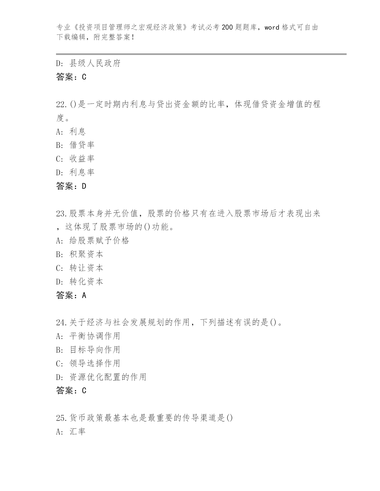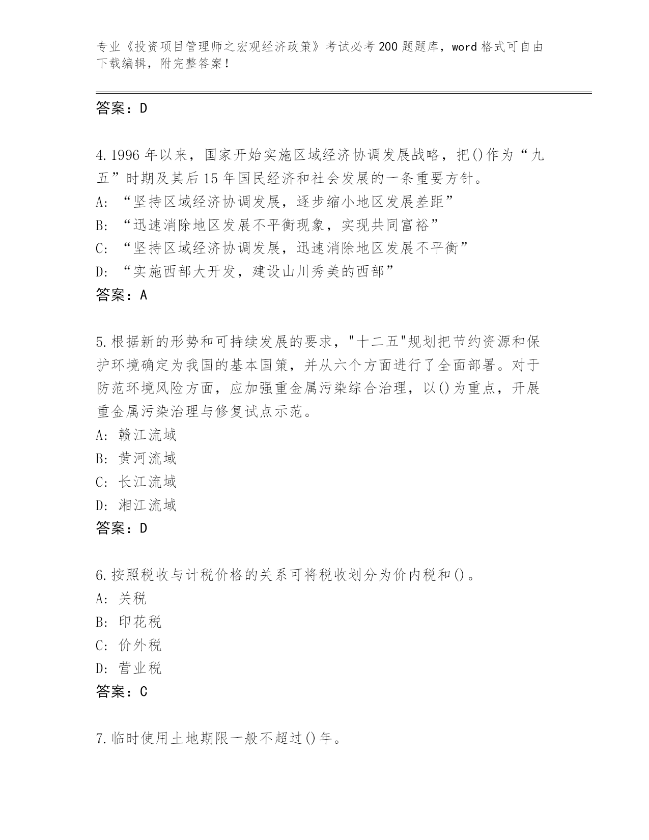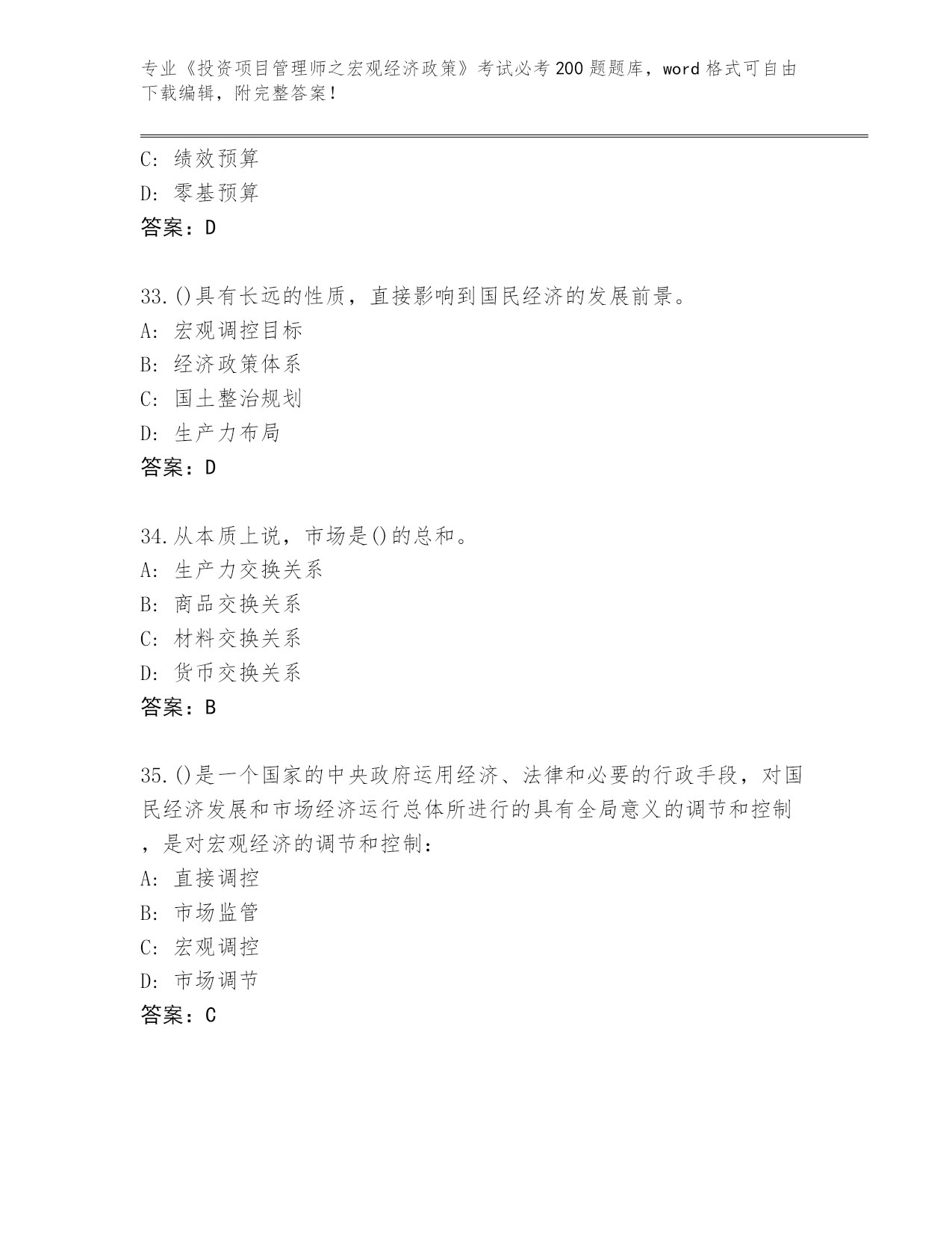 2023-2024年福建省鲤城区《投资项目管理师之宏观经济政策》考试必考200题真题题库(培优)