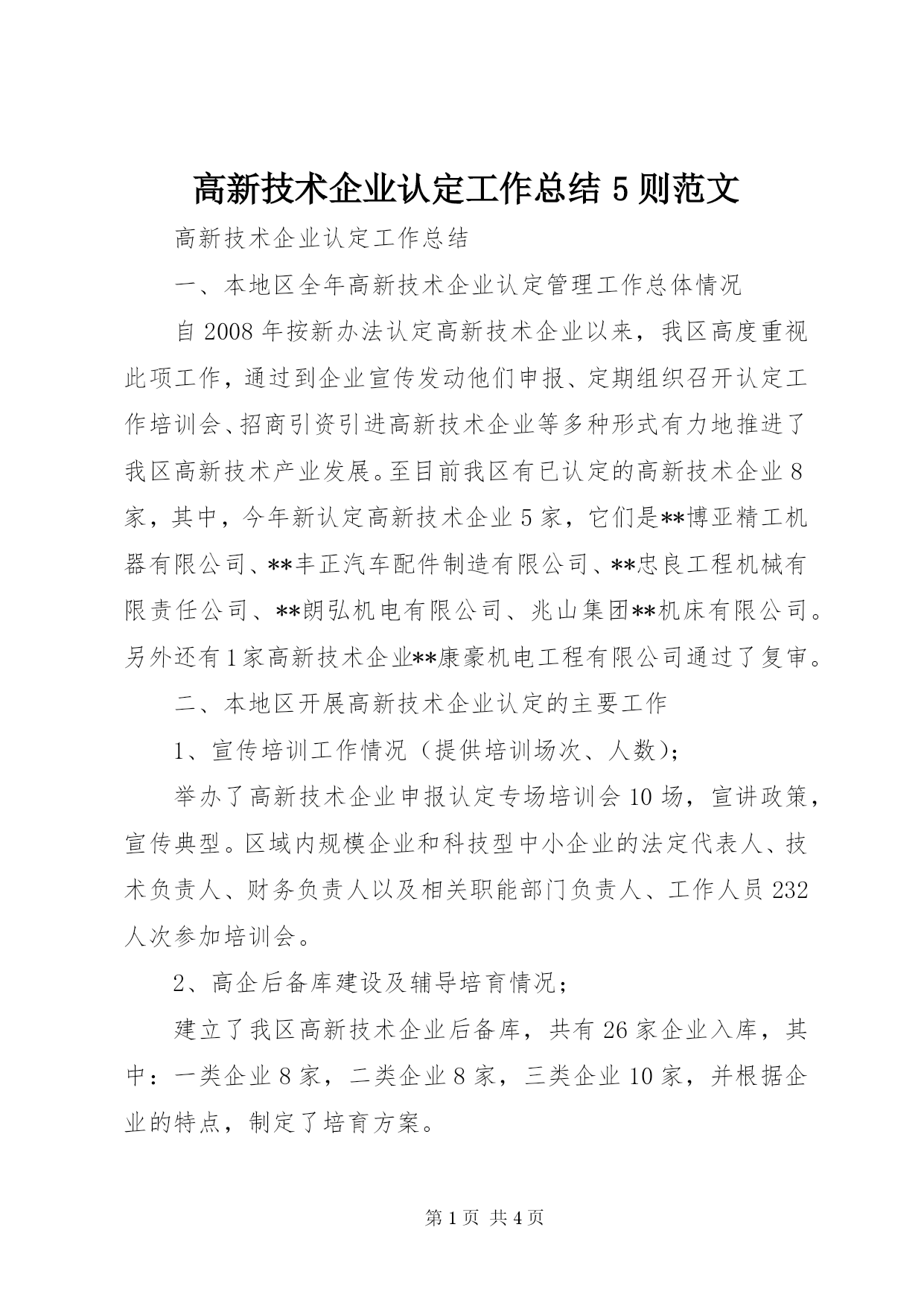 最新精编之高新技术企业认定工作总结5则范文.docx