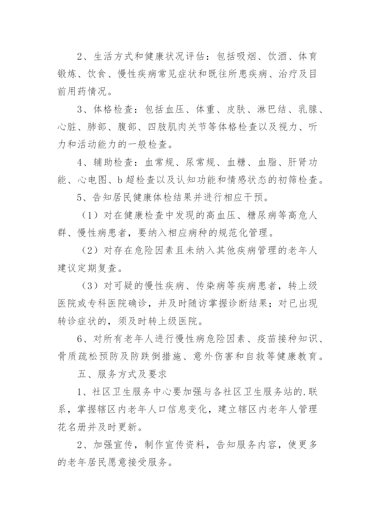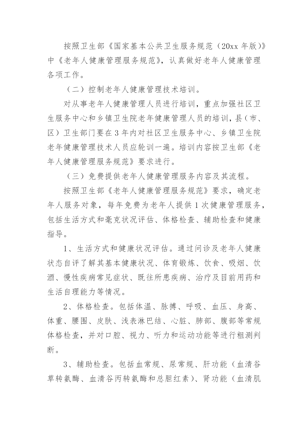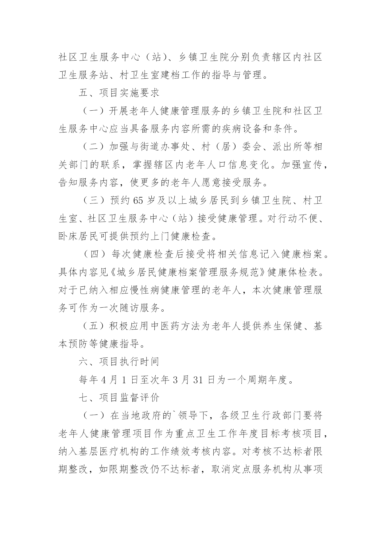 老年健康活动方案老年健康活动方案为了确保事情或工作科学有序进行,往往需要预先制定好方案,方案是解决一个问题或者一项工程,一个课题的详细过程。制定方案需要注意哪些问题呢?以下是小编整理的老年健康活动方案,欢迎大家分享。老年健康活动方案1根据卫生部、财政部、国家人口计生委《关于促进基本公共卫生服务均等化的意见》和卫生部《国家基本公共卫生服务规范(20xx年版)》要求,结合我省实际,制定本实施方案。一、项目目标通过实施老年人健康管理服务项目,对城乡老年人进行健康危险因素调查和一般体格检查,提供疾病预防、自我保健及伤害预防、自救等健康指导,减少主要健康危险因素,有效预防和控制慢性病和伤害,逐步使老年人享有均等化的基本公共卫生服务。二、项目实施范围和人群在全省范围内65岁及以上常驻居民。三、项目服务内容(一)严格执行国家项目相关规定。按照卫生部《国家基本公共卫生服务规范(20xx年版)》中《老年人健康管理服务规范》,认真做好老年人健康管理各项工作。(二)控制老年人健康管理技术培训。对从事老年人健康管理人员进行培训,重点加强社区卫生服务中心和乡镇卫生院老年健康管理人员的培训,县(市、区)卫生部门要在3年内对社区卫生服务中心、乡镇卫生院老年健康管理技术人员应轮训一遍。培训内容按卫生部《老年人健康管理服务规范》要求进行。(三)免费提供老年人健康管理服务内容及其流程。按照卫生部《老年人健康管理服务规范》要求,确定老年人服务对象,每年免费为老年人提供1次健康管理服务,包括生活方式和毫克状况评估、体格检查、辅助检查和健康指导。1、生活方式和健康状况评估。通过问诊及老年人健康状态自评了解其基本健康状况、体育锻炼、饮食、吸烟、饮酒、慢性疾病常见症状、既往所患疾病、治疗及目前用药和生活自理能力等情况。2、体格检查。包括体温、脉搏、呼吸、血压、身高、体重、腰围、皮肤、浅表淋巴结、心脏、肺部、腹部等常规体格检查,并对口腔、视力、听力和运动功能等进行粗测判断。3、辅助检查。包括血常规、尿常规、肝功能(血清谷草转氨酶、血清谷丙转氨酶和总胆红素)、肾功能(血清肌酐和血尿素氮)、空腹血糖、血脂和心电图检测。4、健康指导。告知健康体检结果并进行相应健康指导。(1)对发现已确诊的原发性高血压和2型糖尿病等患者纳入相应的慢性病患者健康管理。(2)对体检中发现有异常的老年人建议定期复查。(3)进行健康生活方式以及疫苗接种、骨质疏松预防、防跌倒措施、意外伤害预防和自救等健康指导。(4)告知或预约下一次健康管理服务的时间。(四)加强老年人健康管理信息的管理进一步建立健全社区信息管理网络,参照国家有关标准,全省将统一开发使用社区卫生信息管理软件。有条件的地市可先行利用电脑网络管理老年人健康管理信息,提高老年人健康管理信息的管理水平。四、项目组织与管理(一)各县(市、区)卫生局具体负责本辖区项目的组织管理,对项目实施进行监督和绩效考核,推进项目各项工作的开展。省及市(地)卫生行政部门要定期对项目实施进行技术指导和监督考核。(二)各级疾病预防控制、妇幼保健机构、卫生监督和公立医院为技术指导单位,承担项目技术指导和信息管理工作,配合卫生行政部门进行项目师资培训与绩效考核。(三)社区卫生服务中心(站)、乡镇卫生院、村卫生室负责为辖区65岁及以上老年人提供健康管理服务,并及时将有关信息录入健康档案,有条件的地市实行电脑管理。社区卫生服务中心(站)、乡镇卫生院分别负责辖区内社区卫生服务站、村卫生室建档工作的指导与管理。五、项目实施要求(一)开展老年人健康管理服务的乡镇卫生院和社区卫生服务中心应当具备服务内容所需的疾病设备和条件。(二)加强与街道办事处、村(居)委会、派出所等相关部门的联系,掌握辖区内老年人口信息变化。加强宣传,告知服务内容,使更多的老年人愿意接受服务。(三)预约65岁及以上城乡居民到乡镇卫生院、村卫生室、社区卫生服务中心(站)接受健康管理。对行动不便、卧床居民可提供预约上门健康检查。(四)每次健康检查后接受将相关信息记入健康档案。具体内容见《城乡居民健康档案管理服务规范》健康体检表。对于已纳入相应慢性病健康管理的老年人,本次健康管理服务可作为一次随访服务。(五)积极应用中医药方法为老年人提供养生保健、基本预防等健康指导。六、项目执行时间每年4月1日至次年3月31日为一个周期年度。七、项目监督评价(一)在当地政府的`领导下,各级卫生行政部门要将老年人健康管理项目作为重点卫生工作年度目标考核项目,纳入基层医疗机构的工作绩效考核内容。对考核不达标者限期整改,如限期整改仍不达标者,取消定点服务机构从事项目工作的资质。(二)各级疾病预防控制、妇幼保健机构、卫生监督、公立医院配合卫生行政部门对项目进行督导考核。县(市、区)级每年不少于2次,省、地市级每年不少于1次。考核结果与评优和经