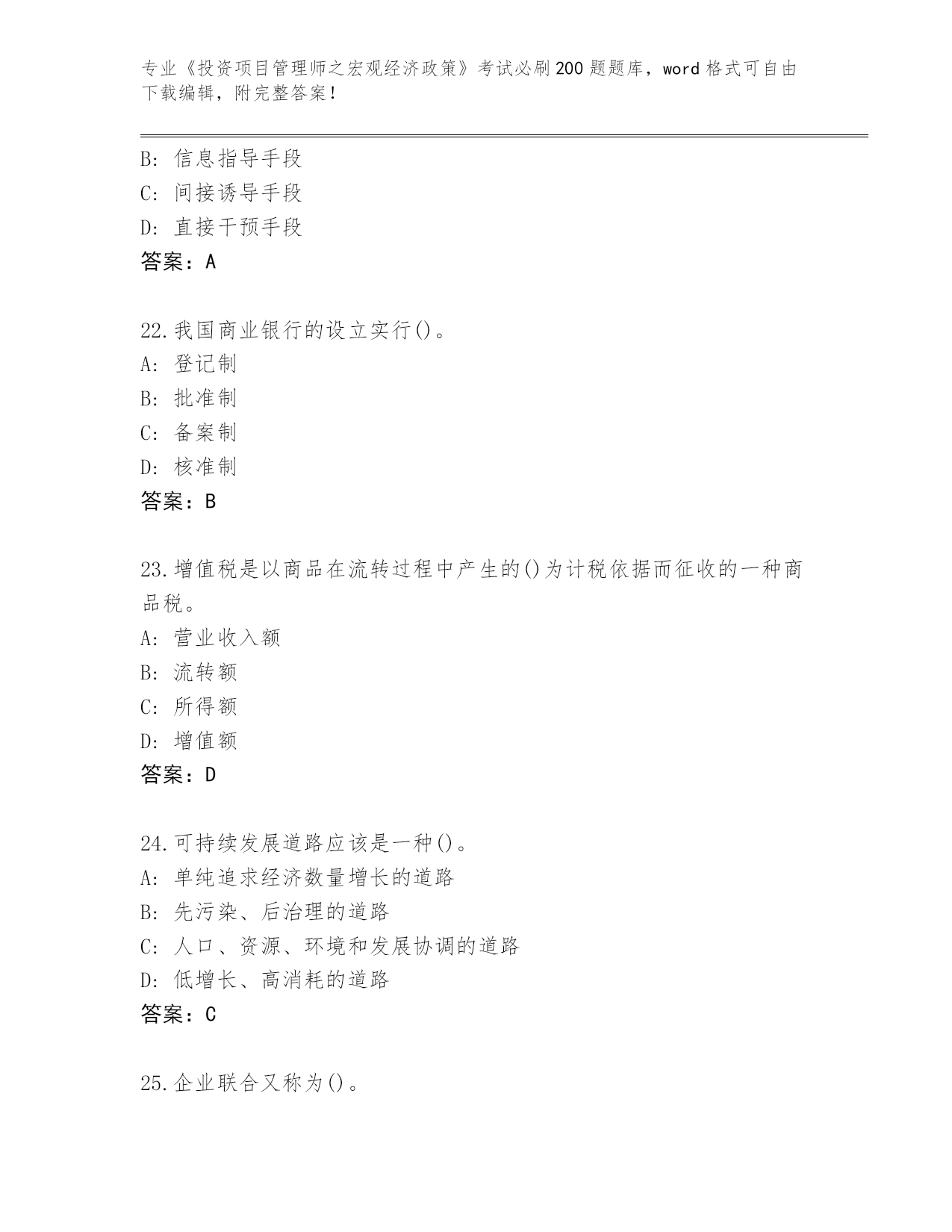 山西省吉县2024年《投资项目管理师之宏观经济政策》考试必刷200题真题题库(历年真题)