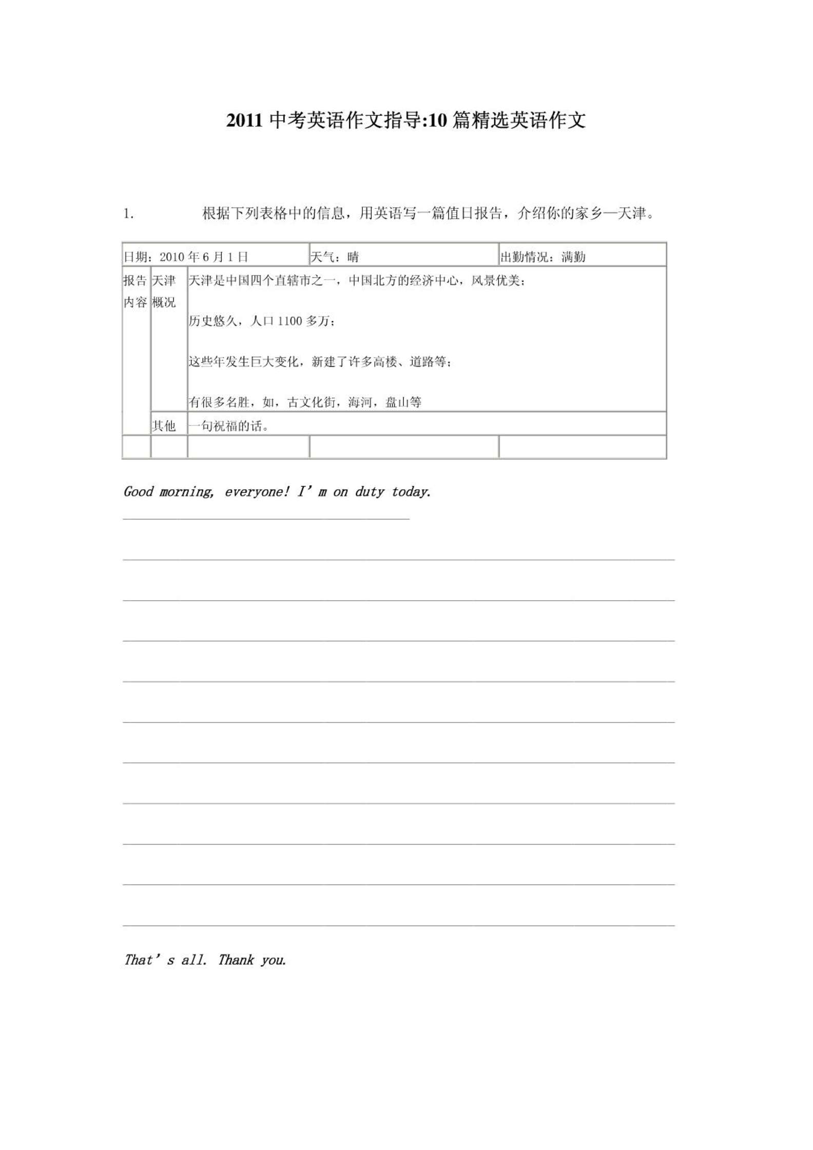 2011中考英语作文指导-10篇精选英语作文.pdf