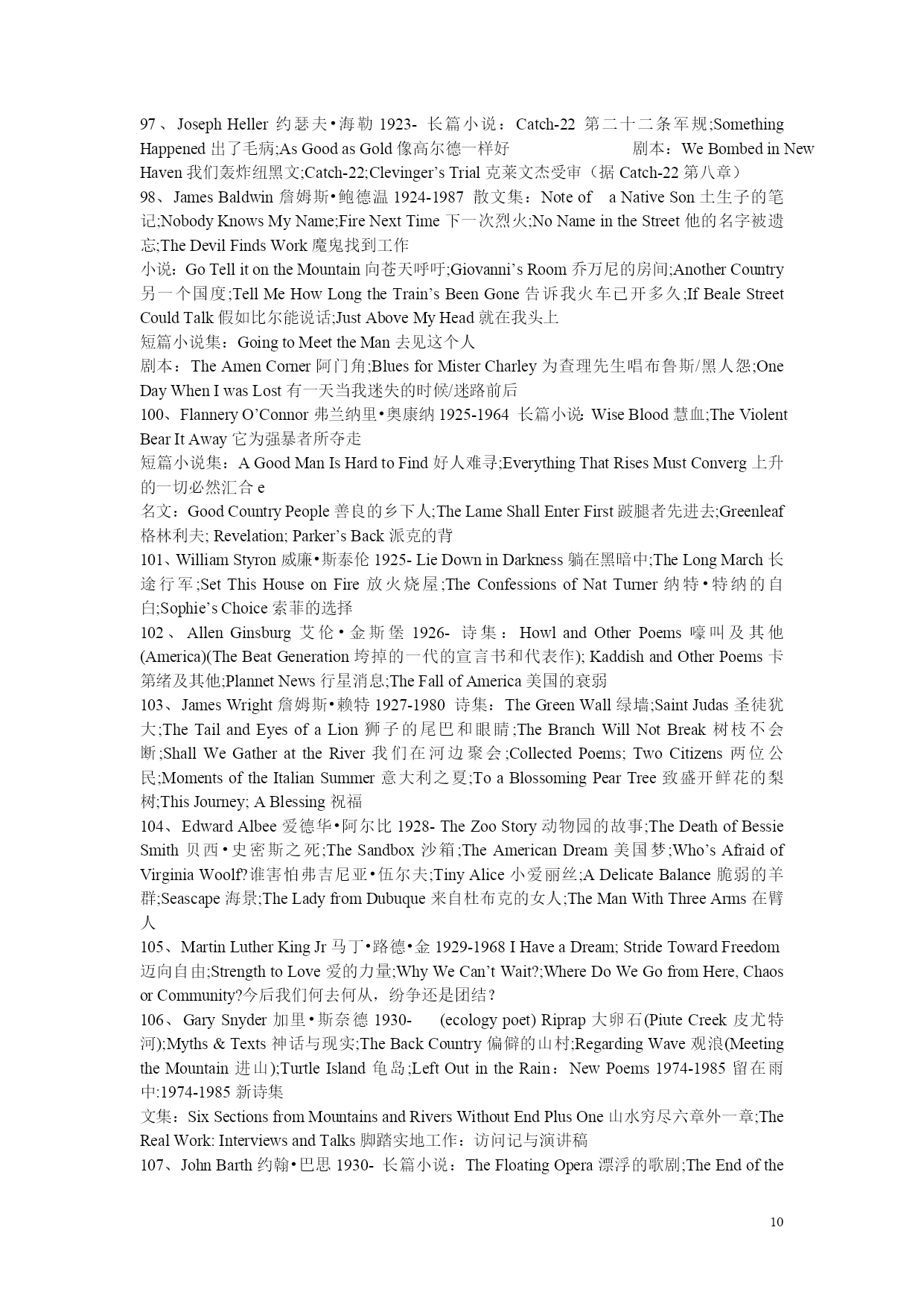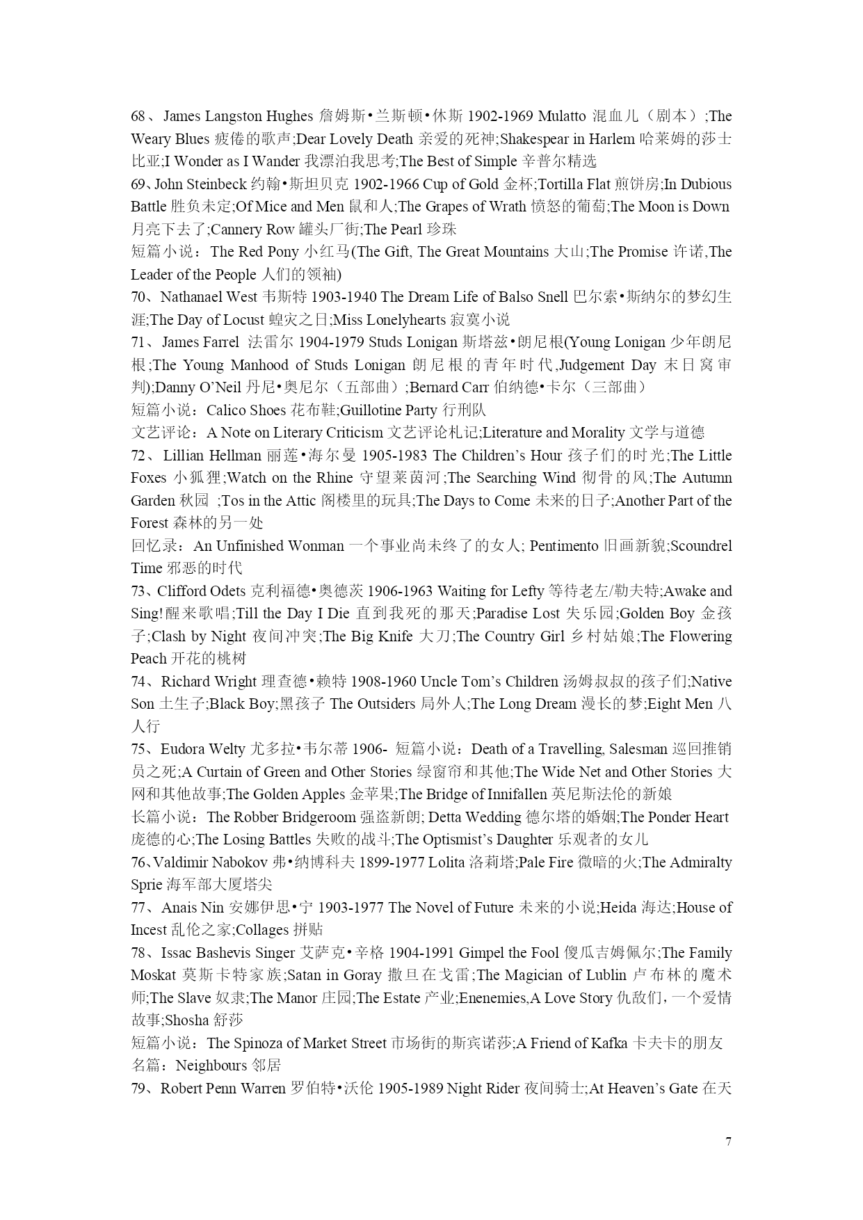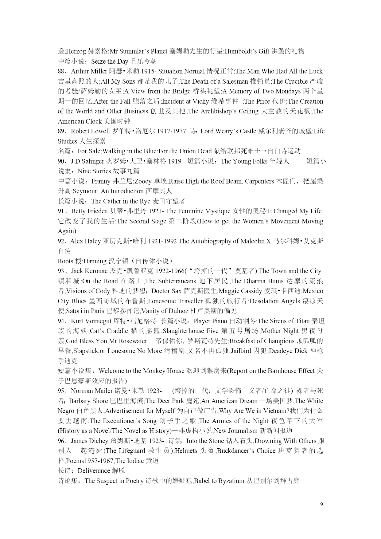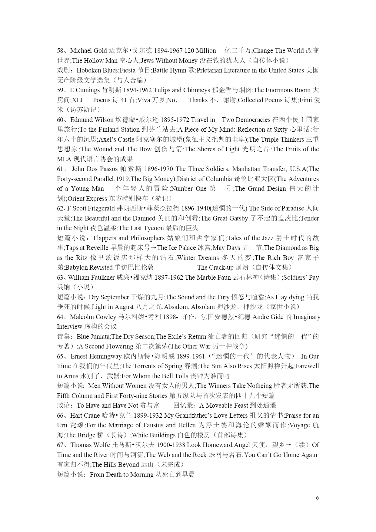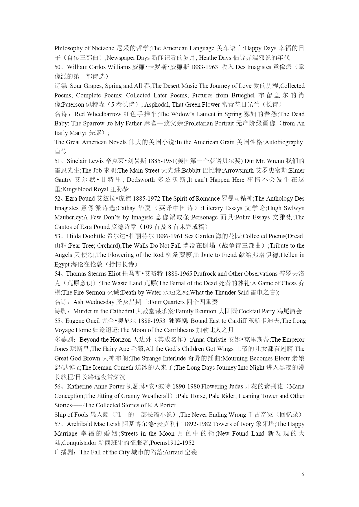 PAGEPAGE12专八人文英国美国文学作者及作品1、BenjaminFranklin本杰明•富兰克林1706-1790AModestInquiryintotheNatureandNecessityofaPaperMoney;PoorRichard’sAlmanack穷查理历书;TheWaytoWealth致富之道;TheAutobiography自传2、ThomasPaine托马斯•潘恩1737-1809TheCaseoftheOfficersofExcise税务员问题;CommonSense常识;AmericanCrisis美国危机;RightsofMan人的权利:DownfallofDespotism专制体制的崩溃;TheAgeofReason理性时代3、PhilipFreneau菲利普•弗伦诺1752-1832TheRisingGloryofAmerica蒸蒸日上的美洲;TheBritishPrisonShip英国囚船;TotheMemoryoftheBraveAmericans纪念美国勇士-----同类诗中最佳;TheWildHoneysuckle野生的金银花;TheIndianBuryingGround印第安人殡葬地4、WashingtonIrving华盛顿•欧文1783-1859AHistoryofNewYork纽约的历史-----美国人写的第一部诙谐文学杰作;TheSketchBook见闻札记TheLegendofSleepyHollow睡谷的传说-----使之成为美国第一个获得国际声誉的作家;BracebridgeHall布雷斯布里奇田庄;TalksofTravellers旅客谈;TheAlhambra阿尔罕伯拉5、JamesFenimoreCooper詹姆斯•费尼莫尔•库珀1789-1851TheSpy间谍;ThePilot领航者;TheLittlepageManuscripts利特佩奇的手稿;LeatherstockingTales皮裹腿故事集:ThePioneer拓荒者;TheLastofMohicans最后的莫希干人;ThePrairie大草原;ThePathfinder探路者;TheDeerslayer杀鹿者6、WilliamCullenBryant威廉•柯伦•布莱恩特1794-1878ThePoems1821/1932诗选:ToaWaterfowl致水鸟-----英语中最完美的短诗;Thanatopsis死亡随想---受墓园派影响;TheWhitefootedDeer白蹄鹿;AForestHymn森林赋;TheFloodofYears似水流年7、EdgarAllanPoe埃德加•爱伦•坡1809-1849(以诗为诗;永为世人共赏的伟大抒情诗人-----叶芝)TalesoftheGrotesqueandArabesque怪诞奇异故事集;Tales故事集;TheFalloftheHouseofUsher厄舍古屋的倒塌;Ligeia莱琪儿;AnnabelLee安娜贝尔•李-----歌特风格;首开近代侦探小说先河,又是法国象征主义运动的源头TamerlaneandOtherPoems帖木儿和其他诗;AlAraaf,TamerlaneandMinorPoems艾尔•阿拉夫,帖木儿和其他诗;TheRavenandOtherPoems乌鸦及其他诗:TheRaven乌鸦;TheCityintheSea海城;Israfel伊斯拉菲尔;ToHellen致海伦8、RalfWaldoEmerson拉尔夫•沃尔多•爱默生1803-1882Essays散文集:Nature论自然-----新英格兰超验主义者的宣言书;TheAmericanScholar论美国学者;Divinity;TheOversoul论超灵;Self-reliance论自立;TheTranscendentalist超验主义者;RepresentativeMen代表人物;EnglishTraits英国人的特征;SchoolAddress神学院演说ConcordHymn康考德颂;TheRhodo杜鹃花;TheHumbleBee野蜂;Days日子-首开自由诗之先河9.NathanielHawthorne纳撒尼尔•霍桑1804-1864Twice-toldTales尽人皆知的故事;MossesfromanOldManse古屋青苔:YoungGoodmanBrown年轻的古德曼•布朗;TheScarletLetter红字;TheHouseoftheSevenGables有七个尖角阁的房子--------心理若们罗曼史;TheBlithedaleRomance福谷传奇;TheMarbleFaun玉石雕像10、HenryDav