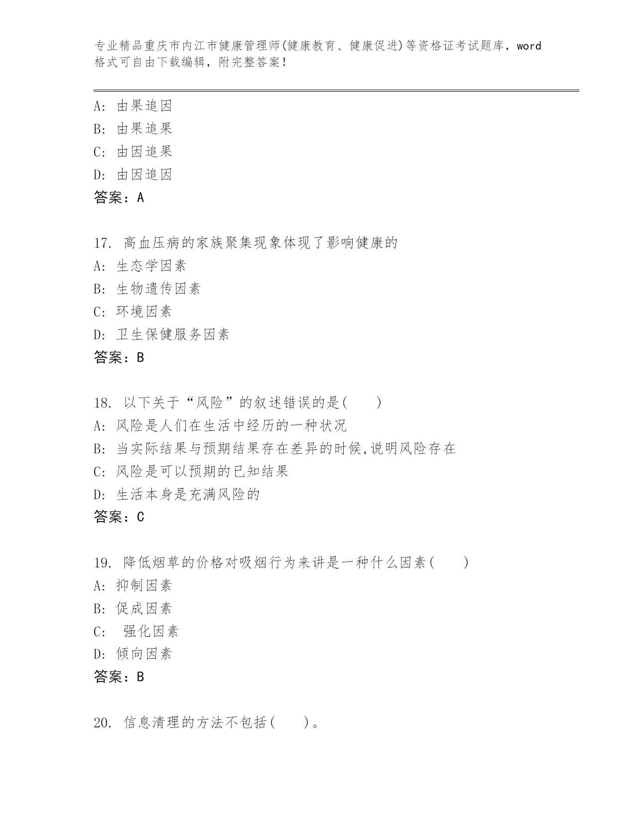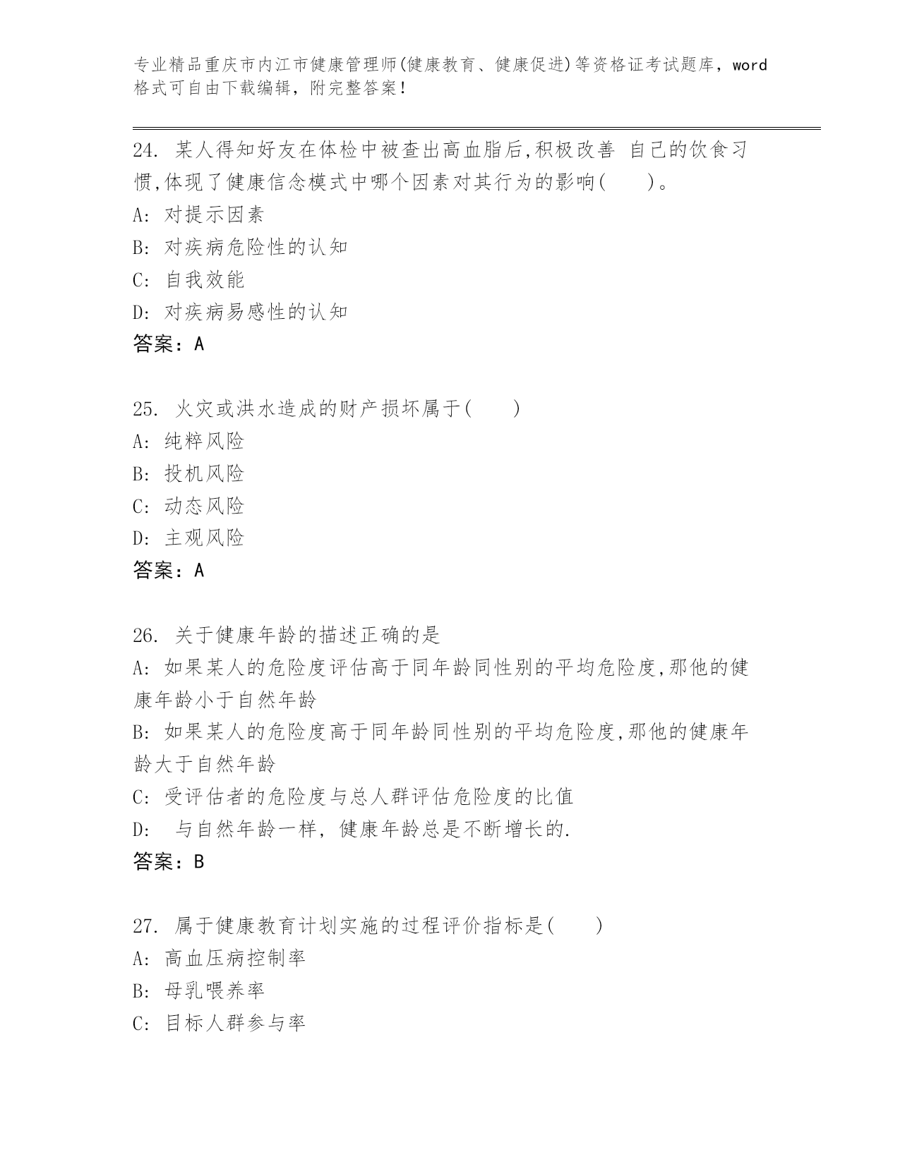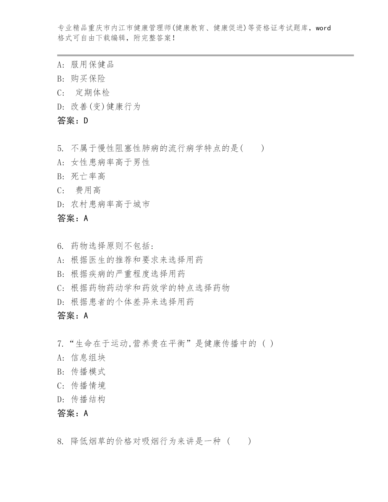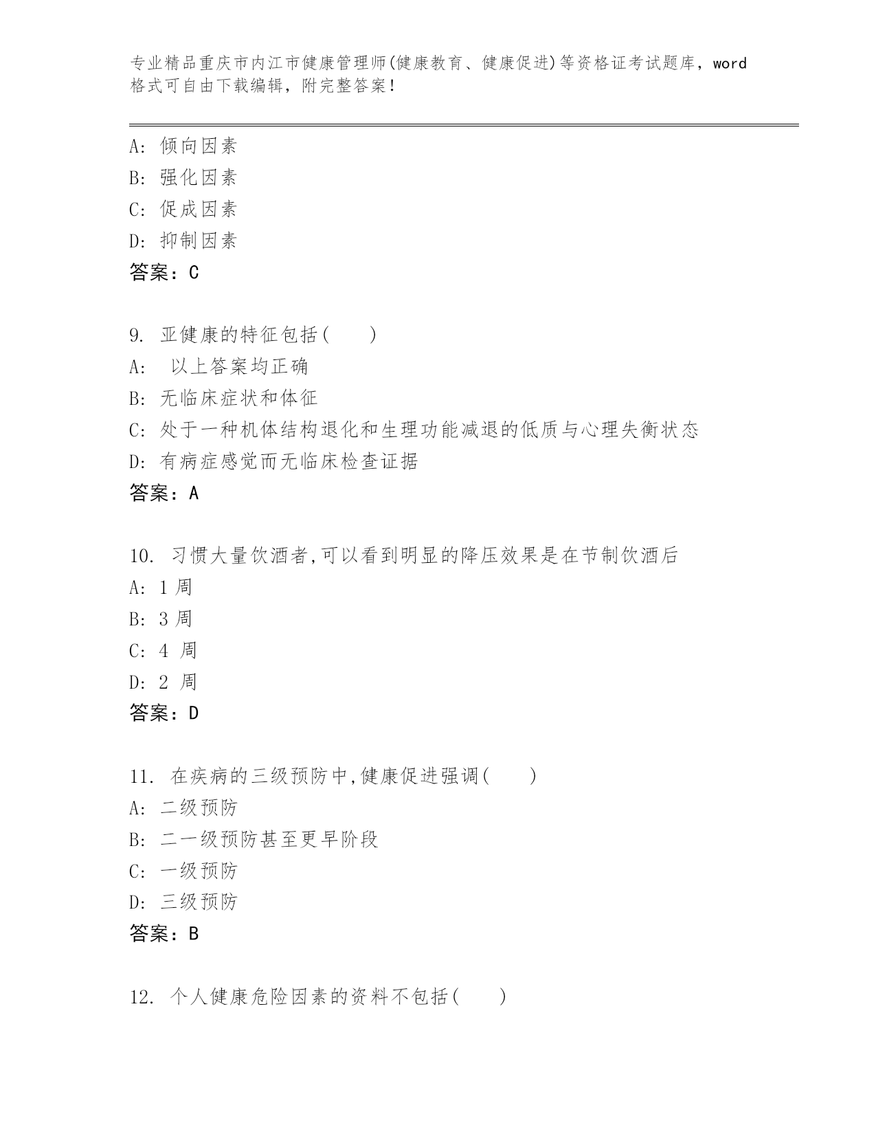 优选重庆市内江市健康管理师(健康教育、健康促进)等资格证考试大全(名师推荐)