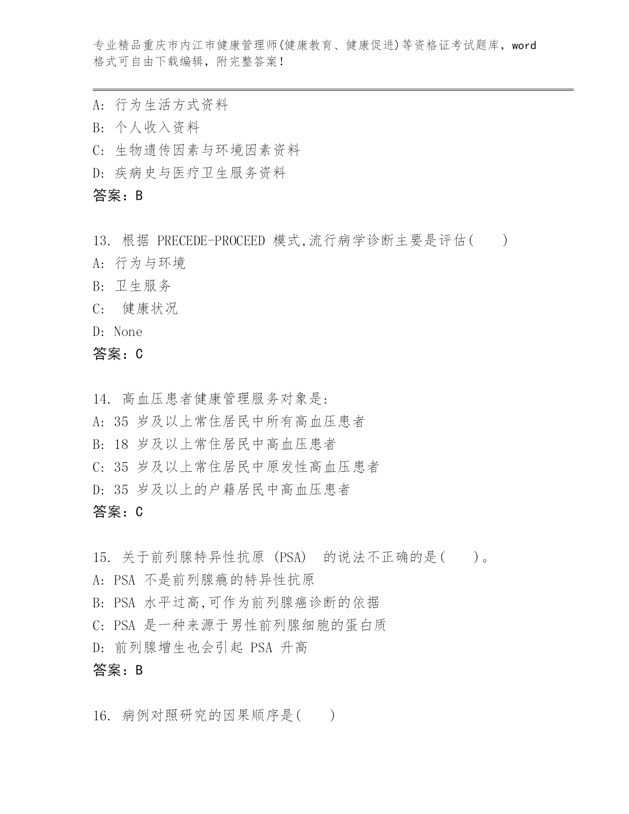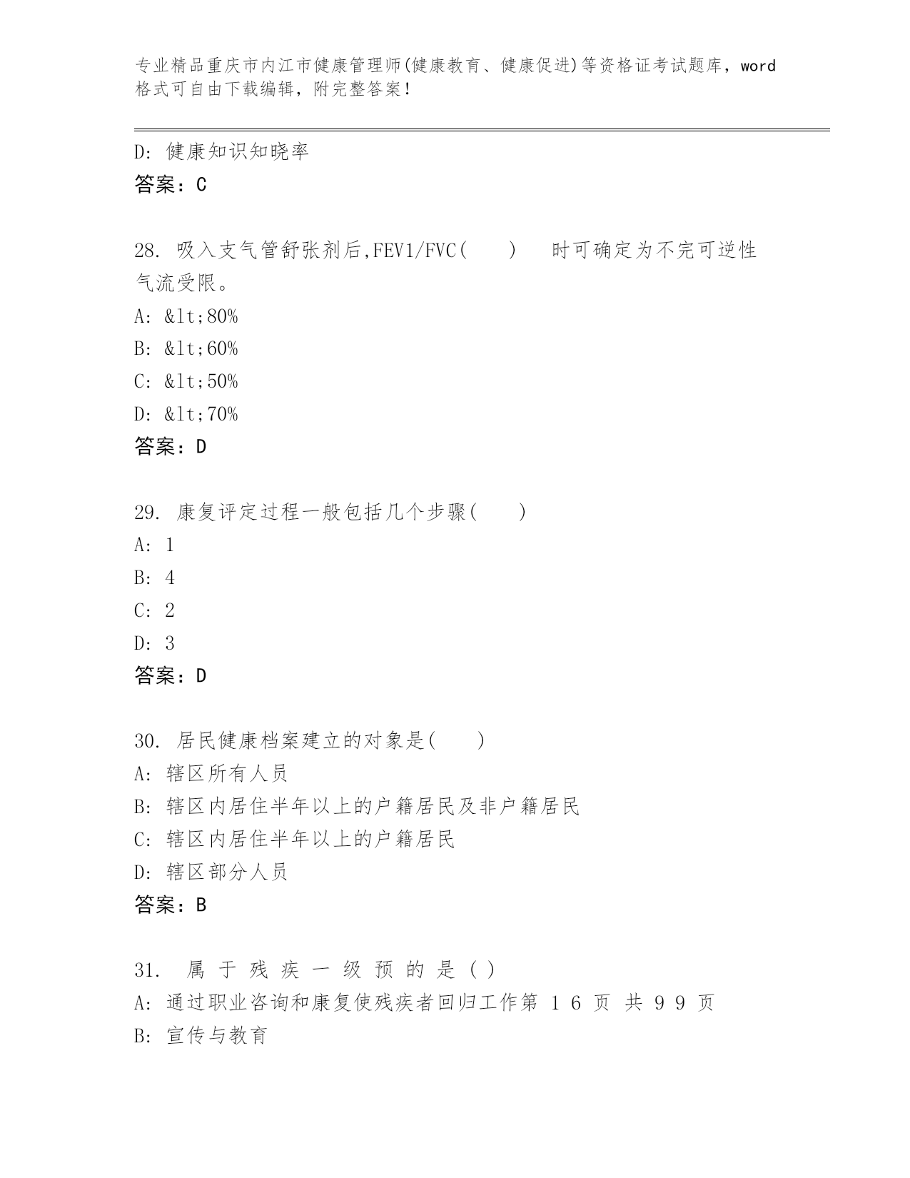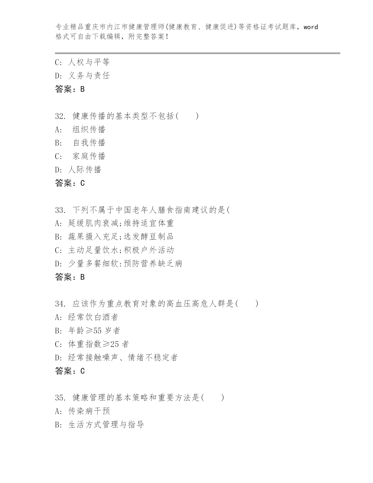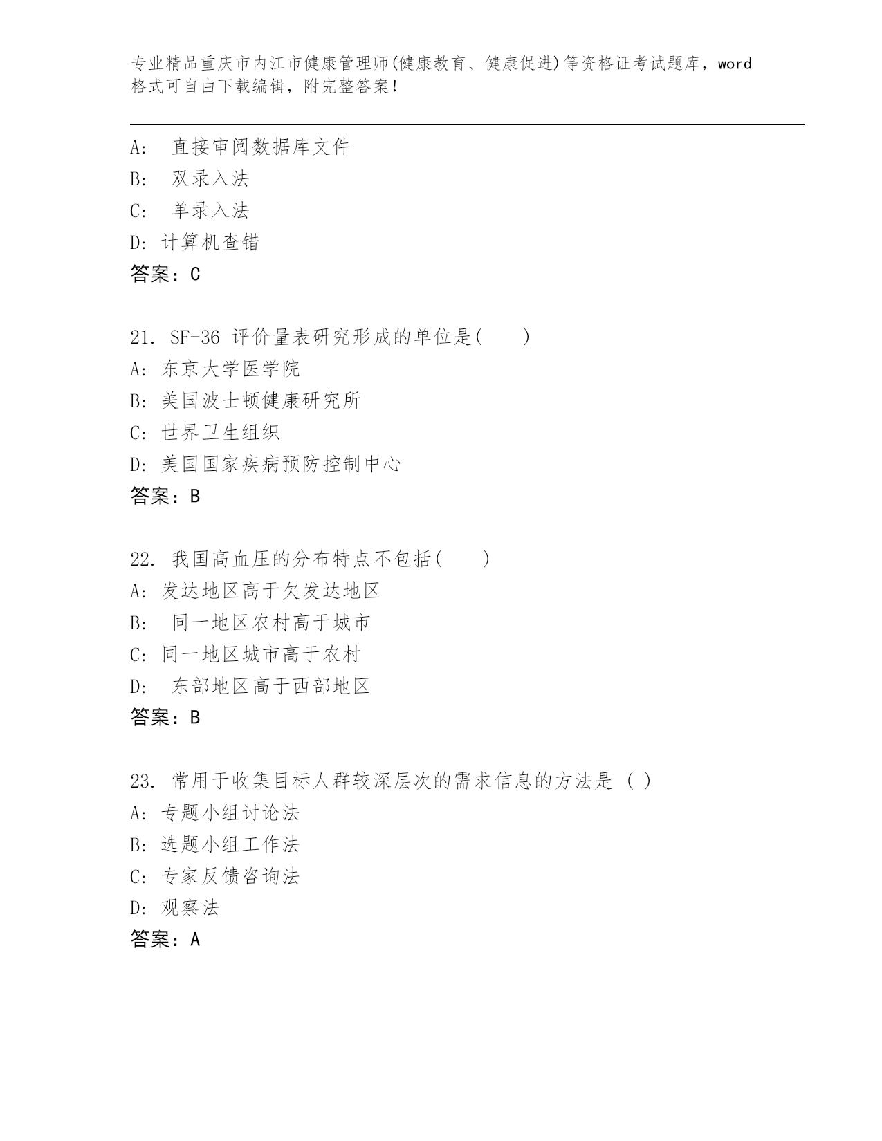 优选重庆市内江市健康管理师(健康教育、健康促进)等资格证考试大全(名师推荐)