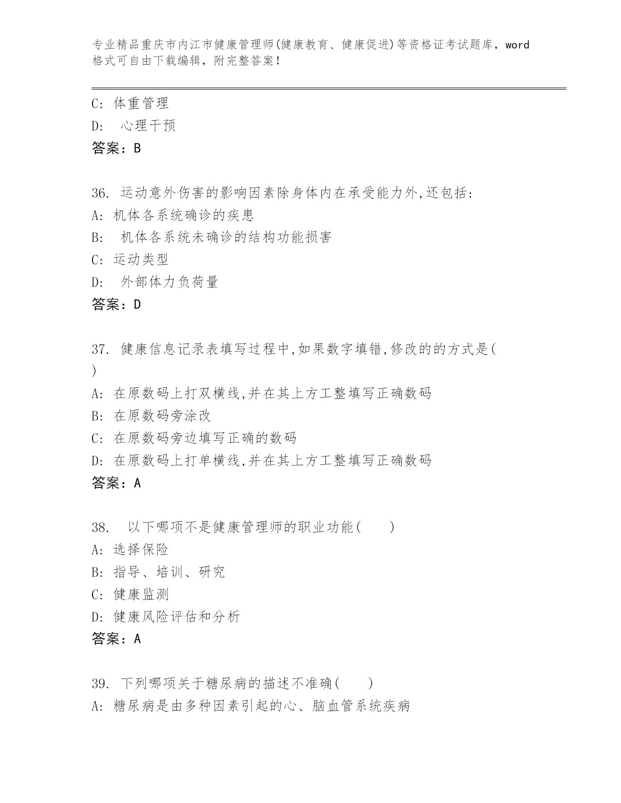 优选重庆市内江市健康管理师(健康教育、健康促进)等资格证考试大全(名师推荐).docx