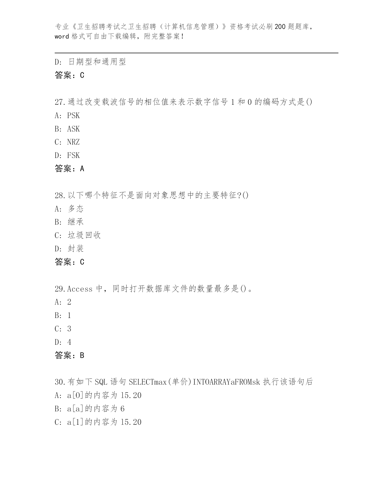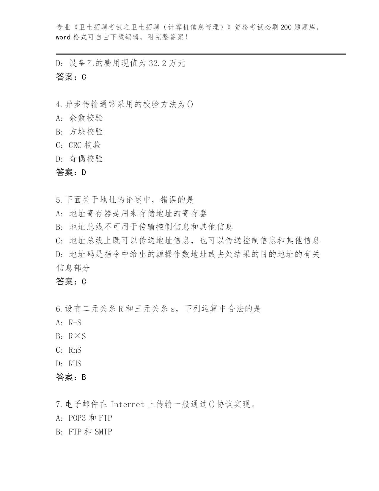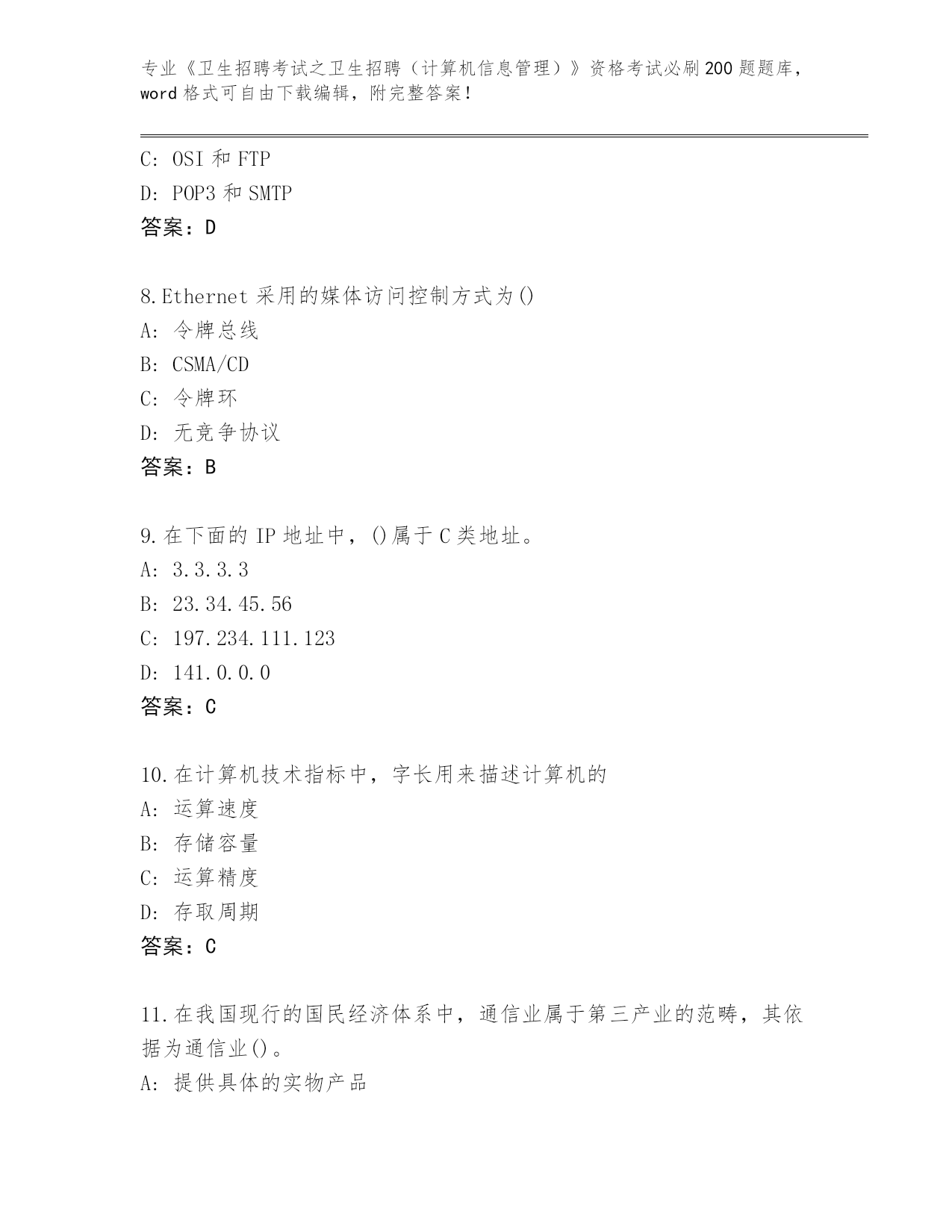 内部使用江西省青原区《卫生招聘考试之卫生招聘(计算机信息管理)》资格考试必背200题题库及答案(必刷)