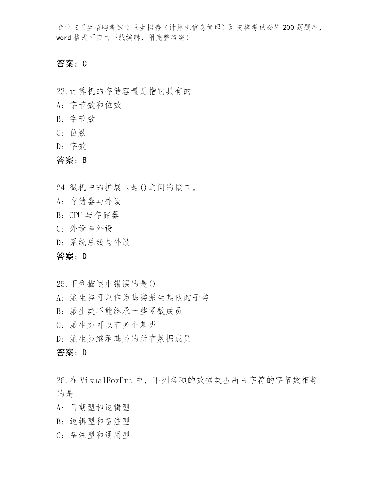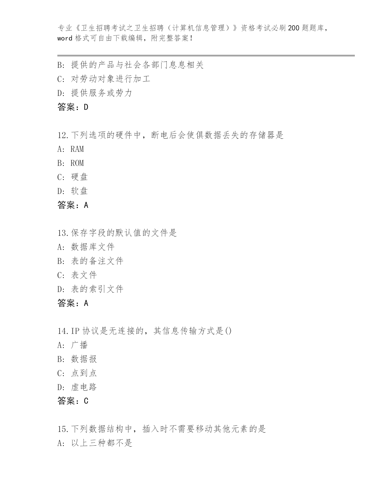 广东省内部使用《卫生招聘考试之卫生招聘(计算机信息管理)》资格考试必刷200题真题题库有答案