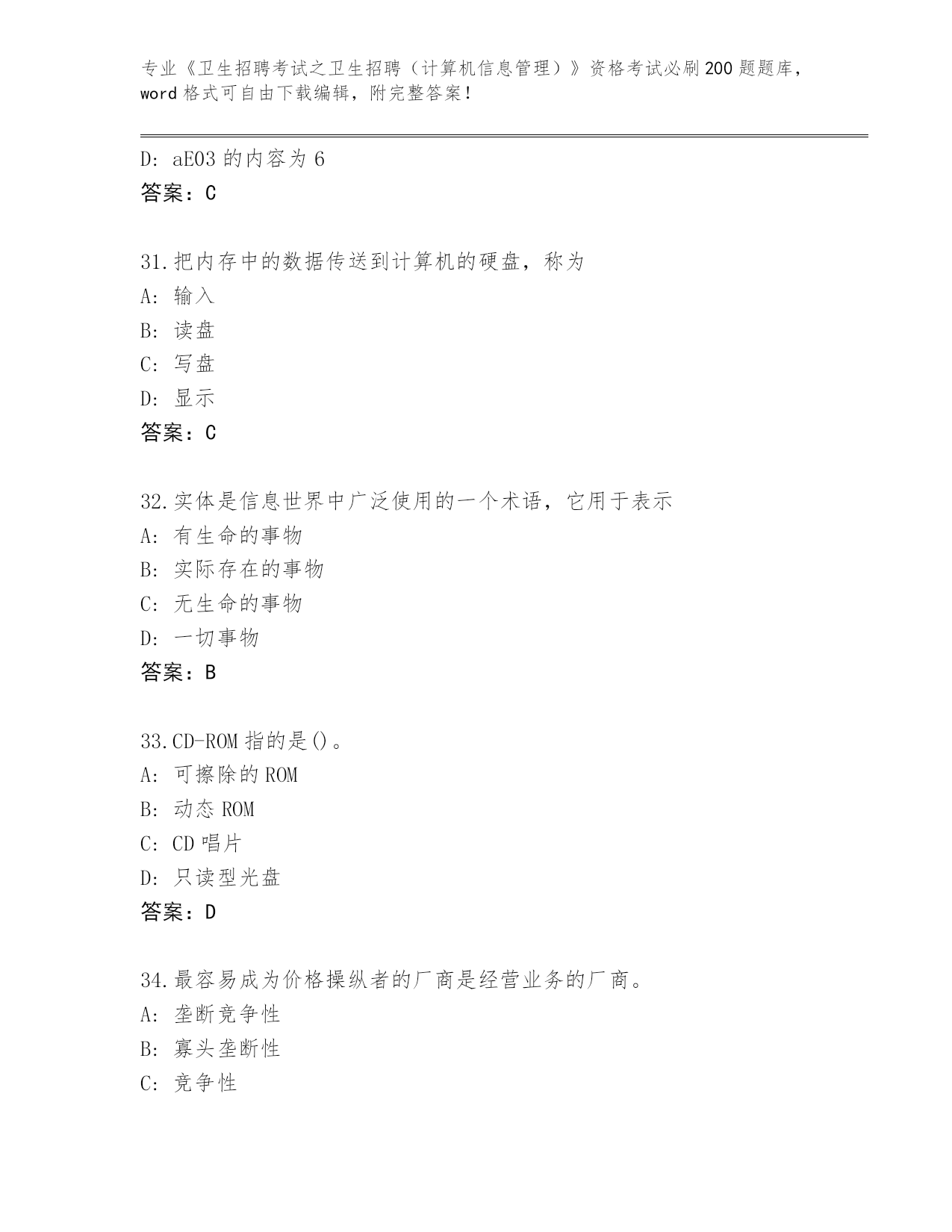 江西省完整版《卫生招聘考试之卫生招聘(计算机信息管理)》考试必刷200题内部题库(B卷)