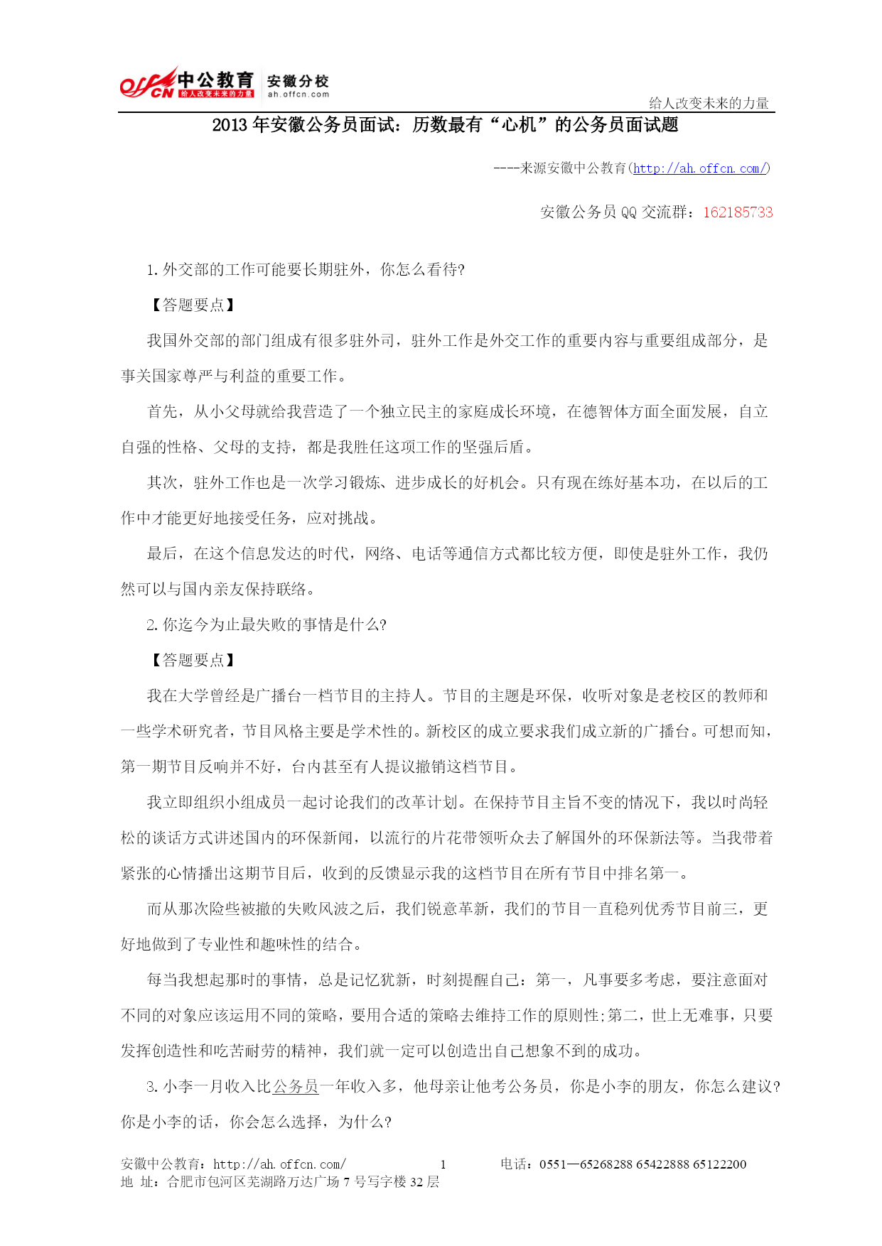 2013年安徽公务员面试:历数最有“心机”的公务员面试题.doc