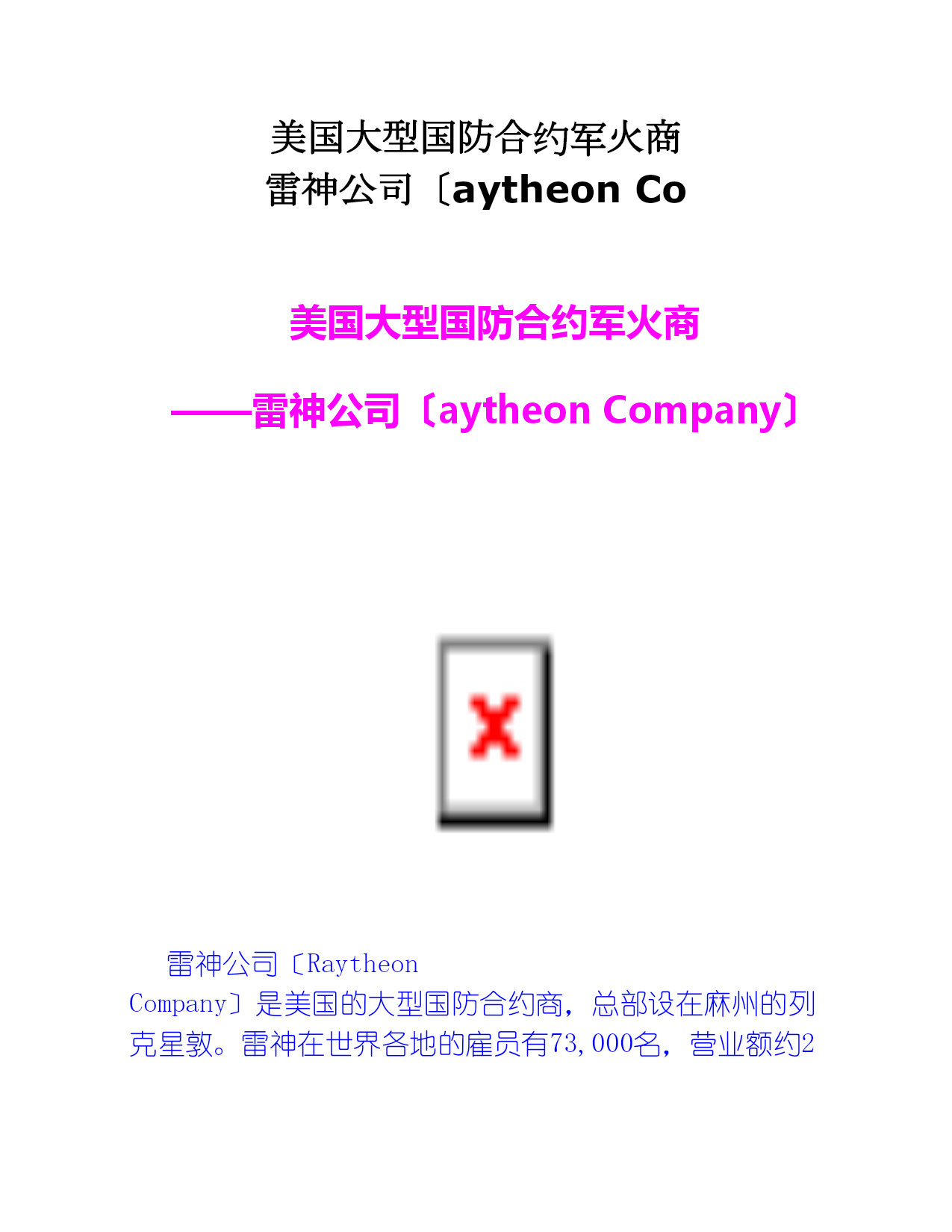 美国大型国防合约军火商--雷神公司(aytheon-Co.doc