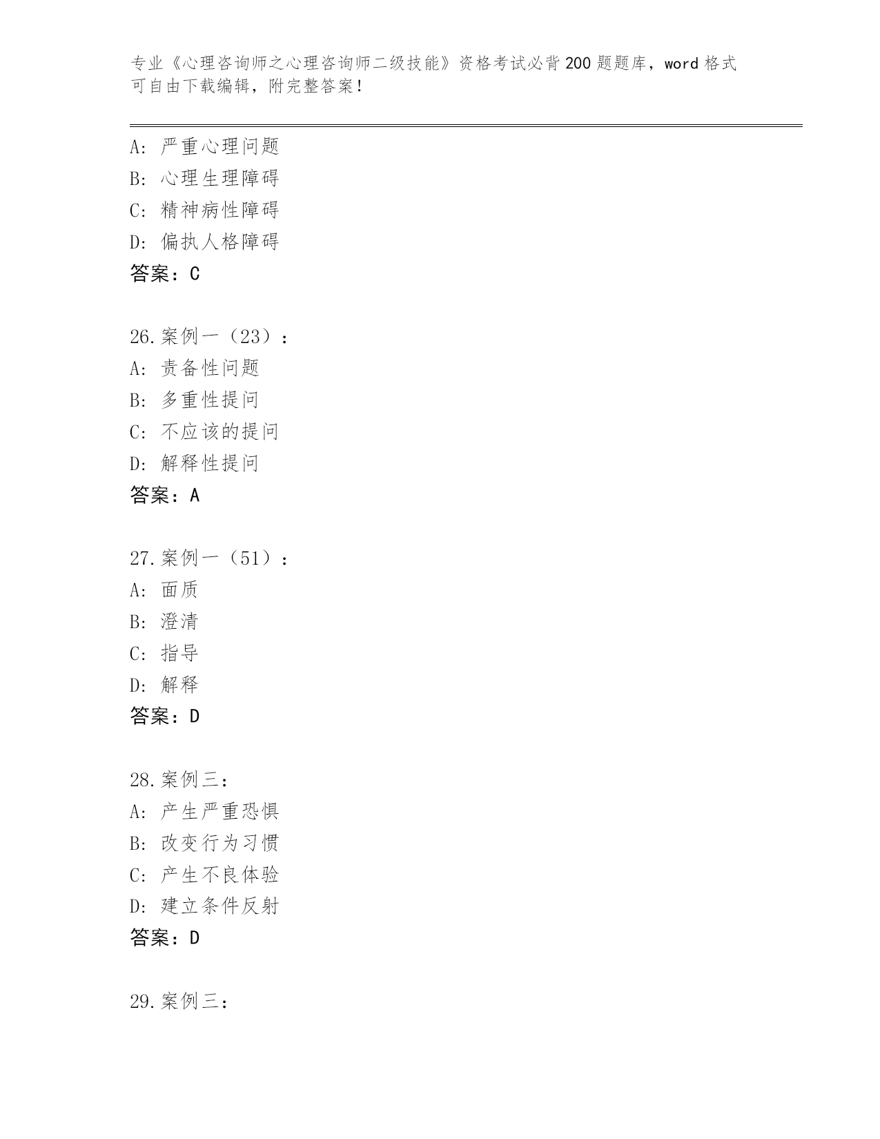 福建省洛江区《心理咨询师之心理咨询师二级技能》资格考试必背200题大全【综合卷】