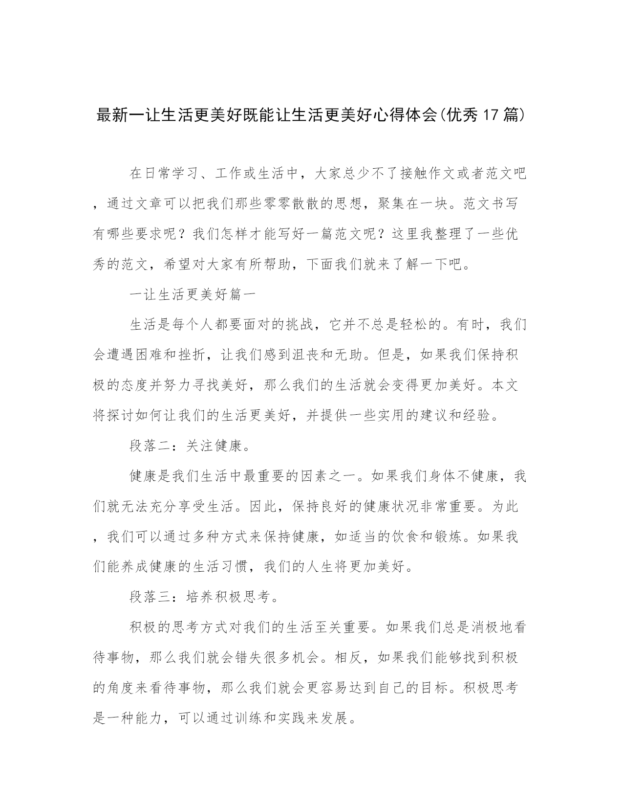 最新一让生活更美好既能让生活更美好心得体会(优秀17篇).docx