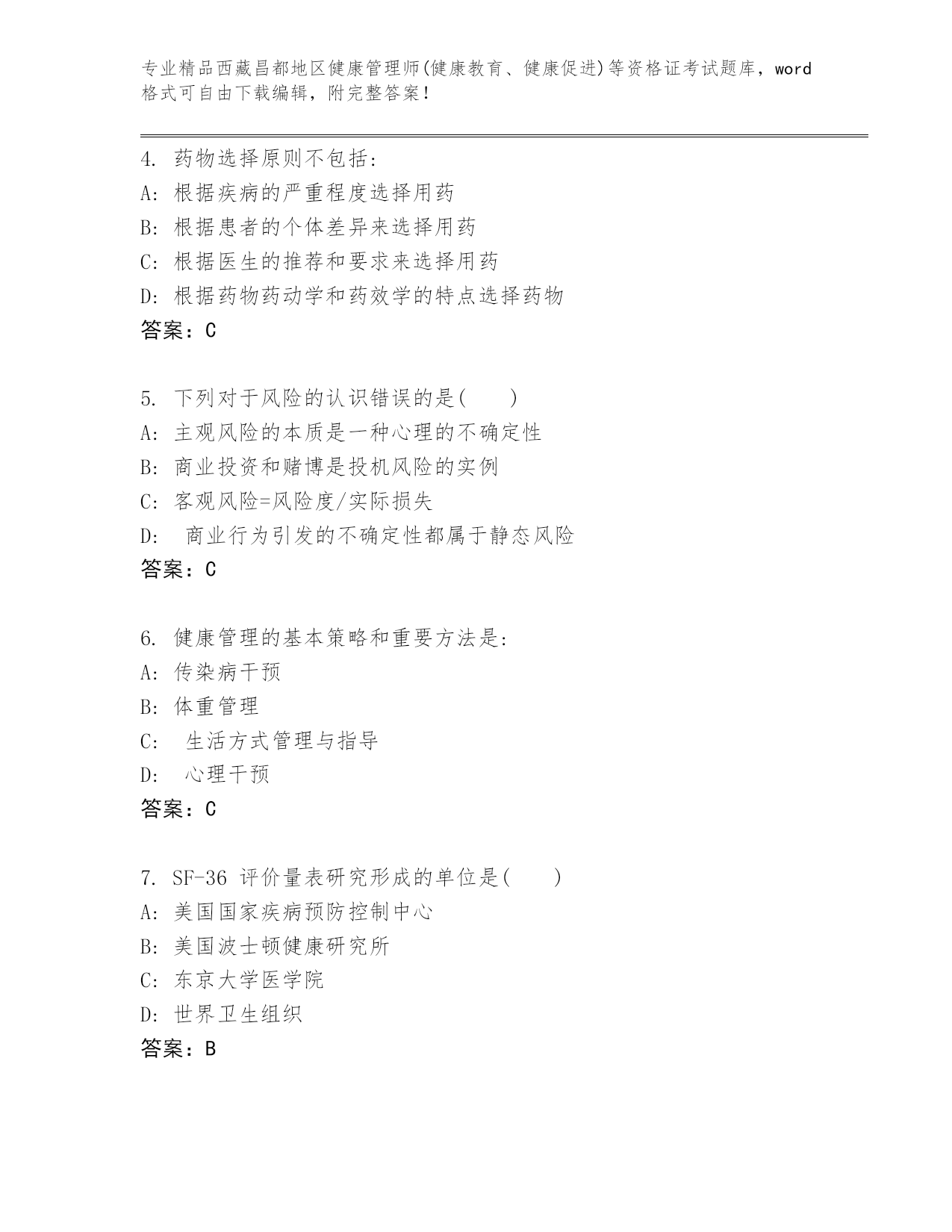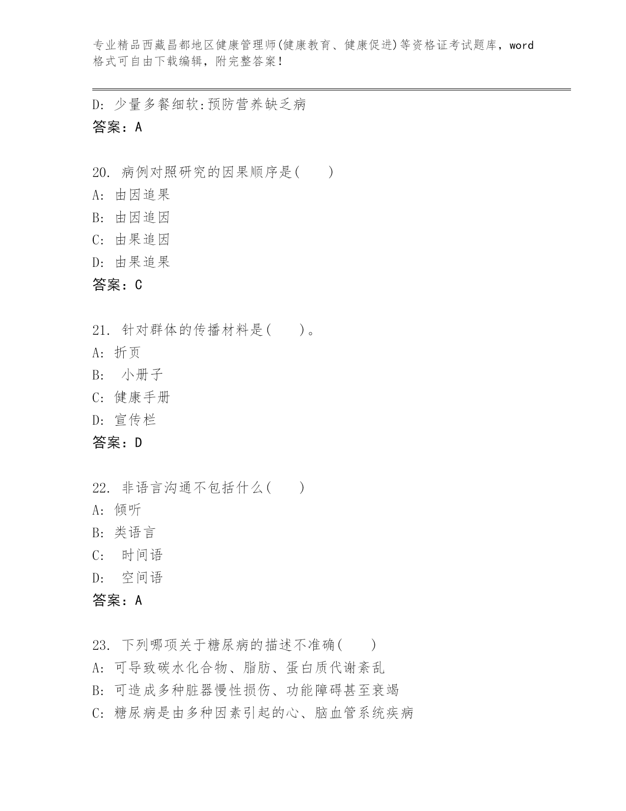 西藏昌都地区健康管理师(健康教育、健康促进)等资格证考试精品题库及答案【精选题】