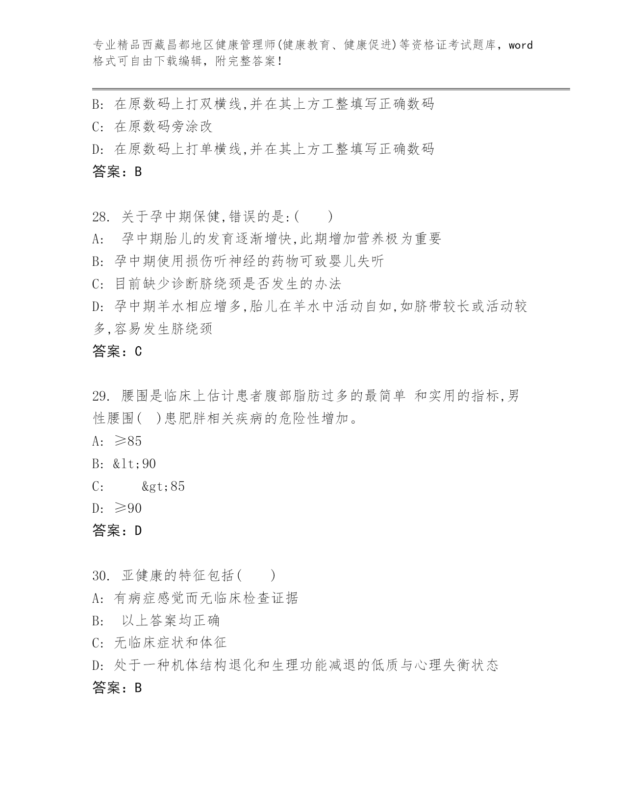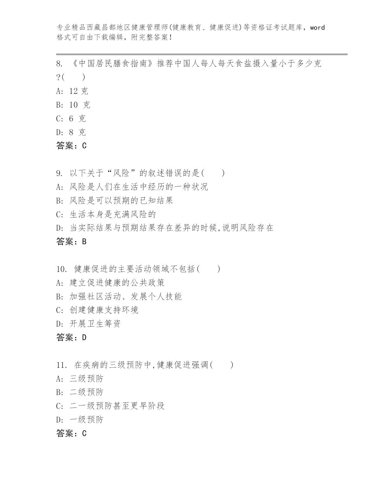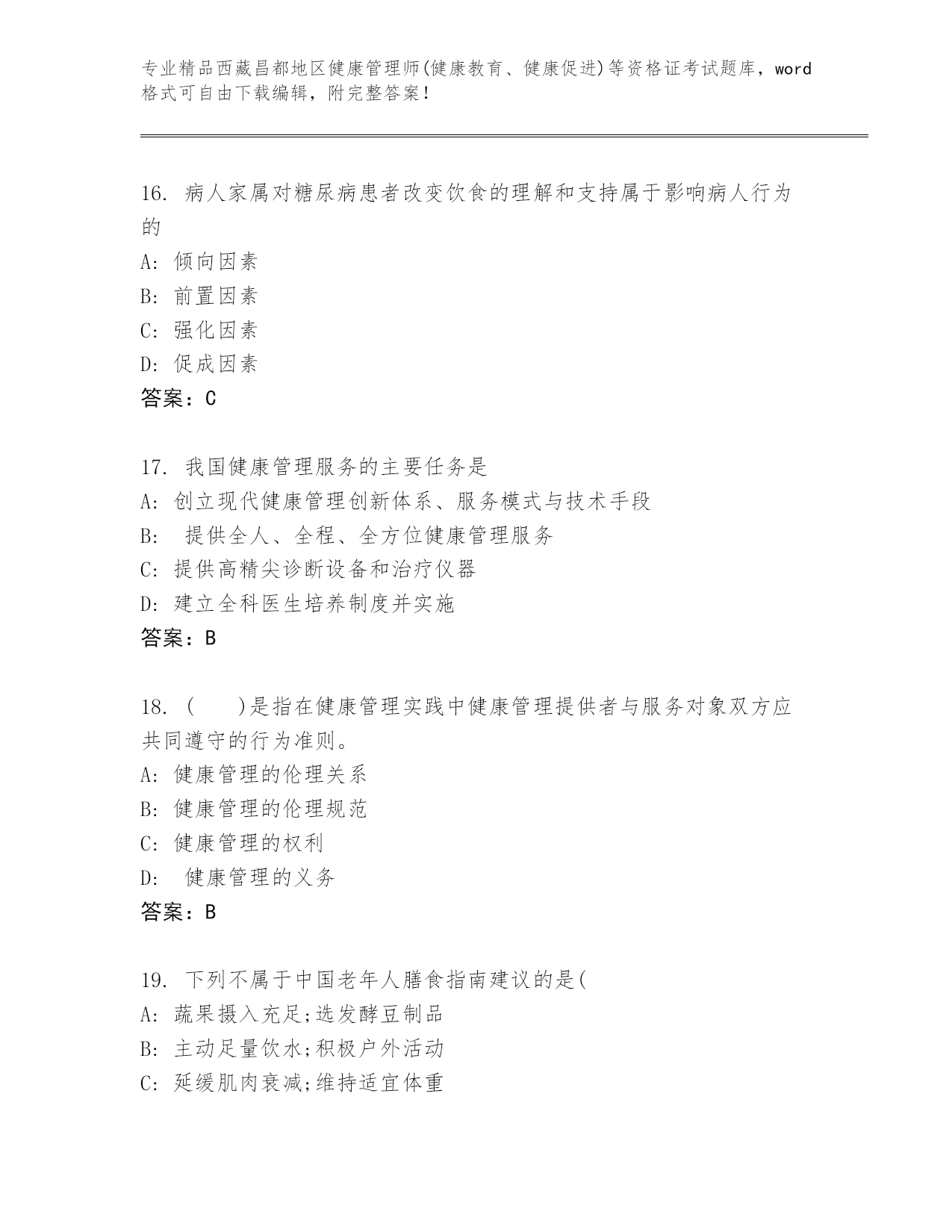 西藏昌都地区健康管理师(健康教育、健康促进)等资格证考试精品题库及答案【精选题】.docx