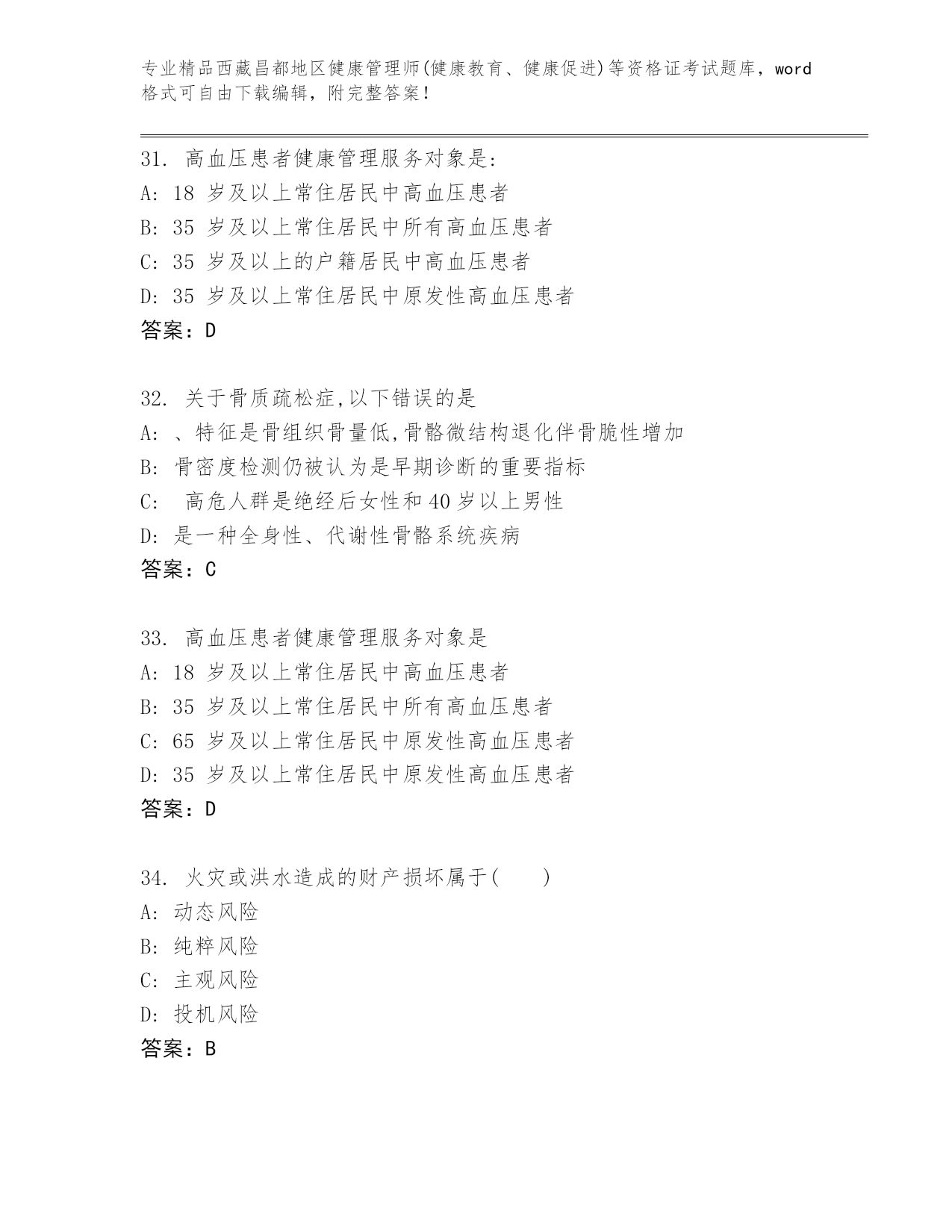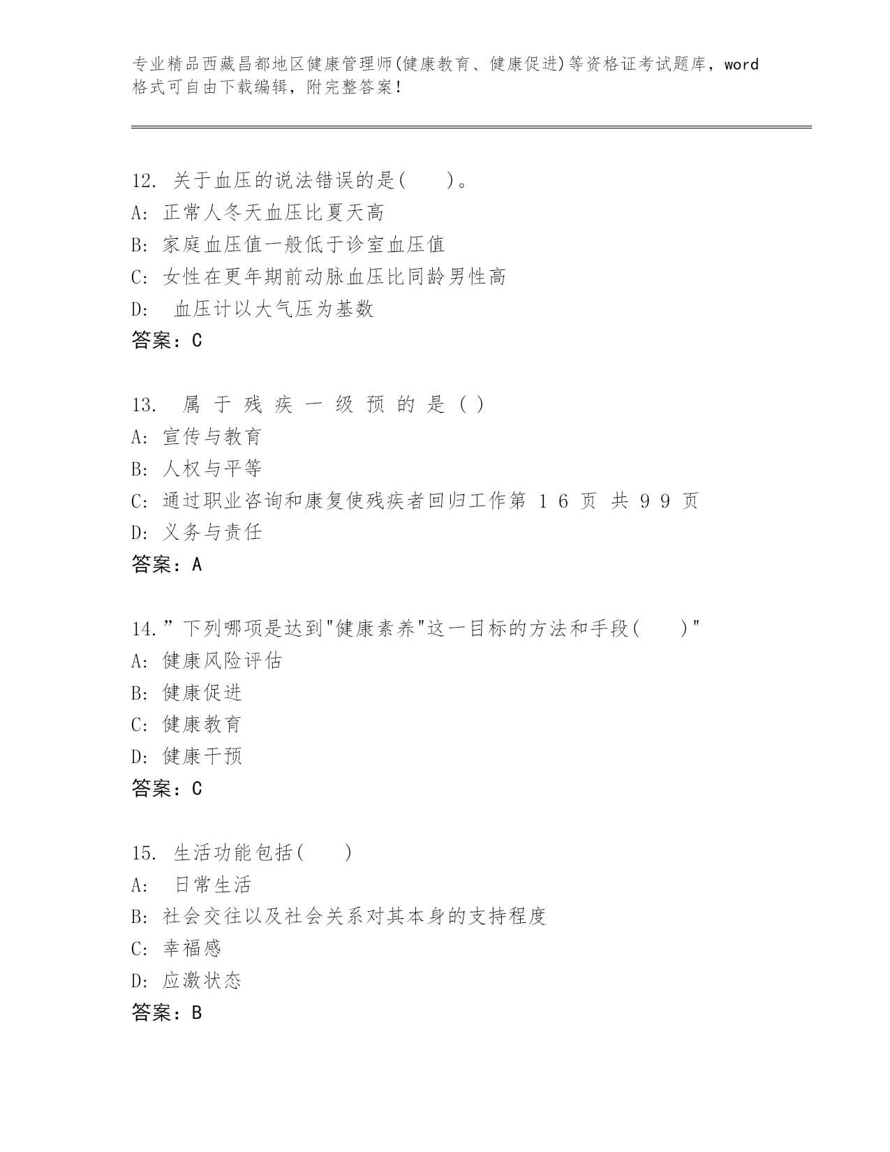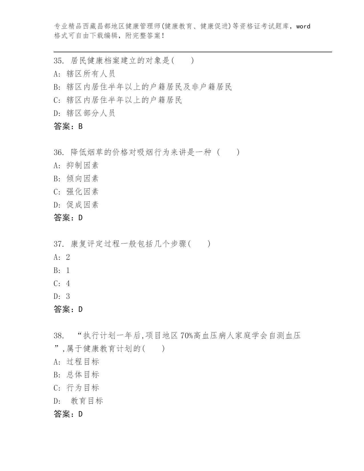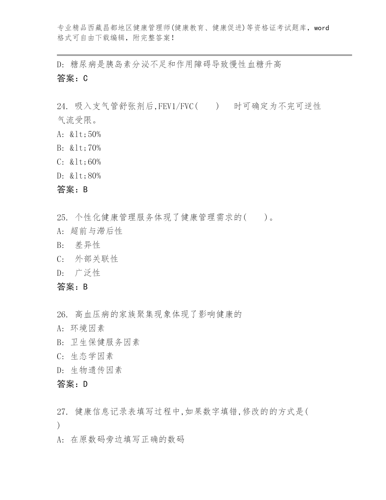 西藏昌都地区健康管理师(健康教育、健康促进)等资格证考试精品题库及答案【精选题】.docx
