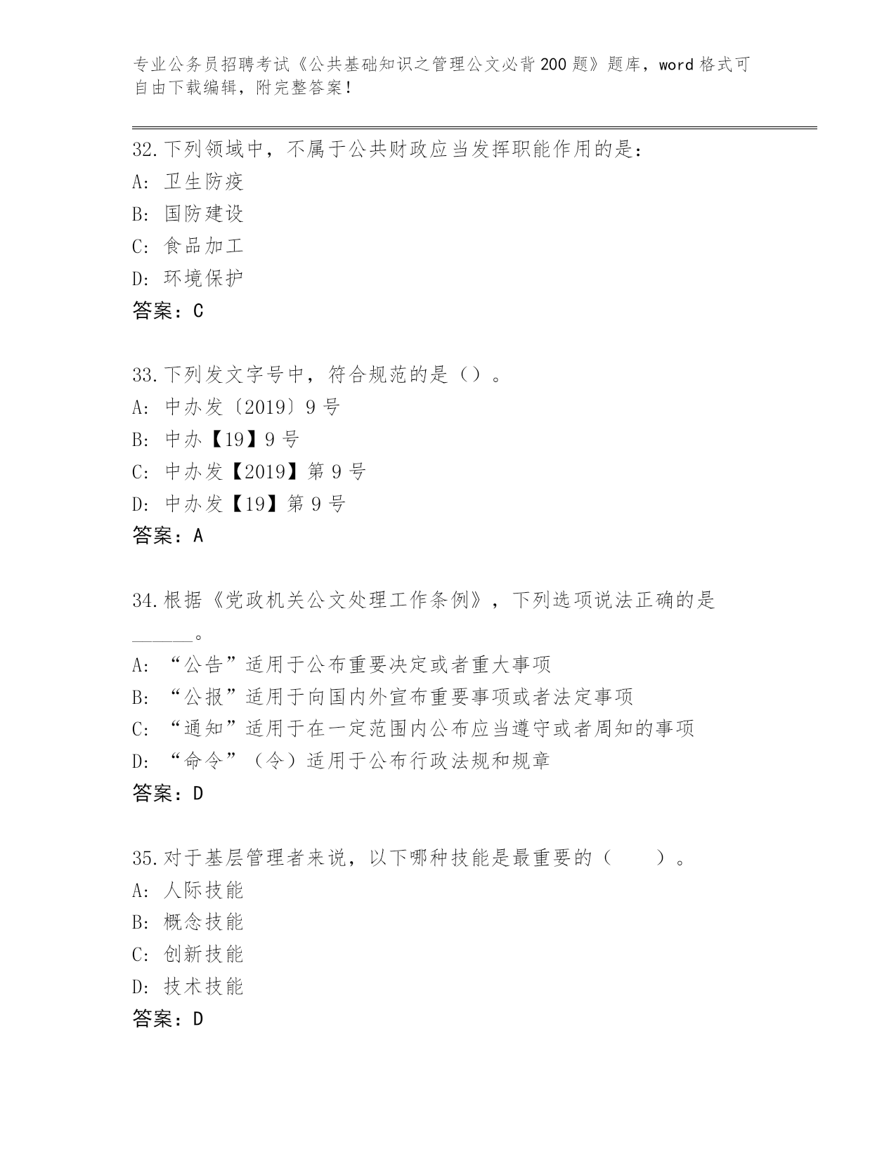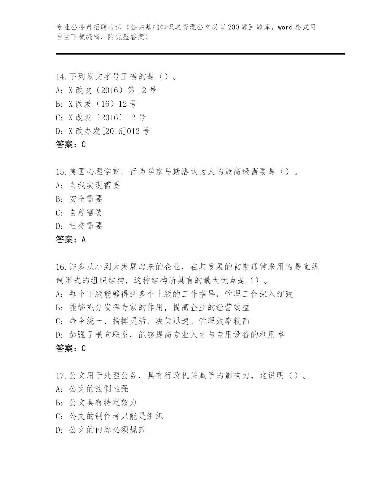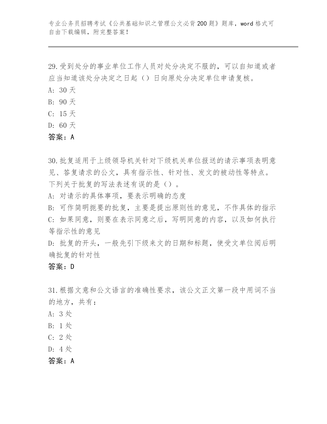云南省历年公务员招聘考试《公共基础知识之管理公文必背200题》王牌题库【A卷】.docx