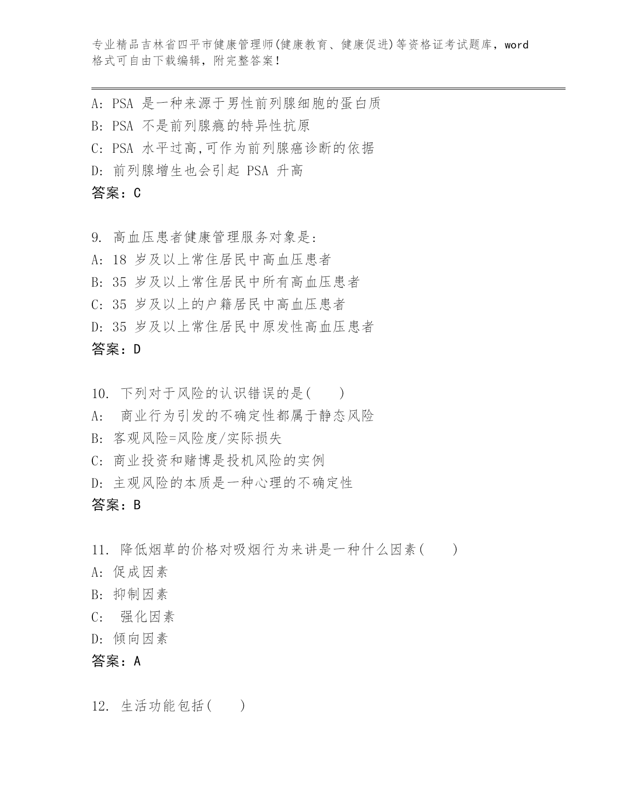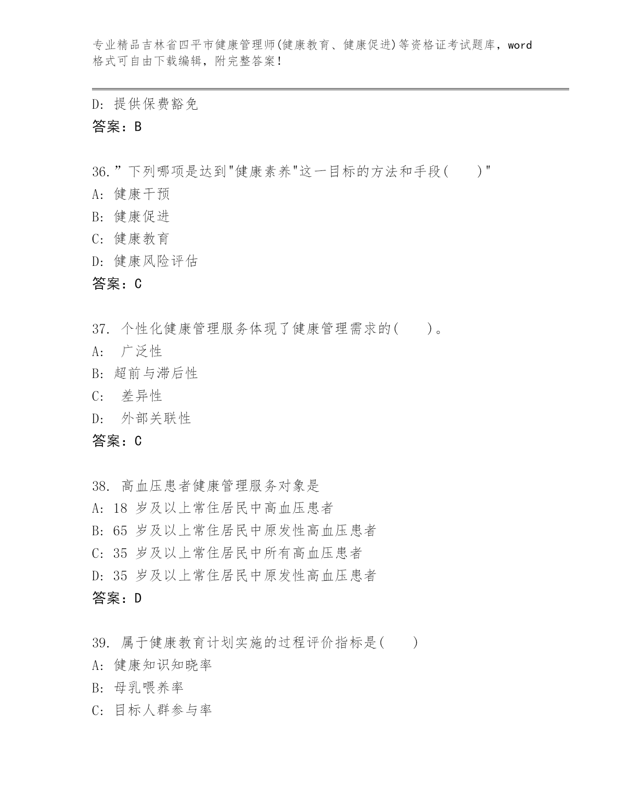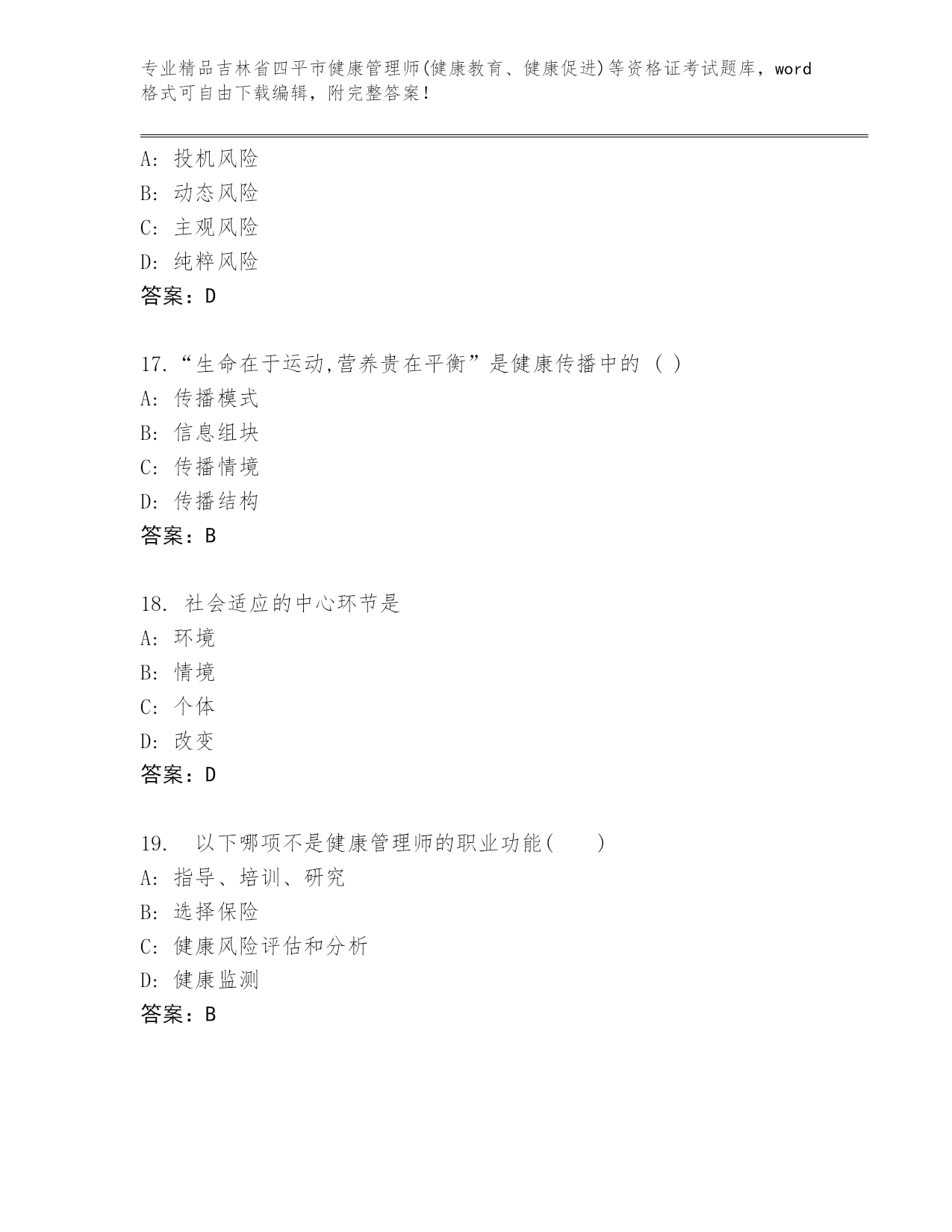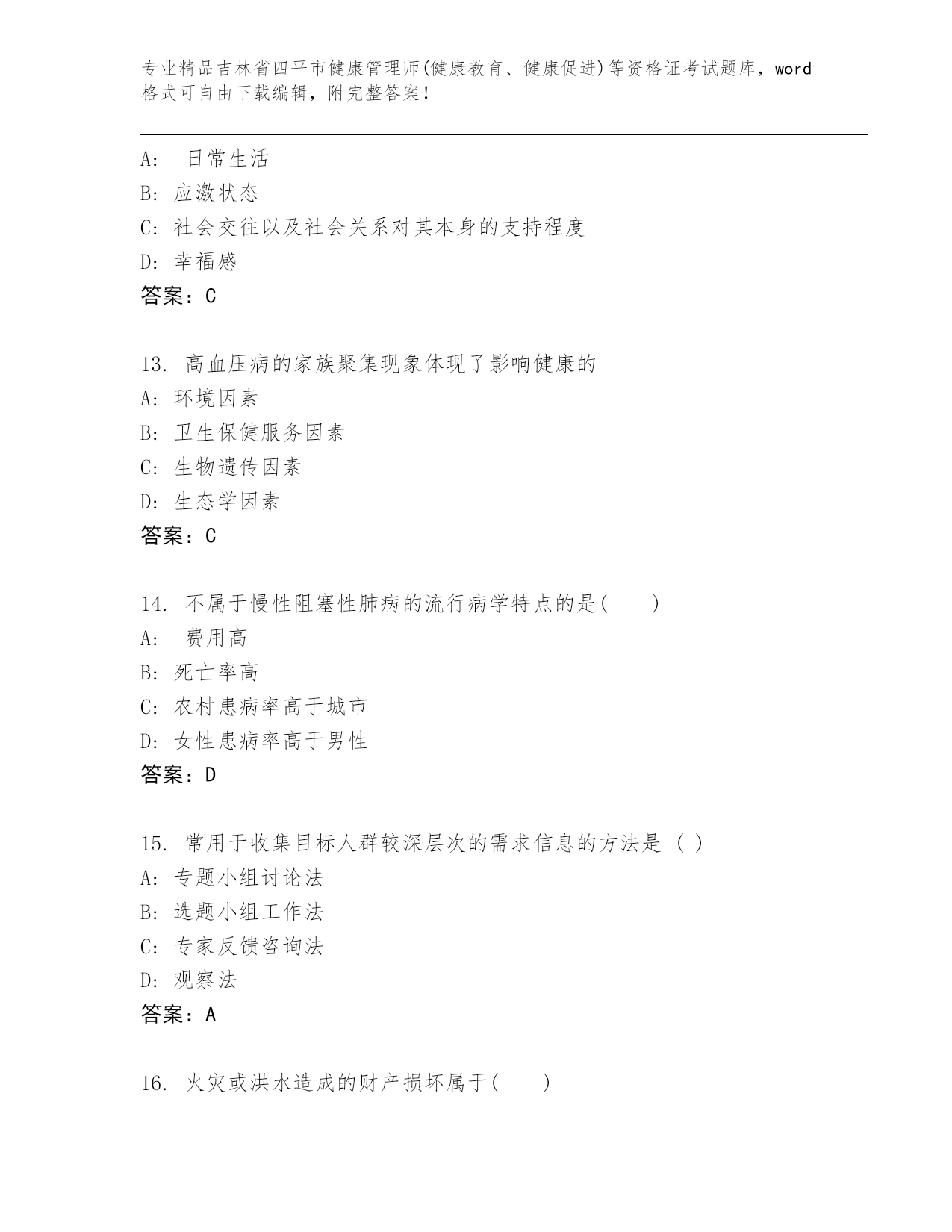 吉林省四平市健康管理师(健康教育、健康促进)等资格证考试及免费下载答案