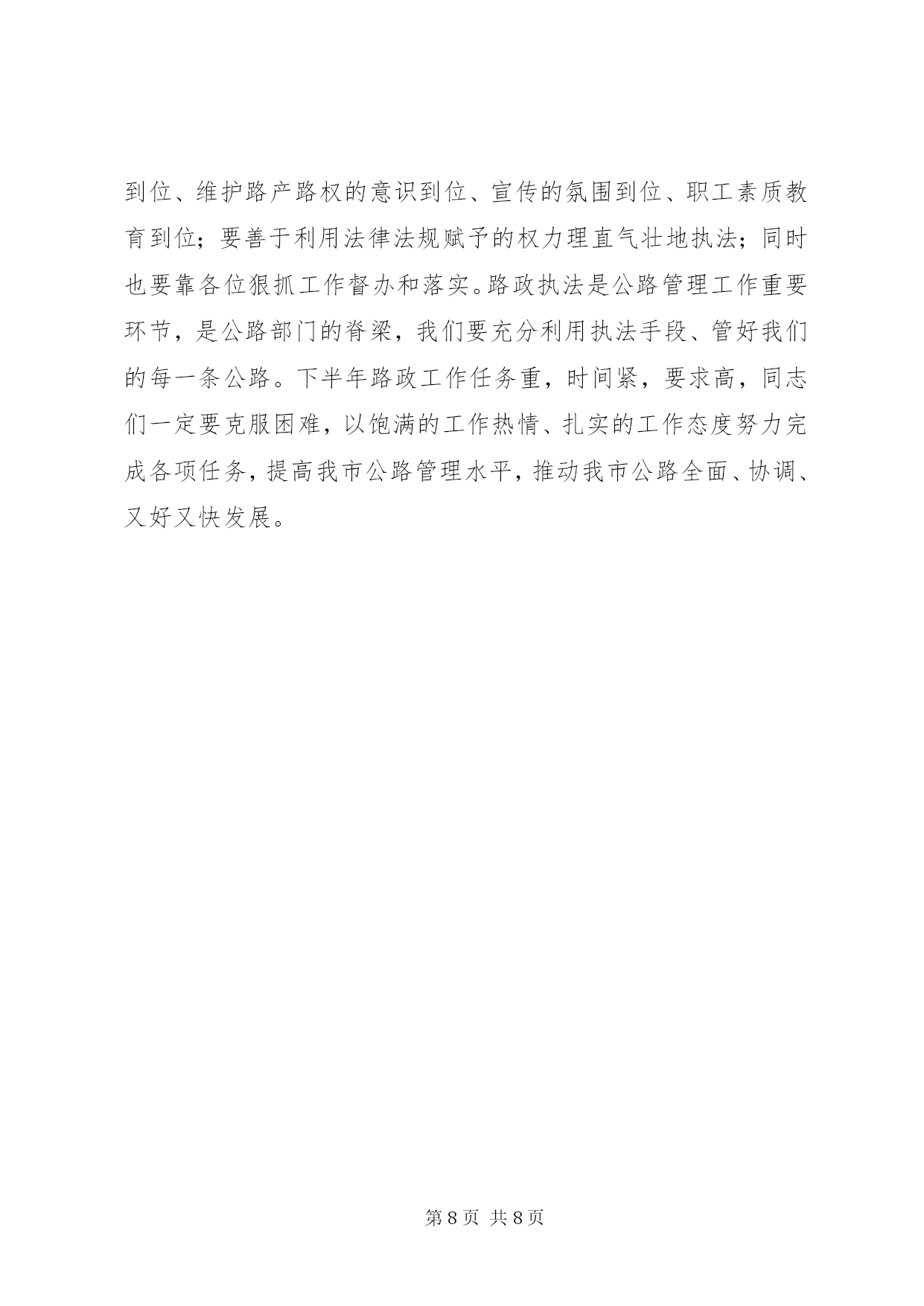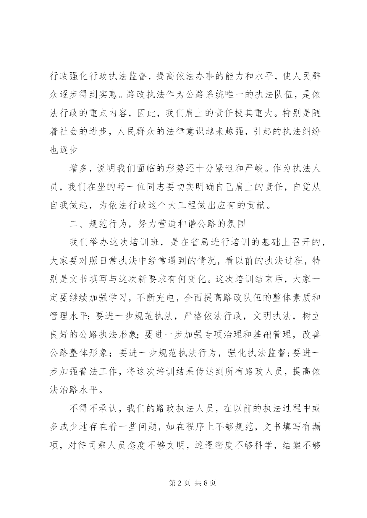 第PAGE\*Arabic\*MERGEFORMAT8页共NUMPAGES\*MERGEFORMAT8页交通执法培训心得依法行政构建和谐公路推动路政执法工作再上新台阶(2012年8月)同志们:在当前工作任务比较繁忙的情况下,市局召开这次培训会,对推动文明执法教育活动有着重要意义。其主要任务就是深入贯彻文明执法主题教育活动,使执法人员熟悉路政执法有关法律规定,掌握路政管理常用文书,增强路政人员依法行政的责任意识,提高依法行政的工作质量,实现“端正执法理念、坚持执法为民、改进执法作风、坚持文明执法、规范执法行为、坚持严格执法”的目标,推进全市路政管理工作的规范化、法制化水平。经过两天培训,大家掌握了很多基本知识,刚才大家签订了08年路政目标责任书,路政支队郭强同志就当前工作作了安排和部署,我完全同意,为进一步加强路政工作,提高管理水平,下面我就路政管理工作讲几点意见:一、提高认识,增强依法行政的责任感和紧迫感依法行政是党中央提出的依法治国的重要组成部分,2004年3月,国务院印发了《关于全面推进依法行政实施纲要》,确立了建设法治政府的目标,明确规定了今后十年全面推进依法行政的指导思想和具体目标,基本原则和要求、主要任务和措施。要通过实施依法行政强化行政执法监督,提高依法办事的能力和水平,使人民群众逐步得到实惠。路政执法作为公路系统唯一的执法队伍,是依法行政的重点内容,因此,我们肩上的责任极其重大。特别是随着社会的进步,人民群众的法律意识越来越强,引起的执法纠纷也逐步增多,说明我们面临的形势还十分紧迫和严峻。作为执法人员,我们在坐的每一位同志要切实明确自己肩上的责任,自觉从自我做起,为依法行政这个大工程做出应有的贡献。二、规范行为,努力营造和谐公路的氛围我们举办这次培训班,是在省局进行培训的基础上召开的,大家要对照日常执法中经常遇到的情况,看以前的执法过程,特别是文书填写与这次新要求有何变化。这次培训结束后,大家一定要继续加强学习,不断充电,全面提高路政队伍的整体素质和管理水平;要进一步规范执法,严格依法行政,文明执法,树立良好的公路执法形象;要进一步加强专项治理和基础管理,改善公路整体形象;要进一步规范执法行为,强化执法监督;要进一步加强普法工作,将这次培训结果传达到所有路政人员,提高依法治路水平。不得不承认,我们的路政执法人员,在以前的执法过程中或多或少地存在着一些问题,如在程序上不够规范,文书填写有漏项,对待司乘人员态度不够文明,巡逻密度不够科学,结案不够及时等等。所有这些群众都有着不同程度的反映,也都影响着和谐环境的营造。因此,作为路政执法人员要保持清醒的头脑,要牢固树立为民服务的理念,严肃个人的执法行为,从我做起,规范执法,文明执法,坚持以人为本,以车为本,以路为本,努力构建和谐公路,促进我市路政管理水平再上新台阶。三、继续强化队伍建设,提高路政执法水平首先是要努力提高执法人员素质。上半年市局组织全市在岗路政执法人员进行了法律法规考核,但从考核成绩来看,部分单位是不容乐观的,最低分仅29分,这样的业务素质能是一个合格的执法人员吗。各单位要继续加强执法人员的业务素质培训,把好应知应会关,加大培训力度,使路政执法人员掌握必要公路基本知识,熟知公路法律法规知识,了解相关法律知识。还要加强路政人员管理,按照政治强、素质高、业务精、纪律严的要求,优化路政人员年龄结构,严格把好人员进出关,严格控制人员编制,建立路政人员数据库。这次市局专门研究了路政人员核编问题,对核定的在编路政人员实行实名制管理,凡进入路政岗位,必须具有大专以上学历,在编执法人员进入、调离路政岗位,要书面报市局同意。四、建立长效机制,强化超限治理,巩固公路建设成果要继续树立长期治超,理直气壮抓治超的思想。进一步落实治超责任制,坚持统一领导,政府牵头,部门指导协调,各方联合行动的治理工作机制,加大治超力度。积极争取地方政府将治超工作纳入人民政府工作目标进行检查体系。坚持疏堵结合,坚持固定检测和流动检测相结合,管住干线,堵住支线。围绕重点监管与车型和重点路段,有针对性地加大路面执法力度,对恶意超限超载的要按上限处罚,严禁内外有别,部门有别。加大卸货力度,加大处罚力度,对于超限运输易装卸、易保管货物的车辆要坚决卸载消除违法为。大力加强检测站点规范化建设,进一步规范治超行为,建立规范化站点,明确治超责任。当阳淯溪治超站要尽快落实配套设施,配齐监控设施、硬化卸货场地、修建卸货棚、设置检测站专用标志牌,尽快恢复正常检测工作。姜家湾、金钟寺部级站建设的前准备工作要抓紧,提前做好规划设计和土地征用工作,争取年内开工,明年投入使用。加强治超工作的沟通协调,主动向政府汇报治超工作,积极争取召开治超工作动员会议,进一步加大路面治超力度,强化源头治理,清除治外不治内