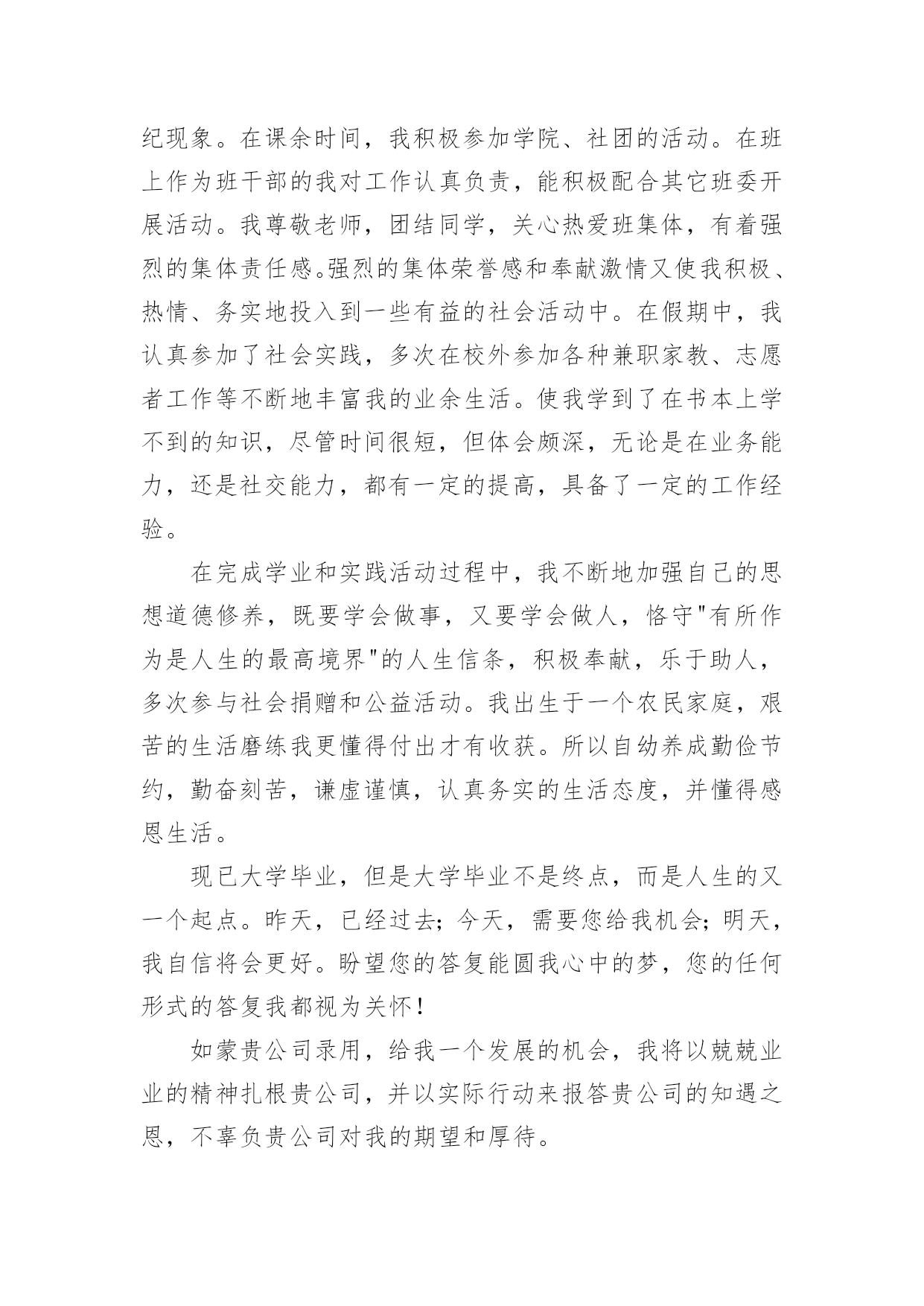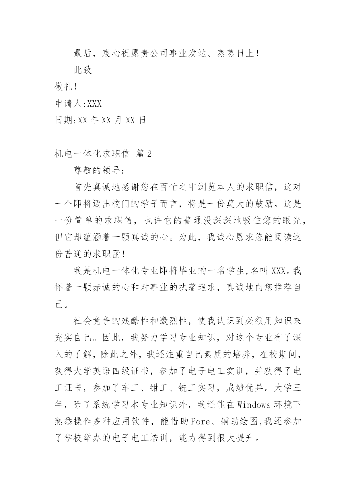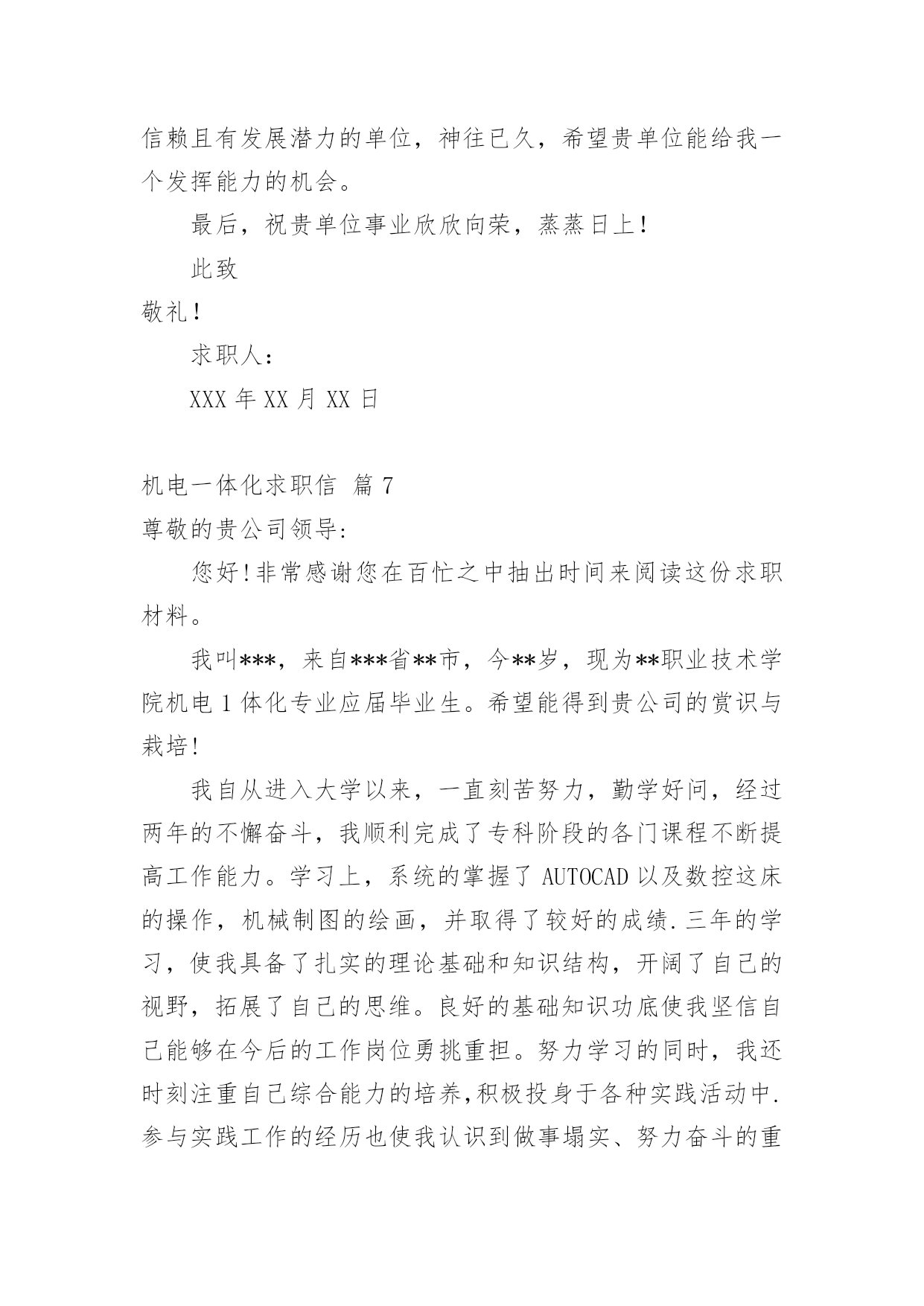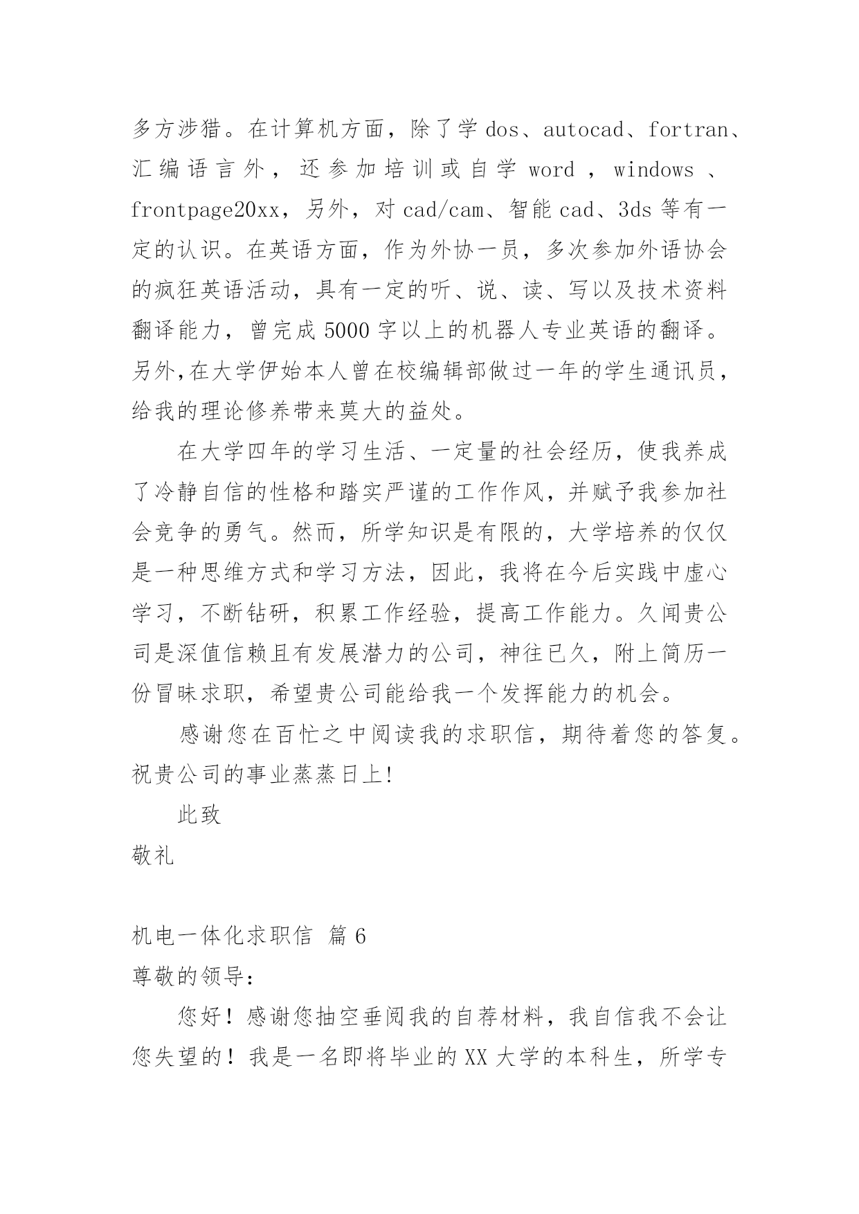 机电一体化求职信关于机电一体化求职信集合7篇时间稍纵即逝,没想到也到了自己找工作的时间,是时候好好地琢磨一下写求职信的事情了哦。求职信怎么写才不会千篇一律呢?下面是小编为大家收集的机电一体化求职信9篇,供大家参考借鉴,希望可以帮助到有需要的朋友。机电一体化求职信篇1尊敬的领导:您好!真诚地感谢您在繁忙的公务中浏览这份求职信,这里有一颗热情而赤诚的心灵渴望得到您的了解、支持与帮助。在此,请允许我向您毛遂自荐。我叫XX,毕业于xx学院机电工程系机电一体化专业。在三年的学习期间,我深知理论知识与实践能力的重要性,所以我努力地系统的学习了机械制造和计算机网络的相关专业课程的理论知识和基础、专科操作,各科学习成绩优良。现已很熟练的懂得了一些有关计算机硬、软件的组装和维护,熟练的办公软件操作、网络安全的管理、企业网站的开发,同时也尽可能的了解专业外的知识,以使自己充实,视野拓展。我严格的要求自己,遵守学校的规章制度,从未有过违纪现象。在课余时间,我积极参加学院、社团的活动。在班上作为班干部的我对工作认真负责,能积极配合其它班委开展活动。我尊敬老师,团结同学,关心热爱班集体,有着强烈的集体责任感。强烈的集体荣誉感和奉献激情又使我积极、热情、务实地投入到一些有益的社会活动中。在假期中,我认真参加了社会实践,多次在校外参加各种兼职家教、志愿者工作等不断地丰富我的业余生活。使我学到了在书本上学不到的知识,尽管时间很短,但体会颇深,无论是在业务能力,还是社交能力,都有一定的提高,具备了一定的工作经验。在完成学业和实践活动过程中,我不断地加强自己的思想道德修养,既要学会做事,又要学会做人,恪守"有所作为是人生的最高境界"的人生信条,积极奉献,乐于助人,多次参与社会捐赠和公益活动。我出生于一个农民家庭,艰苦的生活磨练我更懂得付出才有收获。所以自幼养成勤俭节约,勤奋刻苦,谦虚谨慎,认真务实的生活态度,并懂得感恩生活。现已大学毕业,但是大学毕业不是终点,而是人生的又一个起点。昨天,已经过去;今天,需要您给我机会;明天,我自信将会更好。盼望您的答复能圆我心中的梦,您的任何形式的答复我都视为关怀!如蒙贵公司录用,给我一个发展的机会,我将以兢兢业业的精神扎根贵公司,并以实际行动来报答贵公司的知遇之恩,不辜负贵公司对我的期望和厚待。最后,衷心祝愿贵公司事业发达、蒸蒸日上!此致敬礼!申请人:XXX日期:XX年XX月XX日机电一体化求职信篇2尊敬的领导:首先真诚地感谢您在百忙之中浏览本人的求职信,这对一个即将迈出校门的学子而言,将是一份莫大的鼓励。这是一份简单的求职信,也许它的普通没深深地吸住您的眼光,但它却蕴涵着一颗真诚的心。为此,我诚心恳求您能阅读这份普通的求职函!我是机电一体化专业即将毕业的一名学生,名叫XXX。我怀着一颗赤诚的心和对事业的执著追求,真诚地向您推荐自己。社会竞争的残酷性和激烈性,使我认识到必须用知识来充实自己。因此,我努力学习专业知识,对这个专业有了深入的了解,除此之外,我还注重自己素质的培养,在校期间,获得大学英语四级证书,参加了电子电工实训,并获得了电工证书,参加了车工、钳工、铣工实习,成绩优异。大学三年,除了系统学习本专业知识外,我还能在Windows环境下熟悉操作多种应用软件,能借助Pore、辅助绘图,我还参加了学校举办的电子电工培训,能力得到很大提升。一滴滴汗水是面对昨日舒心的微笑,也是走向未来丰沛的信心。站在世纪的曙光中,面对新的考验和抉择,我无法退缩,也无法沉默,我要用我那双冷静善于观察的眼睛,那颗真诚而热爱事业的心,用那双善于操作而有力的手,那双发誓踏平坎坷的脚一如既往的发扬对工作求真务实,锐意进取,开拓创新的工作作风和对事业执着追求的精神,磨砺前行。为您,为我,为我们的共同事业创造新的辉煌。我的不足是缺乏经验,但我拥有饱满的热情以及“干一行爱一行”的敬业精神。在这个竞争日益激烈的时代,人才济济,我不一定是最优秀的。但我仍自信可以做到更好。尊敬的领导,给我一个舞台,送您一台好戏。这是我的承诺,也是我的决心。此致敬礼!求职人:XXXXX年XX月XX日机电一体化求职信篇3尊敬的贵公司领导:您好!首先真诚地感谢您在百忙之中浏览我的求职信,这对一个即将迈出校门学生而言,将是一份莫大的鼓励。这是一份简单而又朴实的求职信。也许它的普通没深深地吸住您的眼光,但它却蕴涵着一颗真诚的心。为此,我诚心恳求您能阅读这份普通的求职信!我是一名榆林工业学院机电一体化专业即将毕业的一名学生,名叫樊广艳,我怀着一颗赤诚的心和对事业的执著追求,真诚地向您推荐自己。我是在几年的学习生活中,我系统学习机械基础、机电一体化系统等专业知识。在校期间进行过多次机械及电学的课程设计实习和多次社会实践活动,并曾在多家公司做过兼职工作。我深知自己缺少了“名牌大学毕业生”这一