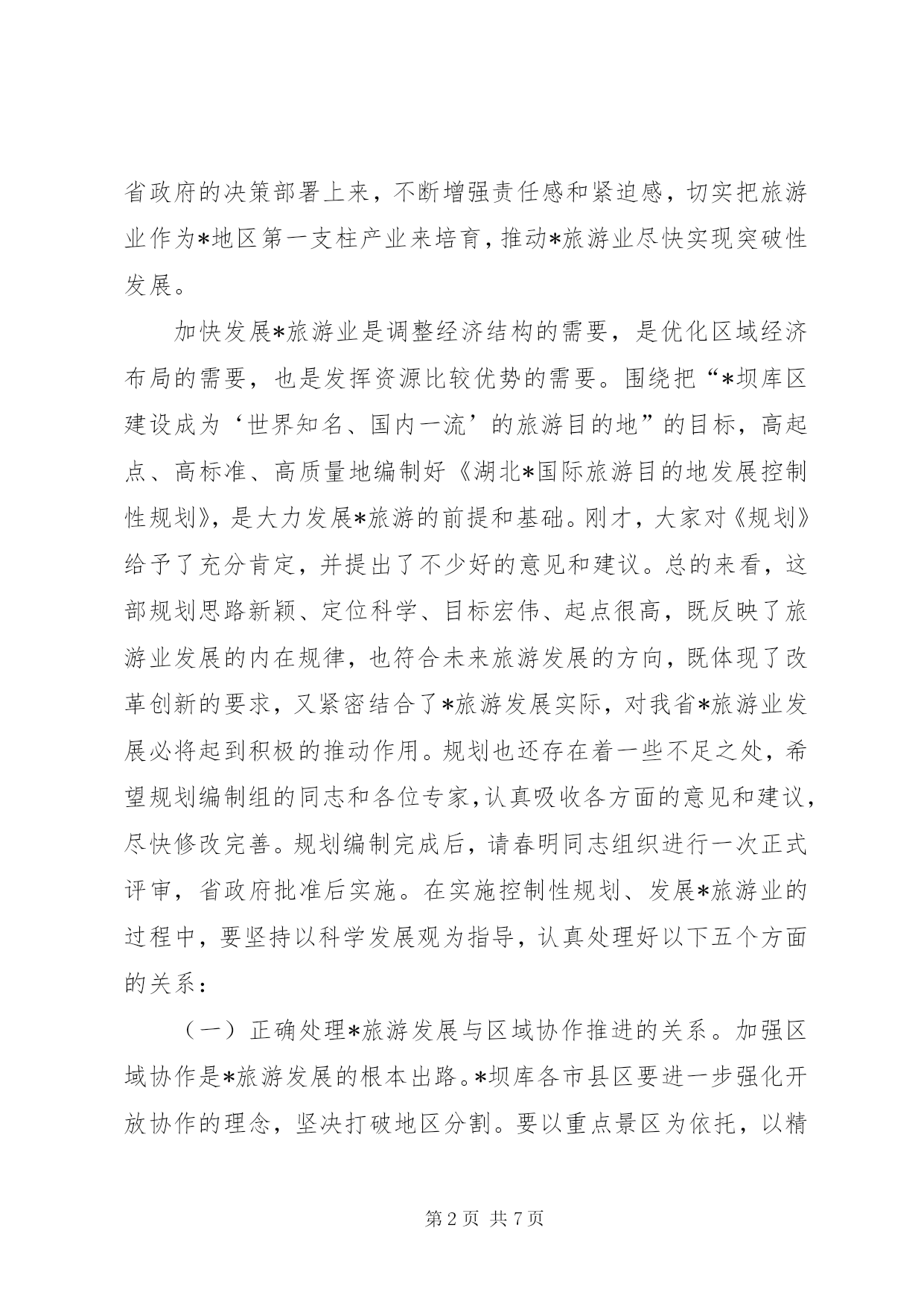 第PAGE\*Arabic\*MERGEFORMAT7页共NUMPAGES\*MERGEFORMAT7页旅游现场办公会讲话同志们:这次*旅游现场办公会是省政府决定召开的一次重要会议。昨天,大家实地考察了长江*的一些景点。刚才,规划编制组的同志汇报了《XX省长江*国际旅游目的地发展控制性规划》的编制情况和主要内容,XX市、XX县区、XX县区政府的负责同志汇报了当前旅游业发展情况,省直有关部门就*旅游发展讲了很好的意见和建议。春明同志代表省政府,就如何贯彻落实规划、加快*旅游业的发展进行了具体部署,讲得很好、很有针对性,我完全赞同。希望大家学习好、贯彻好。旅游业是当今世界发展最快、前景广阔的新兴产业。随着城镇化、市场化、国际化进程的加快和人民生活水平的不断提高,旅游业在国民经济和社会发展中的地位越来越重要,加快发展旅游业已成为全社会的共识。今年“五一”黄金周,全国各地景区人山人海,既反映了旅游业发展的良好态势,也表明了人民群众生活水平提高后对旅游的需求。长江*是我省最具有代表性的流域性国际化旅游目的地,已经具备了建成复合型、全天候、四季游的旅游目的地条件。省委、省政府对*地区旅游业的发展,高度重视,寄予厚望。正声同志多次对*旅游工作作出重要指示,提出明确要求。*地区各级政府一定要从全局和战略的高度,充分认识加快发展*旅游业的重大意义,把思想和行动统一到省委、省政府的决策部署上来,不断增强责任感和紧迫感,切实把旅游业作为*地区第一支柱产业来培育,推动*旅游业尽快实现突破性发展。加快发展*旅游业是调整经济结构的需要,是优化区域经济布局的需要,也是发挥资源比较优势的需要。围绕把“*坝库区建设成为‘世界知名、国内一流’的旅游目的地”的目标,高起点、高标准、高质量地编制好《湖北*国际旅游目的地发展控制性规划》,是大力发展*旅游的前提和基础。刚才,大家对《规划》给予了充分肯定,并提出了不少好的意见和建议。总的来看,这部规划思路新颖、定位科学、目标宏伟、起点很高,既反映了旅游业发展的内在规律,也符合未来旅游发展的方向,既体现了改革创新的要求,又紧密结合了*旅游发展实际,对我省*旅游业发展必将起到积极的推动作用。规划也还存在着一些不足之处,希望规划编制组的同志和各位专家,认真吸收各方面的意见和建议,尽快修改完善。规划编制完成后,请春明同志组织进行一次正式评审,省政府批准后实施。在实施控制性规划、发展*旅游业的过程中,要坚持以科学发展观为指导,认真处理好以下五个方面的关系:(一)正确处理*旅游发展与区域协作推进的关系。加强区域协作是*旅游发展的根本出路。*坝库各市县区要进一步强化开放协作的理念,坚决打破地区分割。要以重点景区为依托,以精品线路为纽带,由点到线、由线到面,大力推进跨地区、跨行业、跨景区合作。要在加快自身发展的基础上,带动神农架、武当山旅游业的发展,带动荆州、荆门、襄樊旅游业的发展,带动恩施旅游业的发展,促进全省旅游业的整体发展。长江*地跨湖北、重庆两省市,既是一个完整的产品,也是一个统一的品牌,因此,必须进一步强化与重庆的旅游合作。要按照双方达成的1+3协议,以更加积极主动的姿态,与重庆共同建设长江*无障碍旅游区,共同打造一流的旅游品牌。在此基础上,要大力推进包括鄂、渝、湘、黔相邻地区在内的大*旅游区域的全方位协作互动,努力开创中西部旅游合作发展的新局面。要加强宜昌长江*与北京长城、西安兵马俑、四川九寨沟、湖南张家界等著名旅游目的地的合作,真正将*旅游推向国际。我与XX省周强省长会谈时,都提到了西安—武当山—宜昌—张家界的高速公路建设,今后还要争取开通西安—武当山—宜昌—张家界的旅游列车,这对协作推进宜昌与其他地区旅游业的发展,是十分重要的。(二)正确处理发展*旅游与服务全省大局的关系。近年来,省委、省政府从湖北实际出发,做出了一系列重大战略部署,提出着力构建“一主两副”的城市经济发展格局,大力推进县域经济发展和社会主义新农村建设,加快产业调整和结构转型,创造性地开展*移民工作,等等。这些都是当前全省经济社会发展的大局,既为旅游业发展提供了广阔的空间,又对旅游业发展提出了更高的要求。要切实树立大旅游的观念,主动将旅游产业融入经济社会发展的各个方面,形成旅游产业与其他产业的良性互动、协调发展。比方说,结合社会主义新农村建设,大力发展乡村旅游,就是一个新课题。黄陂木兰天池通过发展乡村旅游,取得了很好的成效,带动了农民脱贫致富。刚才,陈柏槐同志也谈到省农业厅、省旅游局加强合作,共同推进乡村旅游发展的问题。*地区丰富独特的旅游资源大多集中在农村,各地可以围绕“生产发展、生活宽裕、乡风文明、村容整洁、管理民主”的要求,积极开发乡村旅游资源,建成一批具有旅游特色的新村,促进社会主义新农村建设。省建设厅要把夷陵区三斗坪镇、