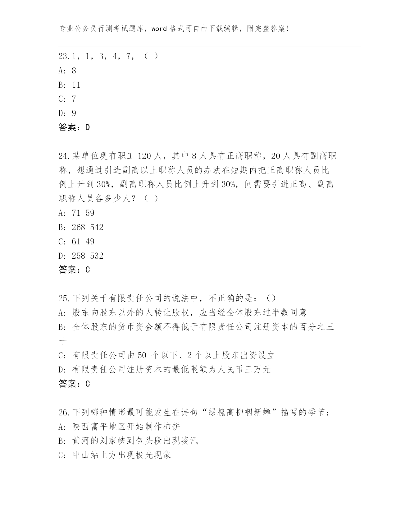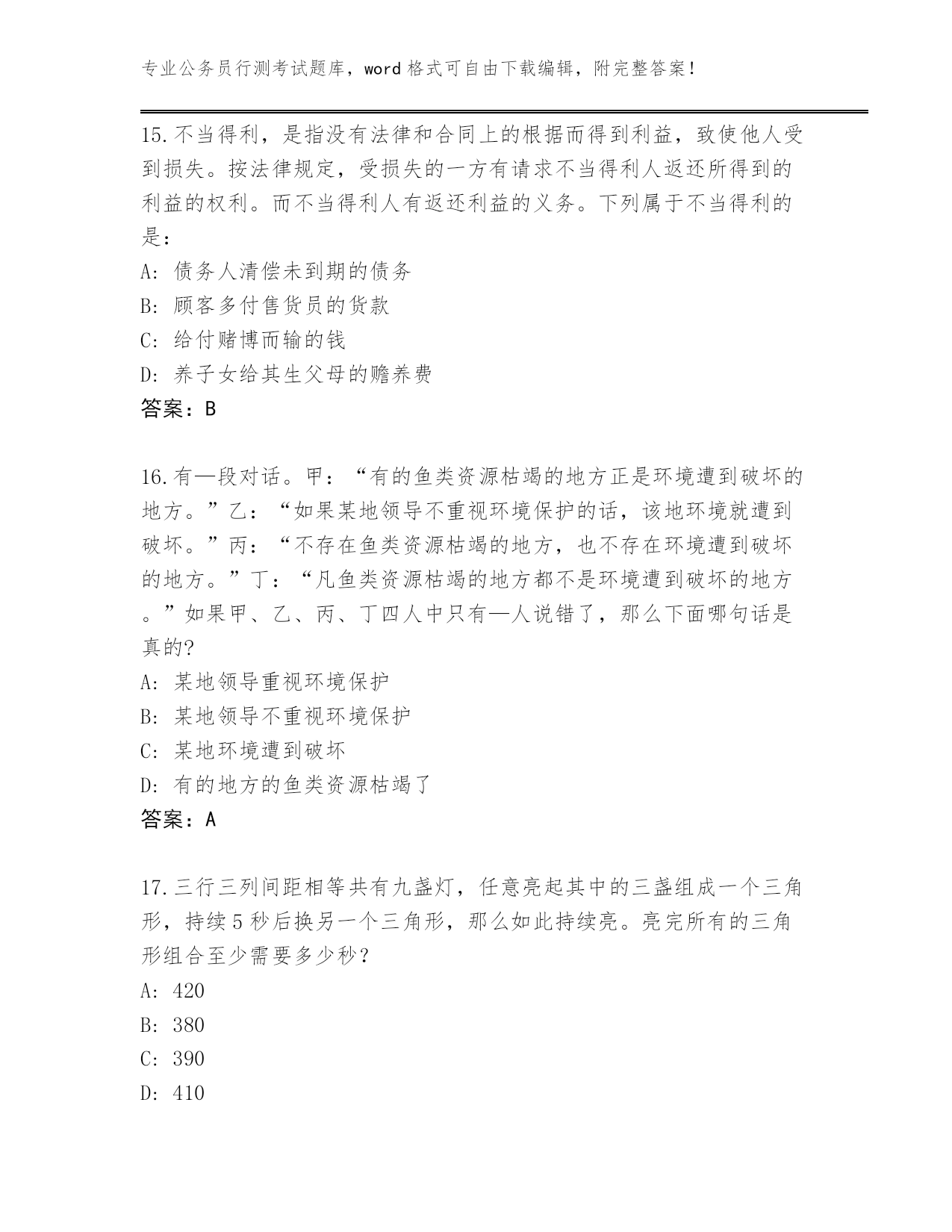 2024年湖北省梁子湖区公务员行测考试大全(原创题)