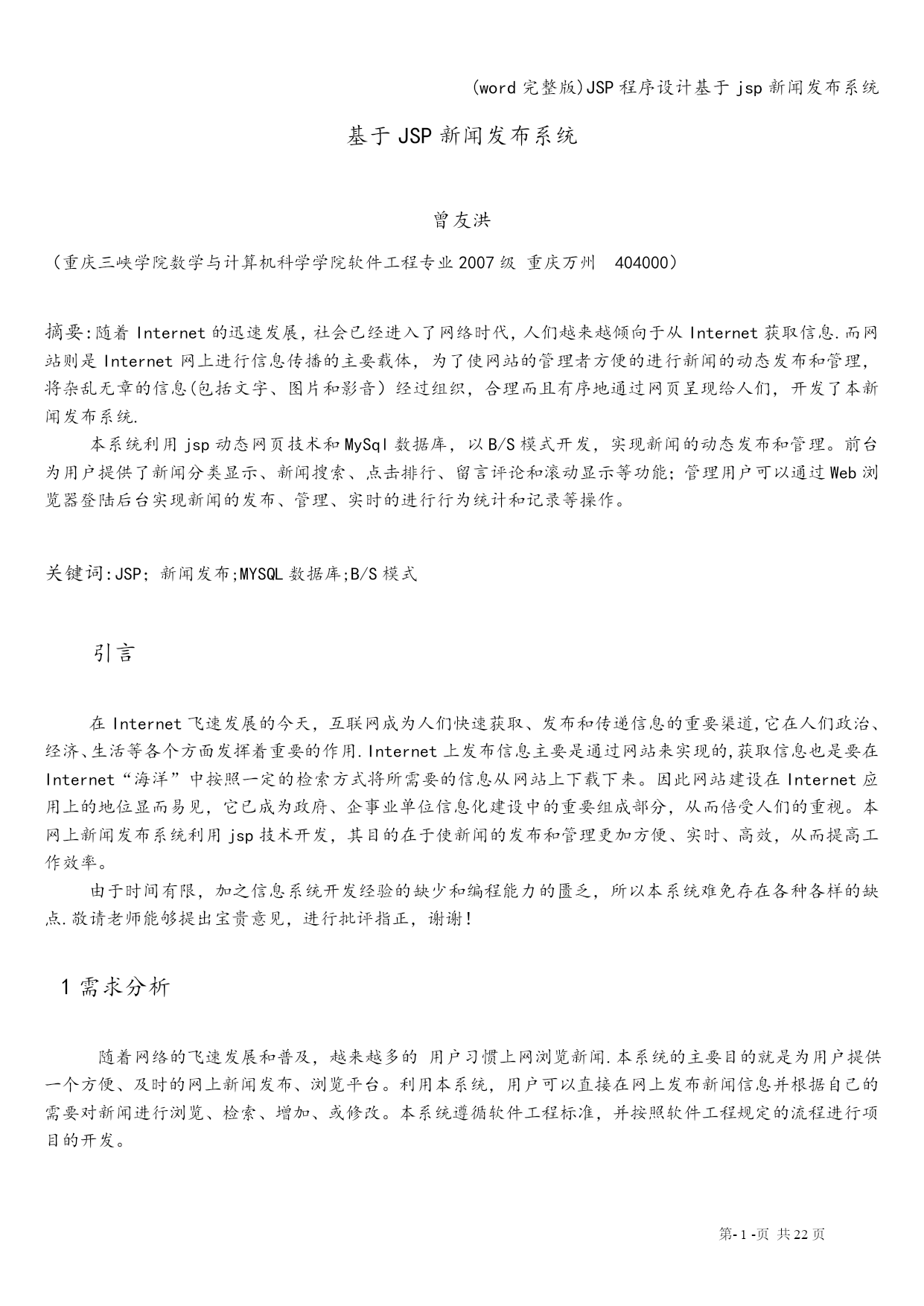 (word完整版)JSP程序设计基于jsp新闻发布系统.doc