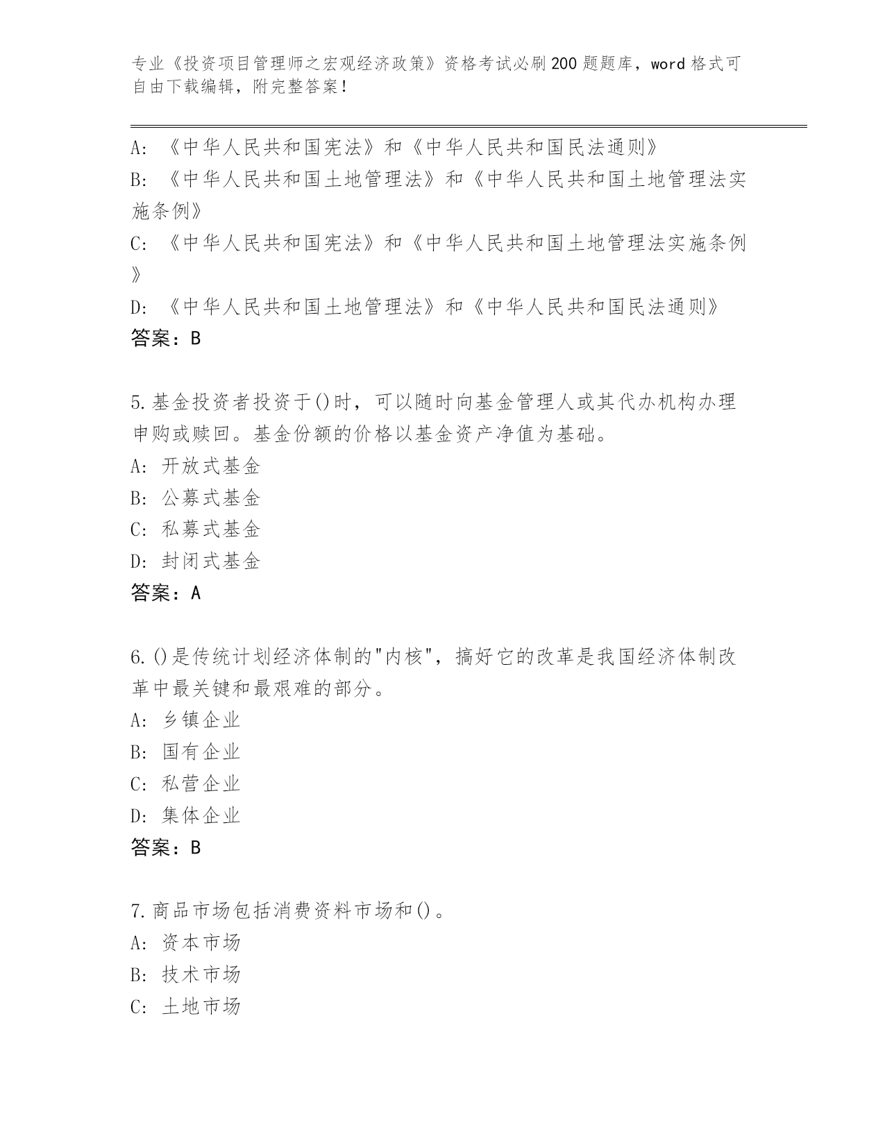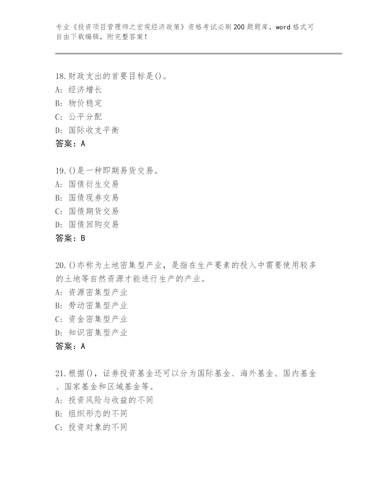 2023-2024年陕西省宁陕县《投资项目管理师之宏观经济政策》资格考试必刷200题真题题库附答案(完整版)
