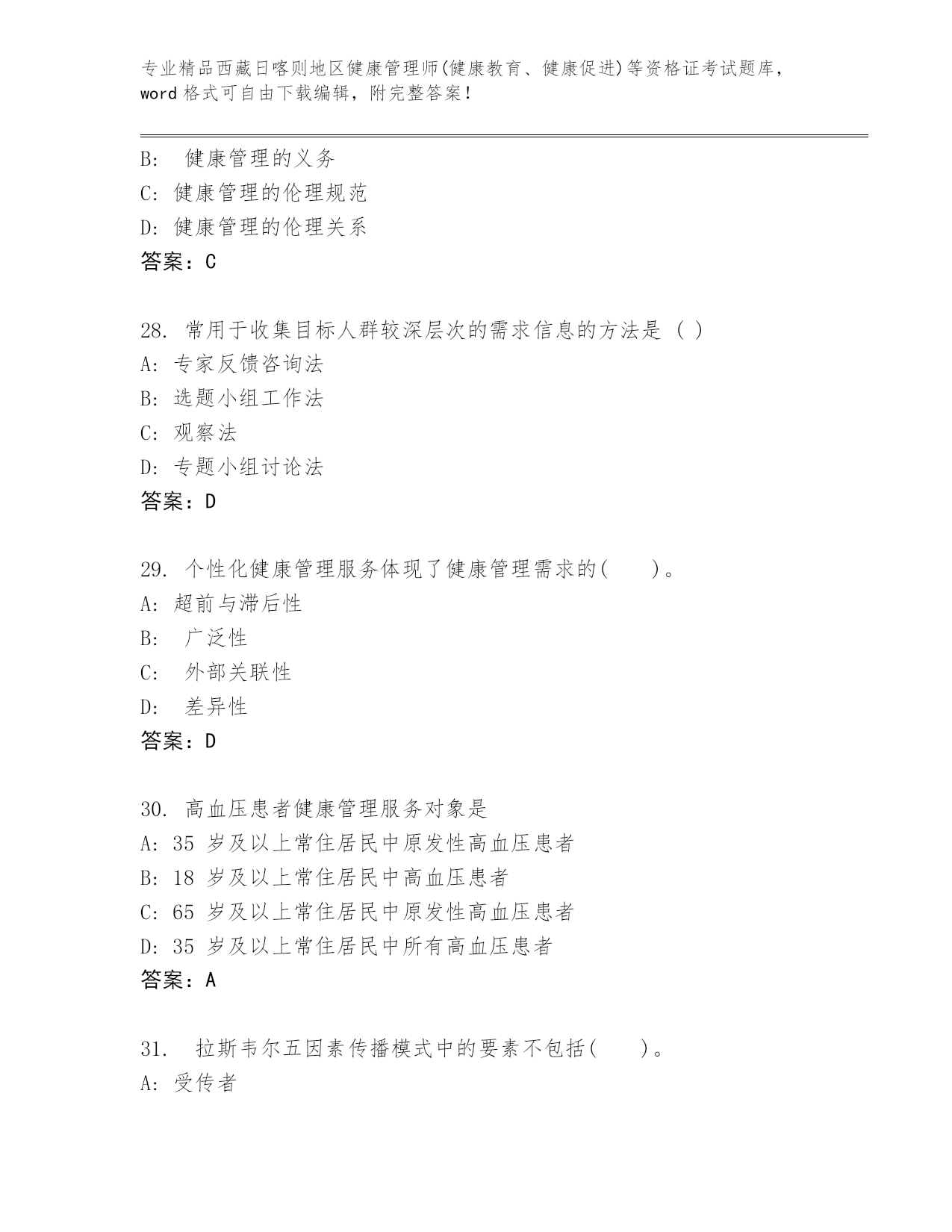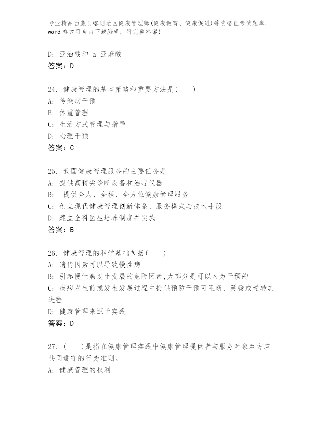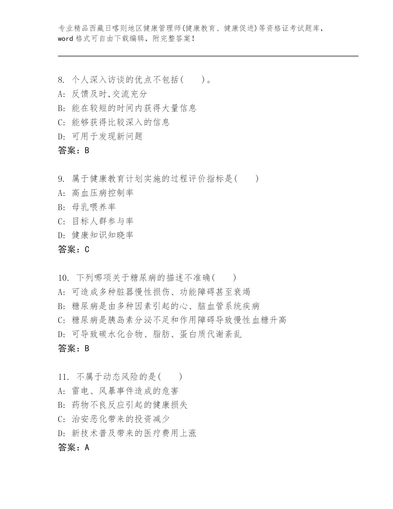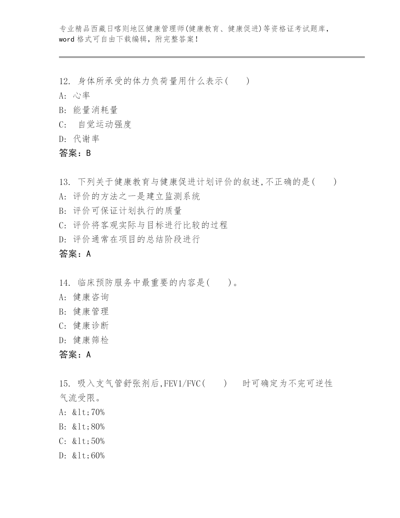 优选西藏日喀则地区健康管理师(健康教育、健康促进)等资格证考试精选题库精品(夺冠系列)