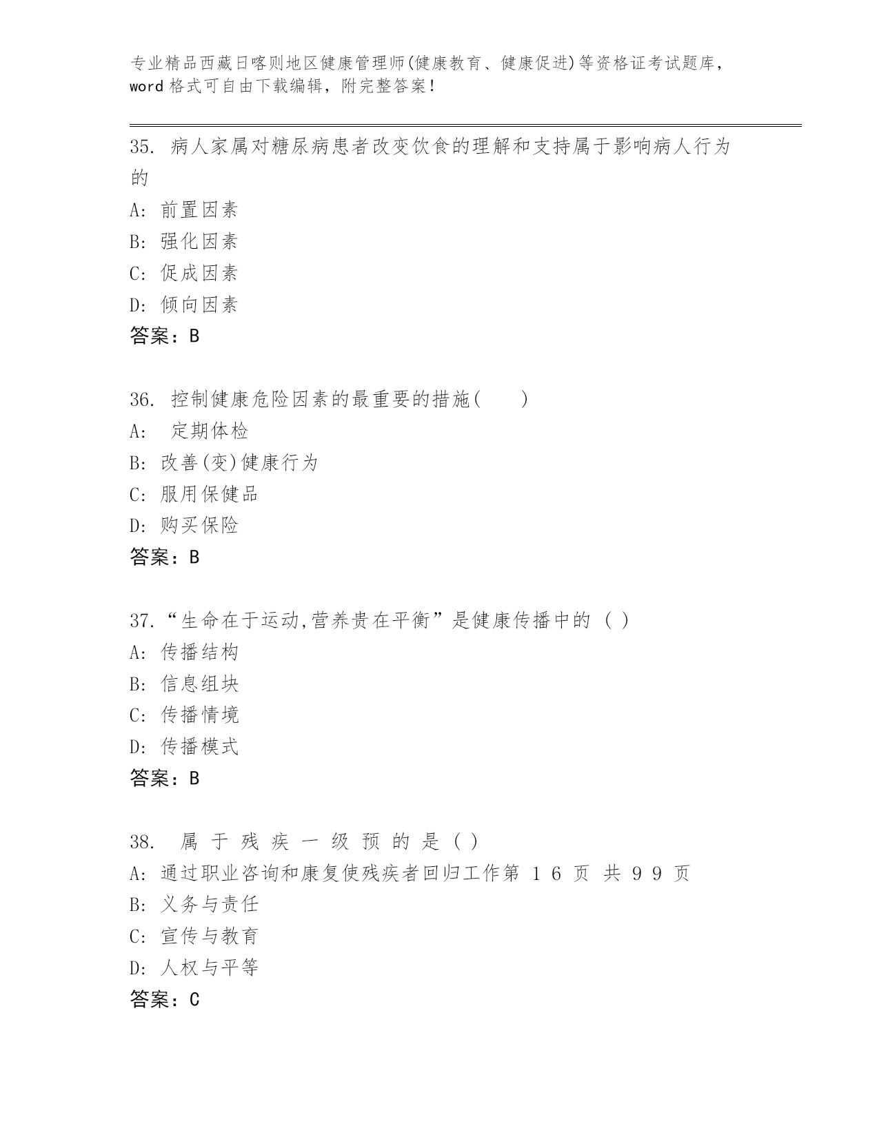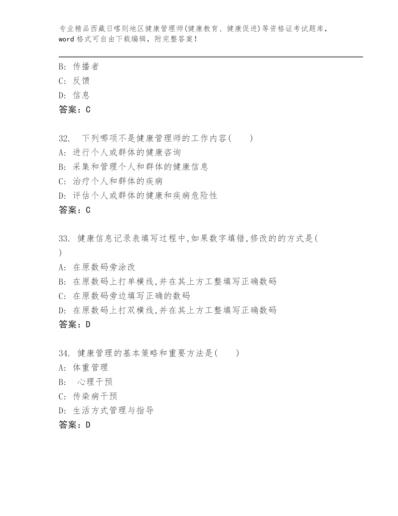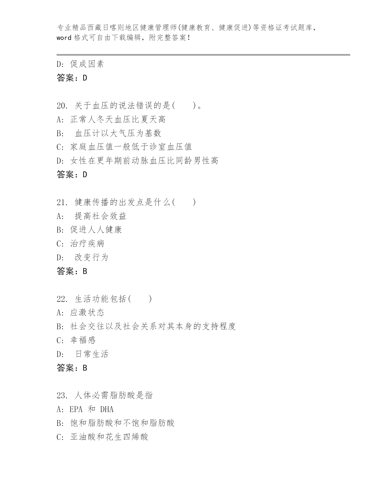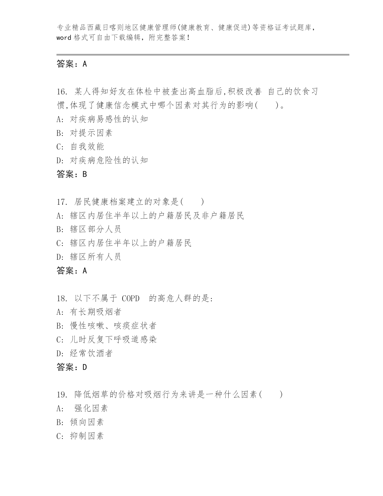 优选西藏日喀则地区健康管理师(健康教育、健康促进)等资格证考试精选题库精品(夺冠系列)