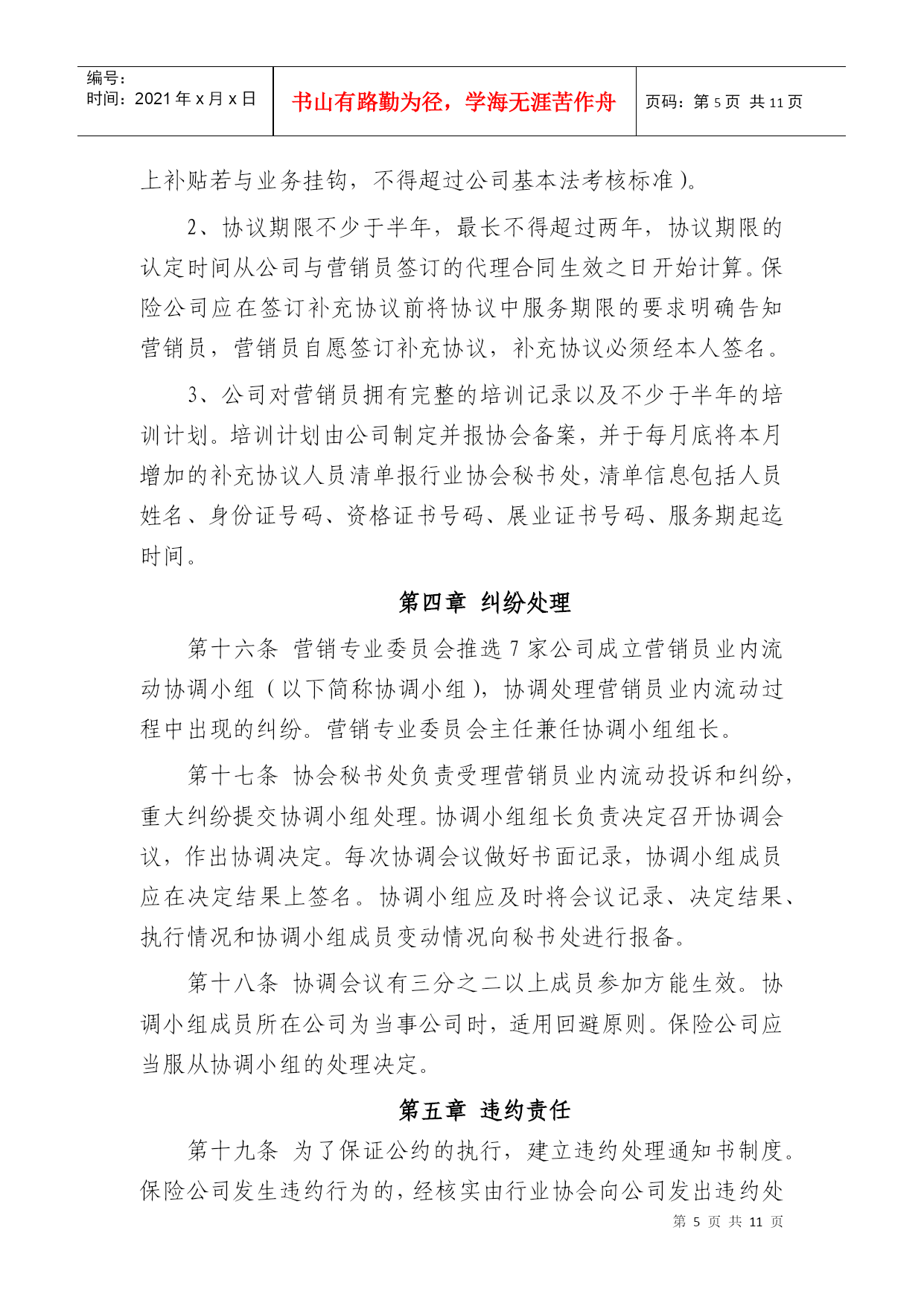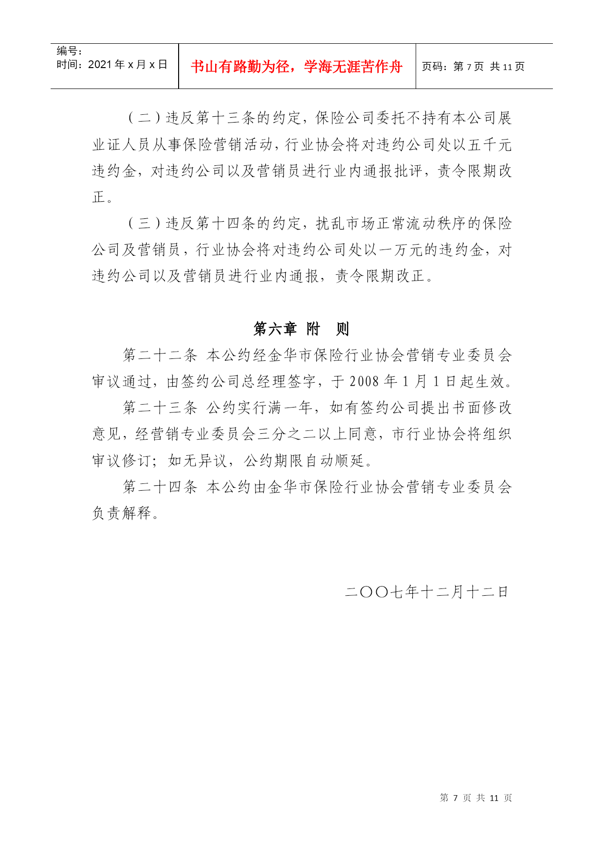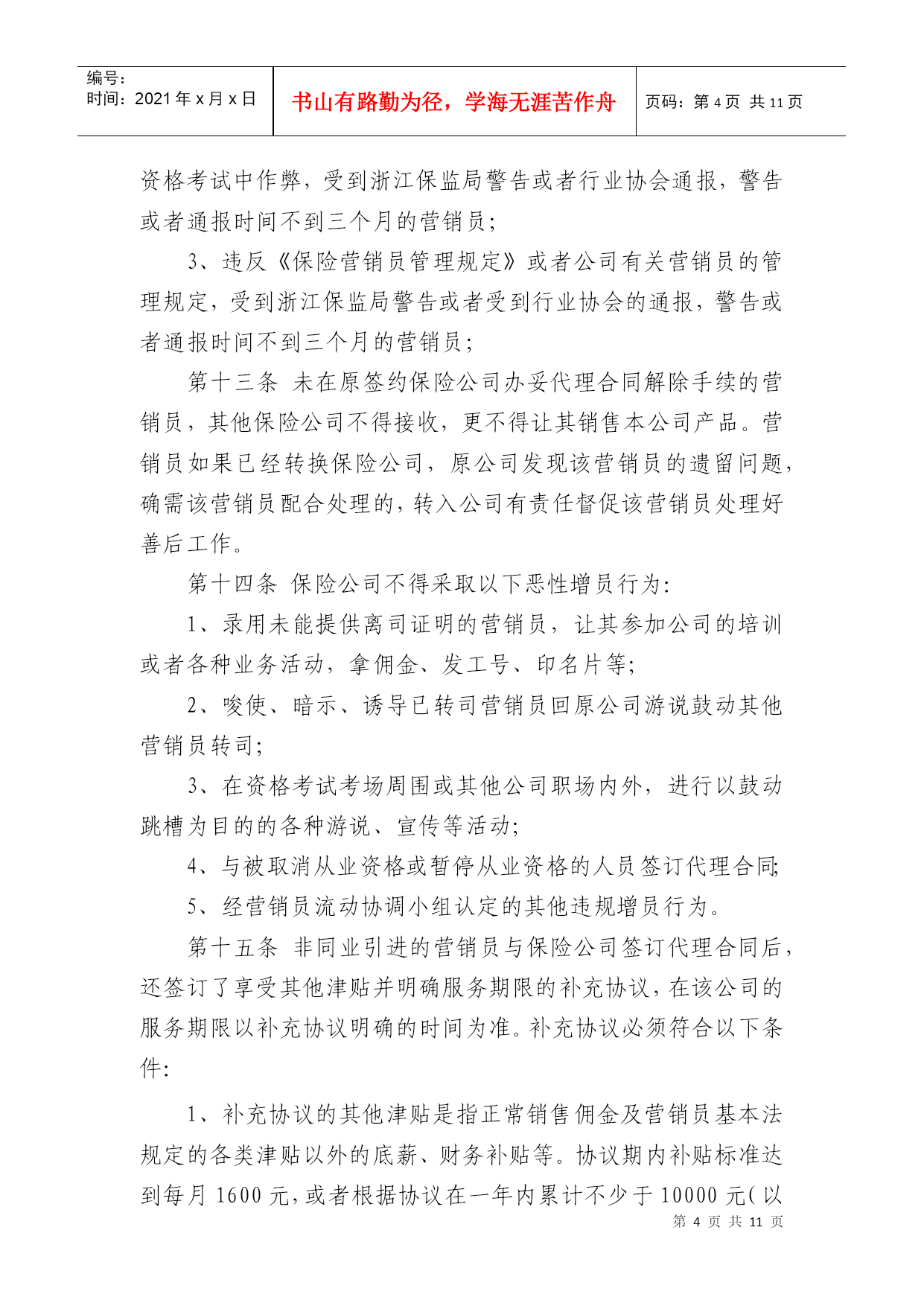 保险营销员管理自律公约(发文)doc-浙江省保险营销员管