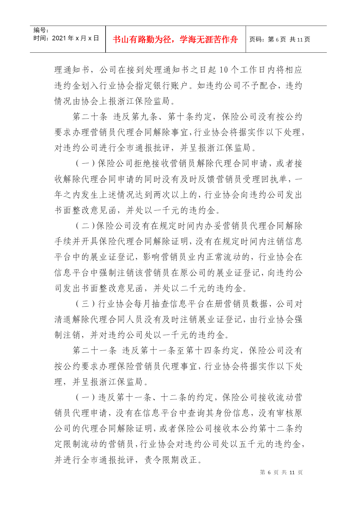 保险营销员管理自律公约(发文)doc-浙江省保险营销员管.docx