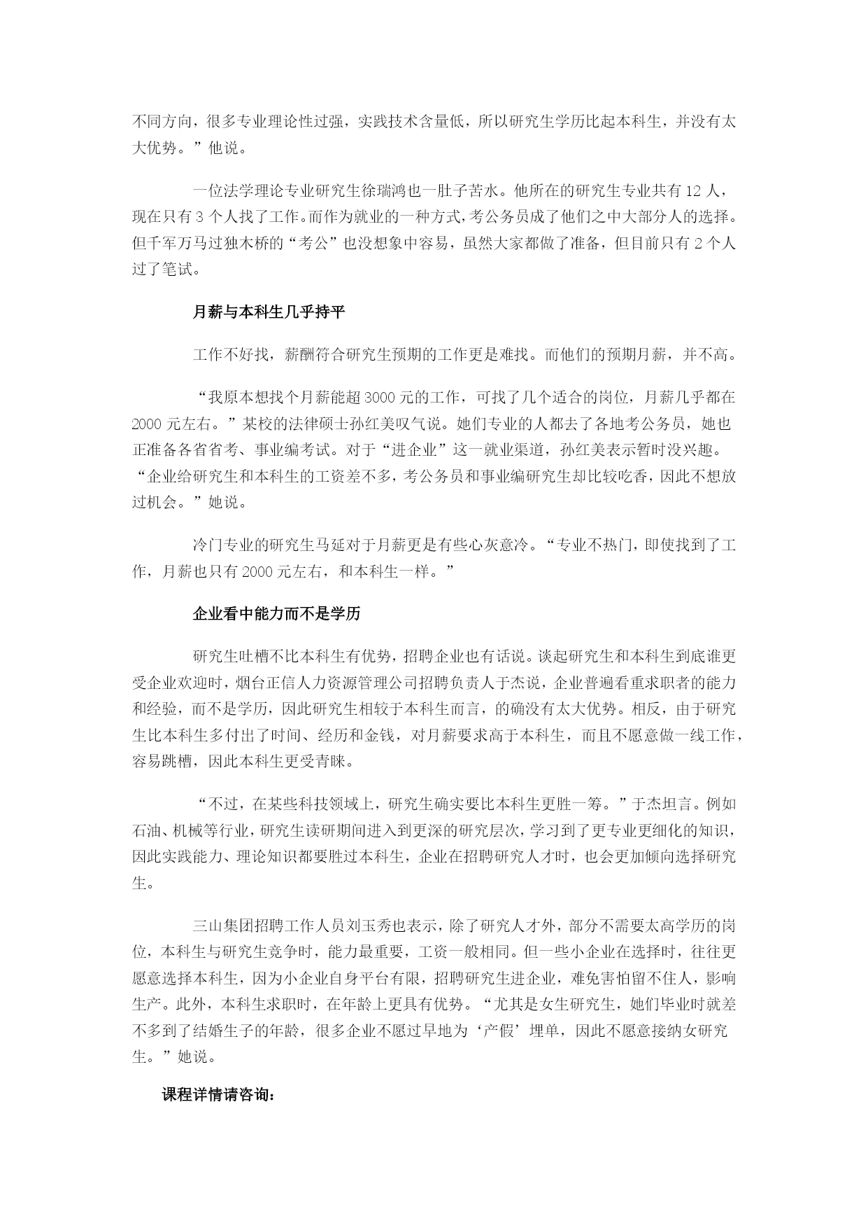 媒体争相报道研究生就业困局如何与本科生同台竞争.doc
