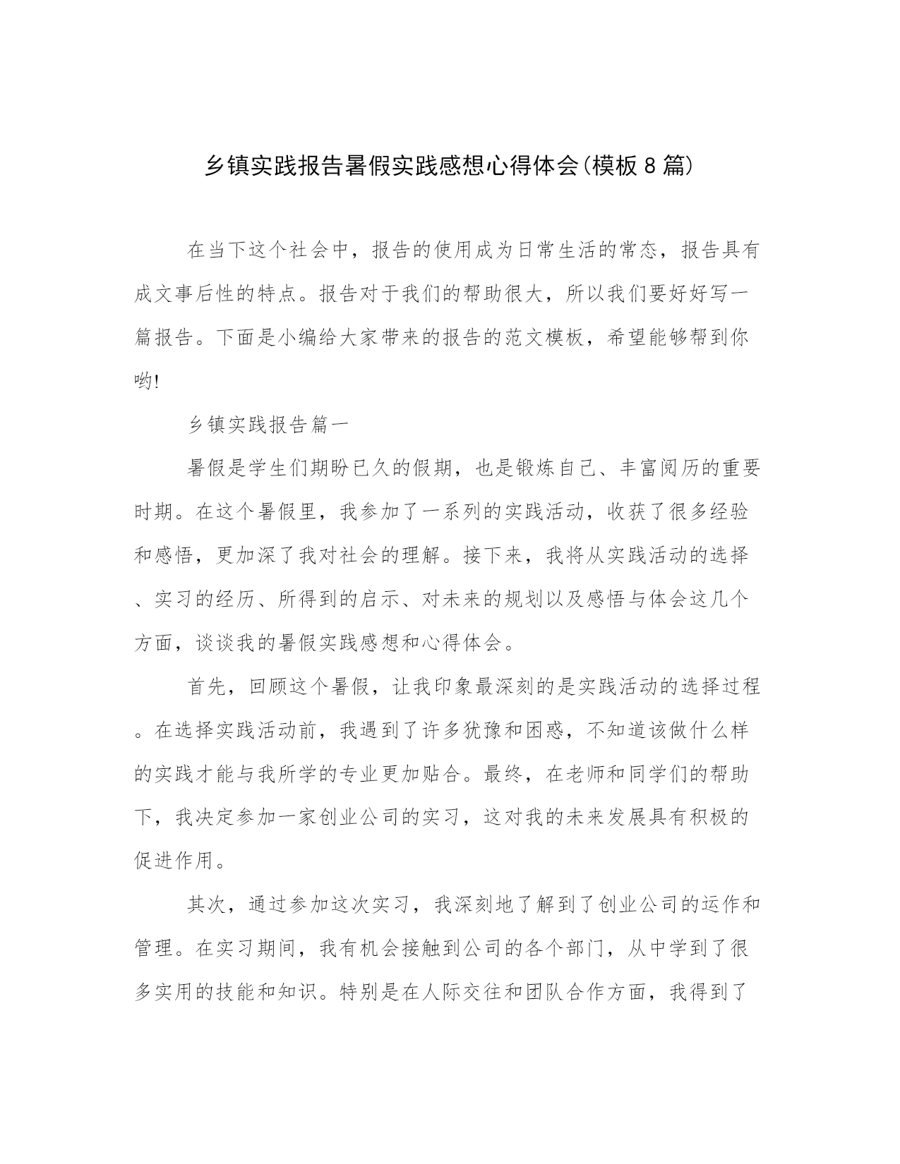 乡镇实践报告暑假实践感想心得体会(模板8篇).docx
