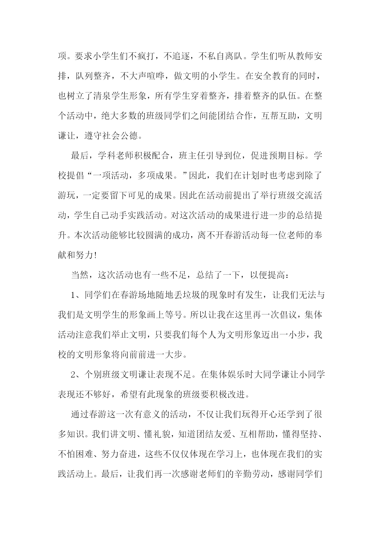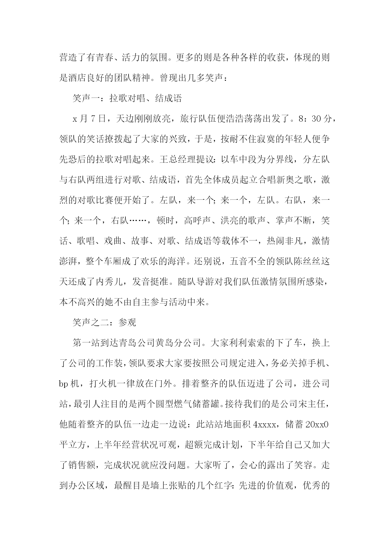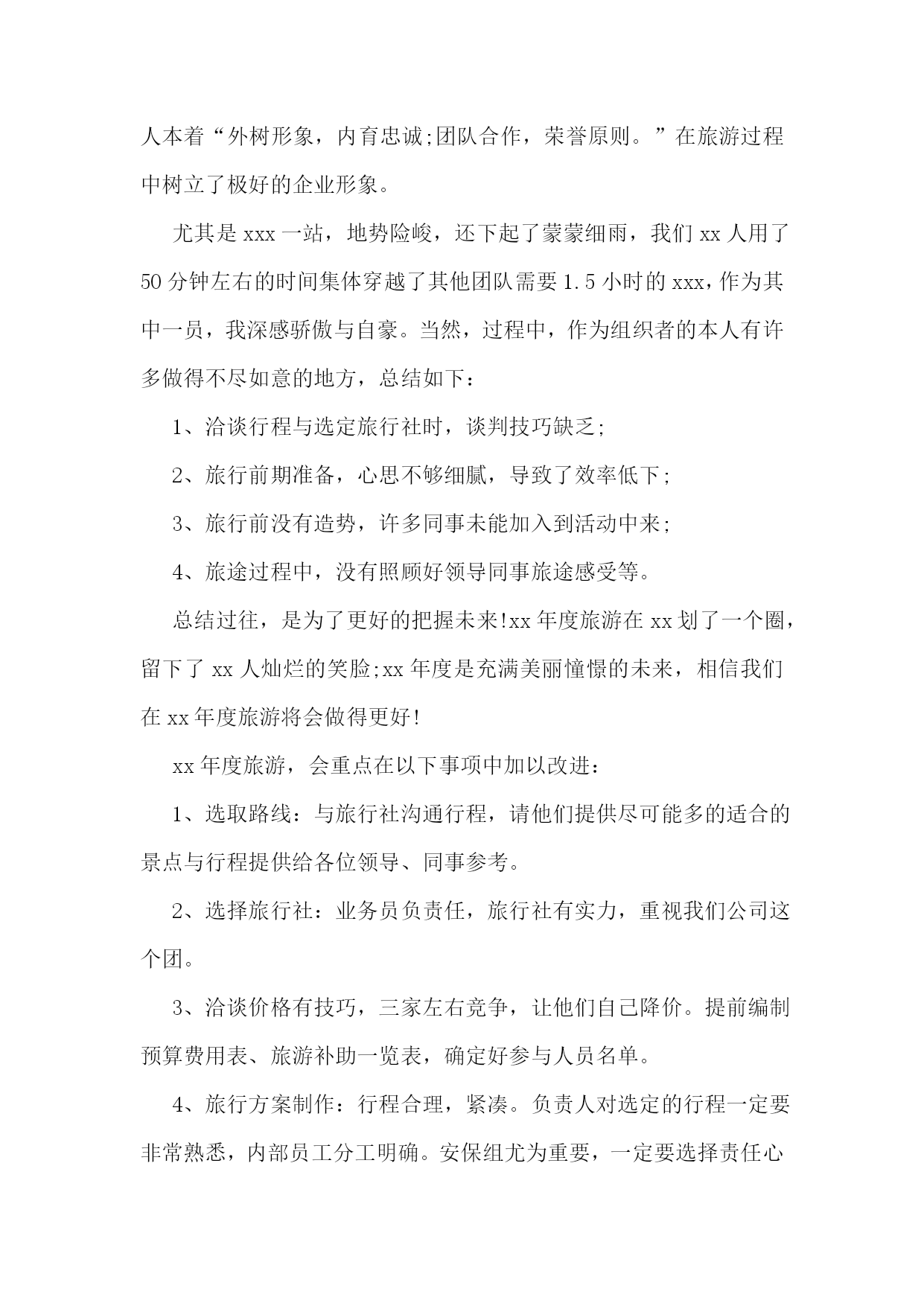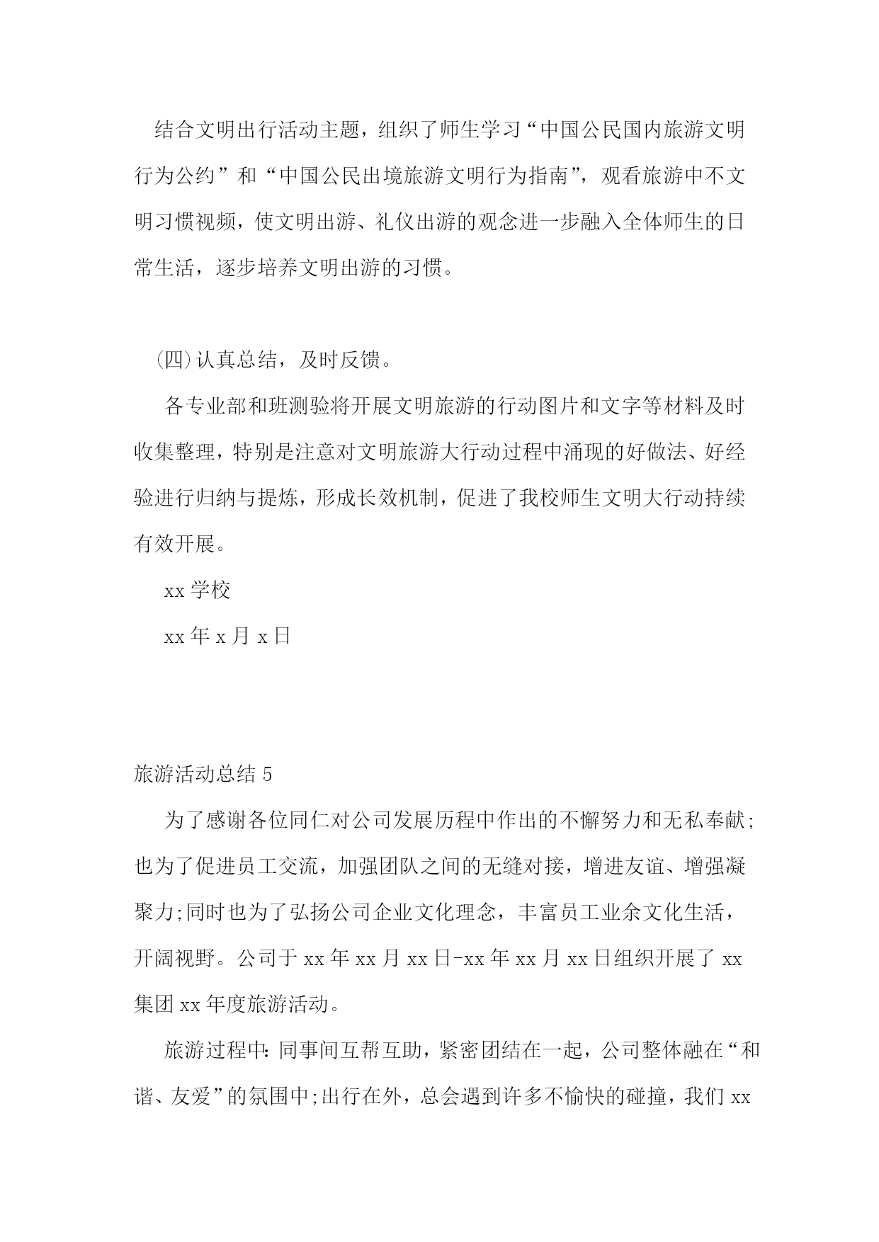 旅游活动总结旅游活动总结1春天是一年中最美的季节,也是踏青的大好时节。4月10日,我校组织三至六年级学生开展了研学旅行活动。活动从组织到实施,计划到位,组织有序,加强安全,注重礼仪,配合密切。本次活动以“走进秦岭憧憬梦想”为主题,通过本次活动,让学生走出课堂,走进社会,丰富了学生的课余生活,拓展学生的知识面,进一步感受大自然之美。培养学生热爱家乡、热爱祖国、热爱大自然的情感。出发前,学校主管领导召开会议就研学旅行活动做了周密的安排,重点强调了活动中的安全、文明礼仪等,并提出了要求。我随后,对本班这次活动做了详细安排:告知家长、安全及礼仪教育、学生自主分组并推选出安全员、安排学生做出行准备。活动地点是秦岭野生动物园,首先组织学生有序坐车,到达目的地,以班为单位组织开展了丰富多彩的参观活动。工作人员热情地接待、详细地介绍,给小学生们上了一堂生动的知识课。孩子们在讲解员的引领下,带着极大的好奇,兴致勃勃的参观了野生动物区、动物博物馆、动物表演、海洋馆,孩子们用手中的相机和纸笔记录着他们所追寻的,从他们可爱的笑脸上可以看到他们的收获和喜悦。通过这次参观活动,不仅丰富了同学们的动物知识,还激发了他们浓厚的求知欲望。参观结束后,学生们恋恋不舍的离开了秦岭野生动物园。4月21日对学生的优秀作品进行了评比展览,并及时给学校上交了孩子们的作品。从孩子们意犹未尽的语言文字里,从一幅幅承载着文明,传播着对大自然的热爱的作品中,看到国家推行“研学旅行”的必要性和实效性。在整个活动中,学生们自觉遵守纪律、注意安全、文明有礼、活动有序、爱护环境、团结友爱,充分体现了康桥小学的良好校风。旅游活动总结2x月7日零晨5:00,公司旅游成员分三个站点集合乘坐大巴车从三角地出发赴山东旅游区域。本次旅游5日游;旅游人员共计3xxxx,其中包括酒店2xxxx;其他成员企业随队人员xxxx;家属人员xxxx。旅游路线主要到达黄岛、青岛、蓬莱、长岛、烟台;参观、游玩1xxxx景点。11号下午18:50旅游全体成员从烟台乘坐飞机直达北京,而后安全回到廊坊,旅游圆满结束。此次活动目的既是让大家身心放松的好机会,又是外出学习的好时机,重要的是在体现出集团对职工关怀的基础上,如何把团队精神融入到活动中,更重要的是营造全体员工团结凝聚、活跃、奋进的氛围。此旅游活动共分几个阶段一、前期准备,制定方案1、根据政策,按照上级关于旅游活动的指示精神,公司工会首先组织各部门经理召开了通报会,并将此次活动的精神、旅游条件以及旅游整体思路向大家做了汇报,各部门经理提出了许多思路,最后,统一了思想和认识,各部门经理一致表示要把活动精神准确传达给职工,并和工会一齐做好思想动员工作。2、出方案,签协议。为了让员工在这次旅游中到达满意度,工会组织者把各部门主管、骨干以及具有丰富旅游经验的员工召集到一齐,针对旅游路线选取、签署协议要领、旅游安全注意事项、具体活动安排等要项进行了细致的研究。按照工作当先、奖励先进、照顾老龄的原则确定了本次旅游活动的人员名单,并由副总经理王来了和保安部经理陈丝丝做领队,负责旅游全程管理,并制定出详细的活动方案并与廊坊市金秋旅行社签署了旅游协议,上报集团。3、行前叮嘱、确保安全。为了保障此次活动顺利进行,x月6日下午,工会组织旅游活动人员召开了行前叮嘱会,总经理王来了做了个性强调:(1)活动时必须要注意我们的企业形象,发扬我们的团队精神、传扬我们的企业文化。别忘了,我们是新奥人,就应知道怎样做。(2)在旅途中,不好私自改变旅程或掉队,外出时不能少于xxxx以上并要与领队请假,随时注意自身安全。(3)用餐、住宿、旅行自己要有警惕,确保人身、财产安全。二、旅游活动精彩缤纷,笑声多多x月7日凌晨4:30分由3xxxx组成的团队在旅途中笑声不断,热闹氛围激昂,导游感慨万分;随队人员倾羡的心悦诚服;家属人员激动不已,带给年轻人是一片欢乐;带给大家的是团结、互助、凝聚,营造了有青春、活力的氛围。更多的则是各种各样的收获,体现的则是酒店良好的团队精神。曾现出几多笑声:笑声一:拉歌对唱、结成语x月7日,天边刚刚放亮,旅行队伍便浩浩荡荡出发了。8:30分,领队的笑话撩拨起了大家的兴致,于是,按耐不住寂寞的年轻人便争先恐后的拉歌对唱起来。王总经理提议:以车中段为分界线,分左队与右队两组进行对歌、结成语,首先全体成员起立合唱新奥之歌,激烈的对歌比赛便开始了。左队,来一个;来一个,左队。右队,来一个;来一个,右队……,顿时,高呼声、洪亮的歌声、掌声不断,笑话、歌唱、戏曲、故事、对歌、结成语等载体不一,热闹非凡,激情澎湃,整个车厢成了欢乐的海洋。还别说,五音不全的领队陈丝丝这天还成了内秀儿,发音挺准。随队导游对我们队伍激情氛围所感染,本不高兴的她不由自主参