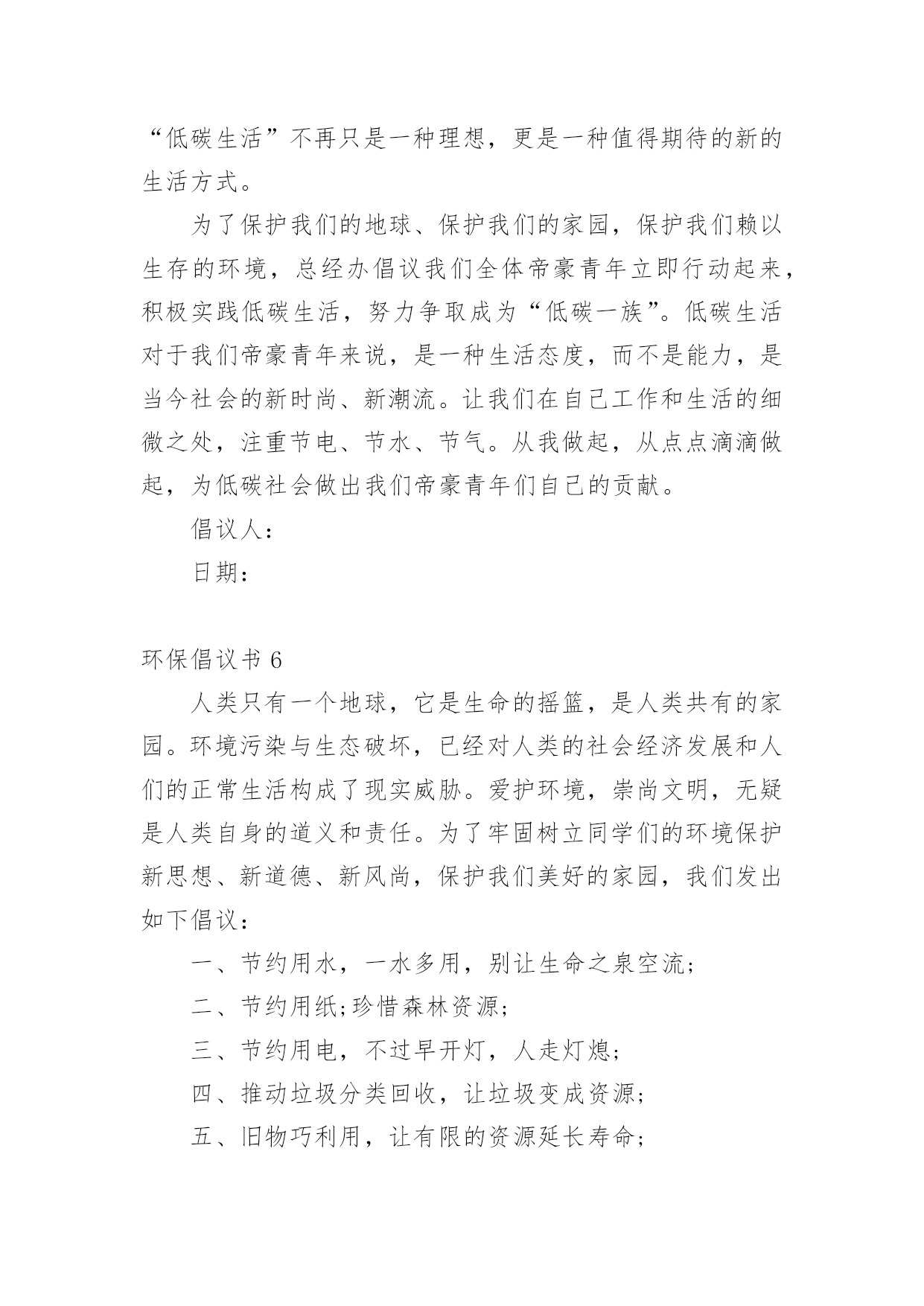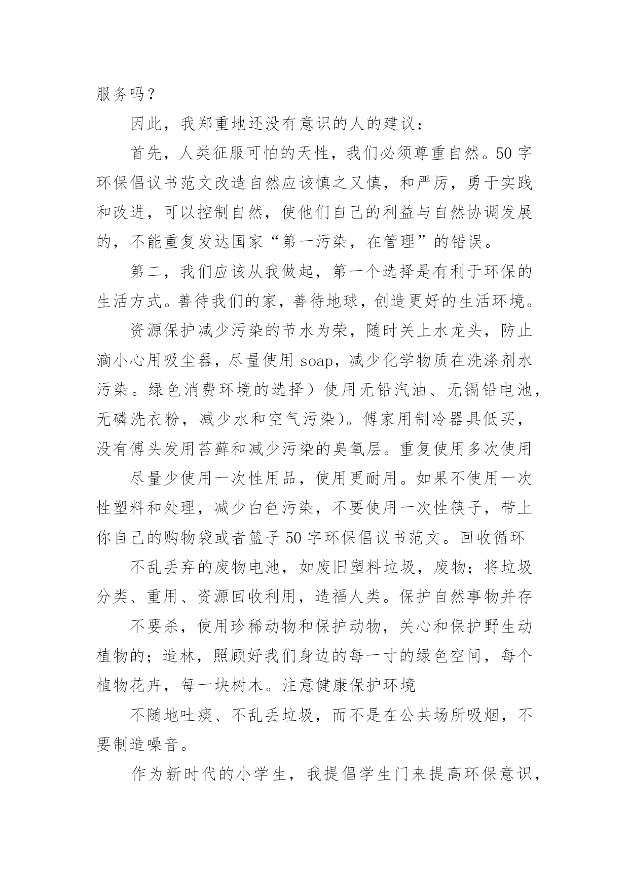 环保倡议书【热】环保倡议书在学习、工作生活中,我们可以使用倡议书的机会越来越多,倡议书具有公开性的特征,是一种广而告之的书信。那么问题来了,到底应如何写一份恰当的倡议书呢?下面是小编为大家整理的环保倡议书,希望对大家有所帮助。环保倡议书1市长xx:今天是非常发达的地球,尽管环境条件看起来很乐观,但也有非常显著的隐患,这是人类制造出来的,:肆意砍伐树木和修建一座化工厂,排放的有害液体。“对人类的威胁更大的气体,世界年度排放超过6亿吨的……估计当中去下一个世纪,地球表面有三分之一面临危险的土地荒漠化,每年6平方公里的土地荒漠化,威胁到60多个国家……“看这组尖叫号码,人类,你感觉如何?从2300万年到1800万年前出现的森林古猿直到现在人类的高度发达的文明时代,为每个人从不停下来休息,自然是“需求”,这更开发人们的贪婪。一个例子:中国的木兰流,在50年代,这是一个明确的河,但现在它已经灭绝的鱼和虾和肮脏的河流,和我们的地球母亲更添一个疤痕。这,不是为了人类严重是一个叫醒服务吗?因此,我郑重地还没有意识的人的建议:首先,人类征服可怕的天性,我们必须尊重自然。50字环保倡议书范文改造自然应该慎之又慎,和严厉,勇于实践和改进,可以控制自然,使他们自己的利益与自然协调发展的,不能重复发达国家“第一污染,在管理”的错误。第二,我们应该从我做起,第一个选择是有利于环保的生活方式。善待我们的家,善待地球,创造更好的生活环境。资源保护减少污染的节水为荣,随时关上水龙头,防止滴小心用吸尘器,尽量使用soap,减少化学物质在洗涤剂水污染。绿色消费环境的选择)使用无铅汽油、无镉铅电池,无磷洗衣粉,减少水和空气污染)。傅家用制冷器具低买,没有傅头发用苔藓和减少污染的臭氧层。重复使用多次使用尽量少使用一次性用品,使用更耐用。如果不使用一次性塑料和处理,减少白色污染,不要使用一次性筷子,带上你自己的购物袋或者篮子50字环保倡议书范文。回收循环不乱丢弃的废物电池,如废旧塑料垃圾,废物;将垃圾分类、重用、资源回收利用,造福人类。保护自然事物并存不要杀,使用珍稀动物和保护动物,关心和保护野生动植物的;造林,照顾好我们身边的每一寸的绿色空间,每个植物花卉,每一块树木。注意健康保护环境不随地吐痰、不乱丢垃圾,而不是在公共场所吸烟,不要制造噪音。作为新时代的小学生,我提倡学生门来提高环保意识,还暗示的叔叔阿姨们加入我们的团队,为保护环境,造福子孙后代的贡献力量。因为:保护环境,拖延!倡议人:xxx20xx年x月x日环保倡议书2亲爱的人们:你好,我们曾经一起生活在蓝天下,有美丽的花和鸟,有新鲜的空气。然而,我们不断开工厂,砍伐树木,这使得我们的地球母亲遭受越来越多的伤害。以前我们在河里自由游泳,现在因为工厂越来越多,排放的污水越来越多,更可气的是工厂排放的污水缺乏处理。结果,大面积的河水被污染了。现在,很少有人在河里游泳。你猜怎么着我们的水龙头,关不紧,好像是一滴一滴的,但是一凑到一起,就是成吨的水。为了防止我们的生活环境变得更糟,我提议:1.节约用水,冲洗后的水可以重新用于冲厕所;2.水龙头漏水时,应及时修理和更换;3.少用一次性物品,减少砍伐树木;4.不随地吐痰,保持环境清洁;5、不要使用塑料袋,多使用环保袋;6.废旧电池应放入电池回收箱,或收集废纸等物品进行回收;7.尽量少开车多走路,既能锻炼身体,又能减少尾气排放。为了我们未来美好的家园,让我们一起保护环境!环保倡议书3每年中秋节,都会有大批游客和群众前来遮浪奇观景区观海、听涛、赏月。欢度佳节期间,乱扔垃圾、随意烧烤、燃放烟花爆竹等行为时有发生,给景区管理和环境保护带来不少问题。为保护好难得的滨海资源,弘扬传统文化、树立文明新风,引导全区人民群众过一个温馨、节俭、文明、和谐的中秋佳节,团团君特向广大游客和群众提出以下倡议:01讲文明,我做起,确保垃圾不落地。让“垃圾不落地”成为我们的自觉行动,不乱扔垃圾、果皮、纸屑,不随地吐痰,让景区保持干净卫生,让心情保持舒畅美丽。食物吃完或烧烤结束后,用塑料袋装好扔进垃圾桶里或随手把垃圾装袋带走。02讲文明,共传递,减少烟花更美丽。请大家奔走相告,为了保护美丽的沙滩,景区内严禁燃放烟花炮竹和孔明灯,当然也严禁烧烤。在景区外的`区域也请大家尽量减少烟花炮竹、孔明灯燃放,减少炮竹垃圾产生,对空气的污染,让我们呼吸清新空气。环保倡议书4亲爱的同学们,老师们:还记得刚刚过去的植树节吗?你们知道植树的重要吗?是的,树木不仅可以美化我们的环境,最重要的是它还能吸进大量的二氧化碳,吐出我们需要的氧气,是我们人类的好朋友。可是,这些“城市清洁员”们在无私奉献的同时,却也曾经或正在遭受着摧残。自上世纪以来,工业迅速地发展,让人们把眼光都停留在了经济上,为了获取利益,锯子一步步地逼近原始森林,