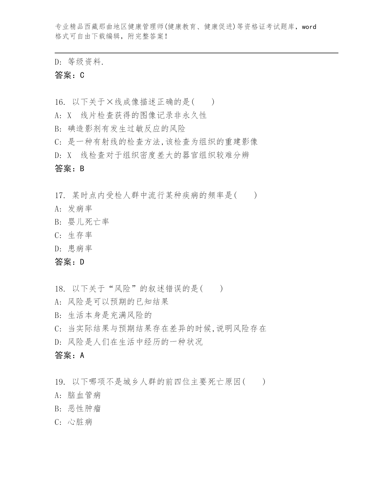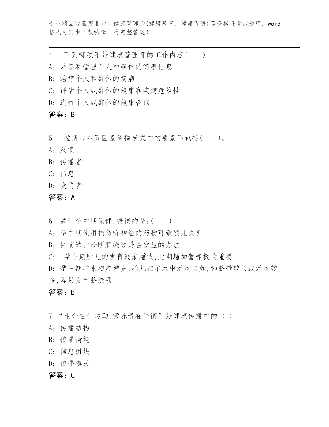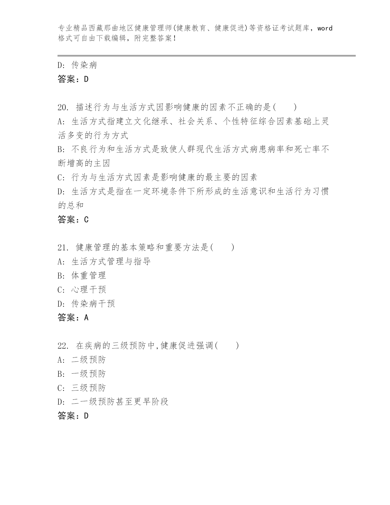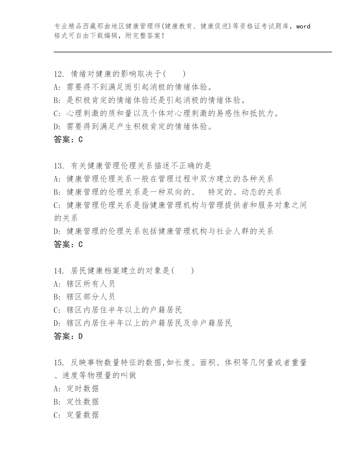 精品西藏那曲地区健康管理师(健康教育、健康促进)等资格证考试优选题库汇编.docx