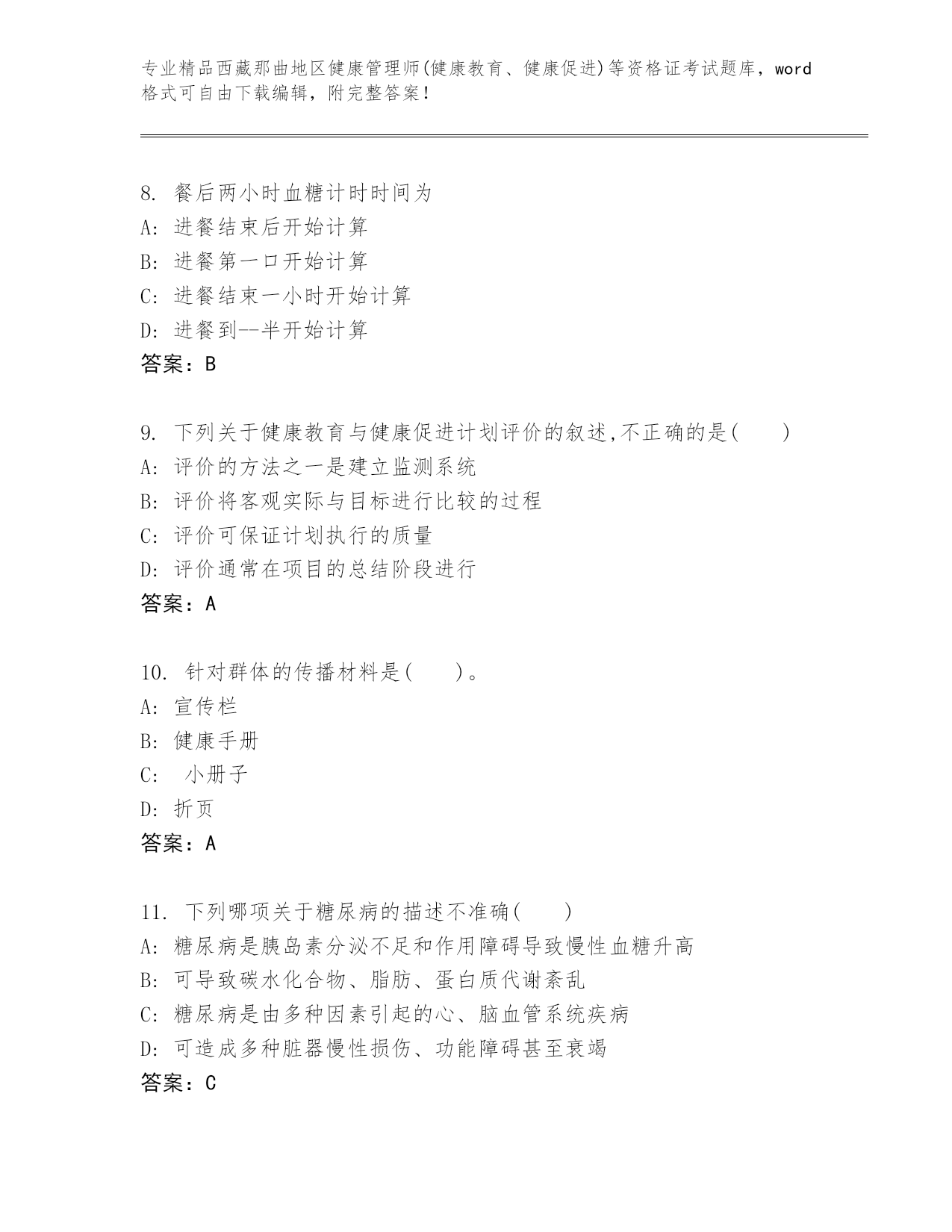 精品西藏那曲地区健康管理师(健康教育、健康促进)等资格证考试优选题库汇编