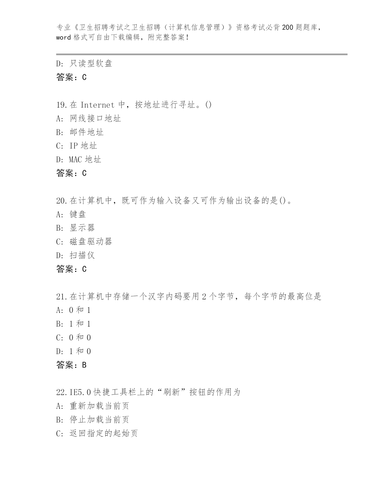 2024安徽省《卫生招聘考试之卫生招聘(计算机信息管理)》资格考试必背200题内部题库(各地真题)