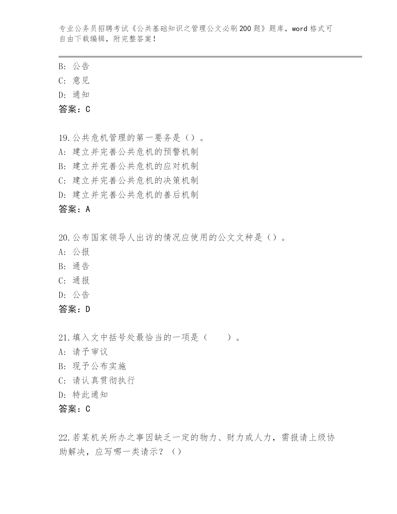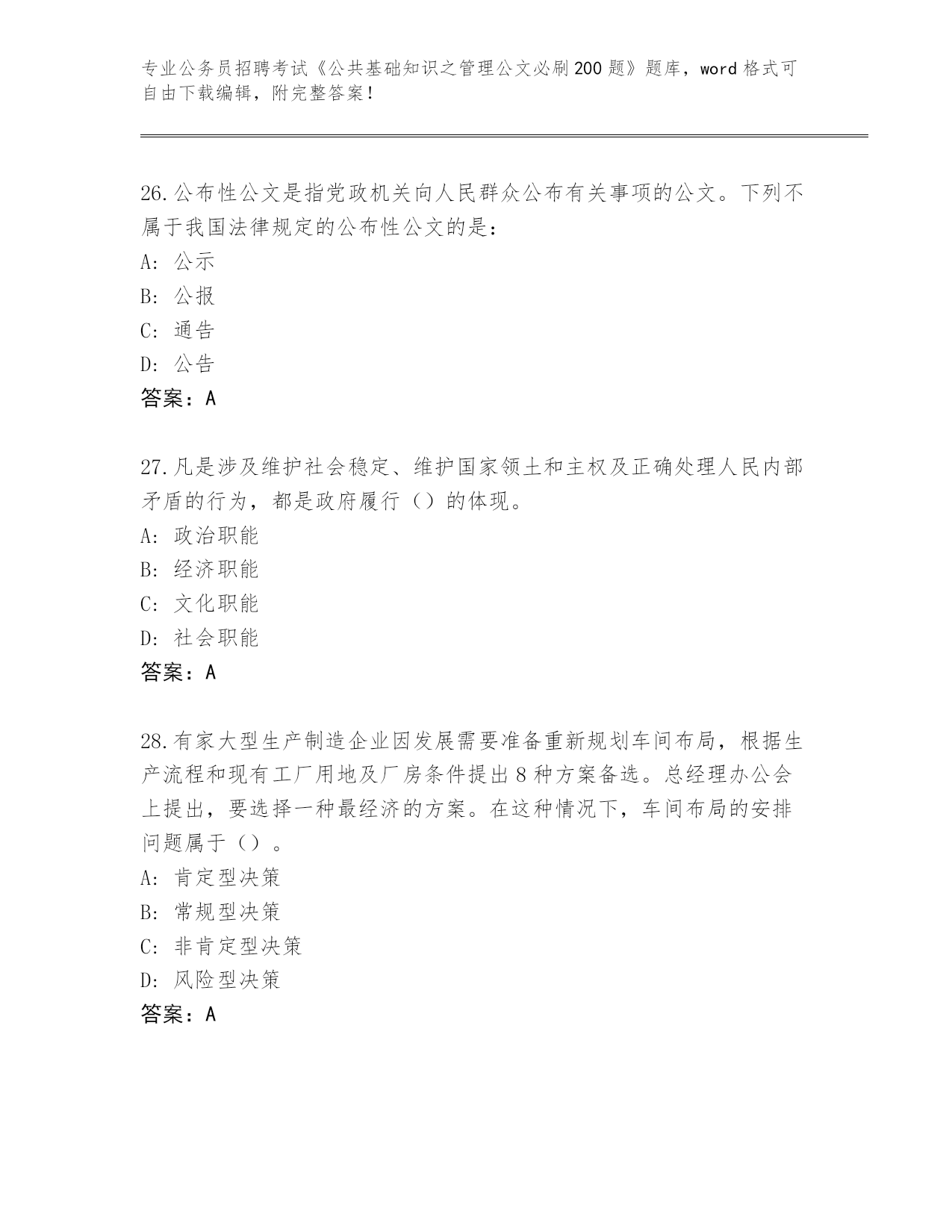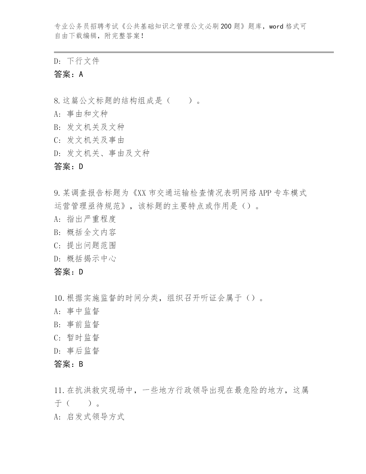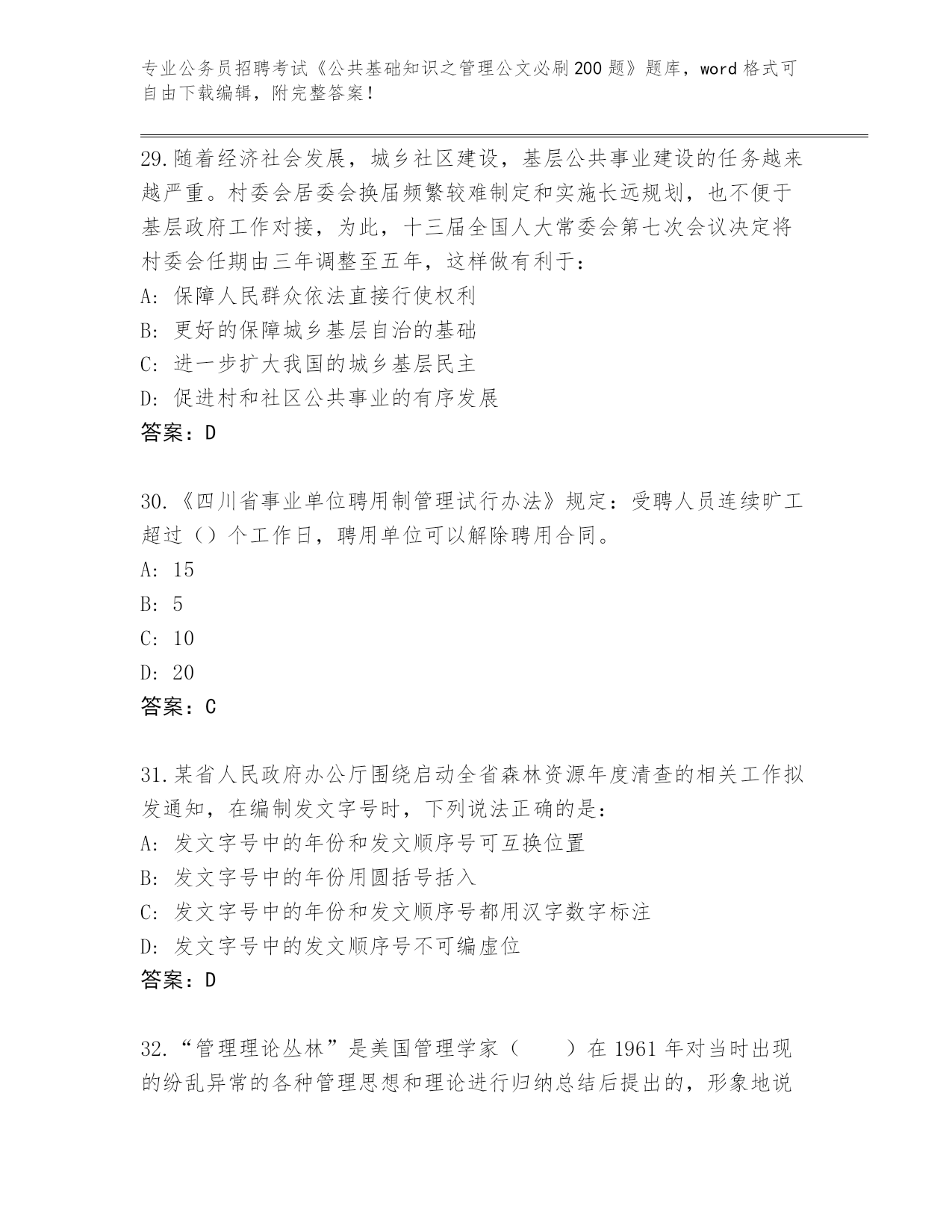吉林省公务员招聘考试《公共基础知识之管理公文必刷200题》完整版【精练】