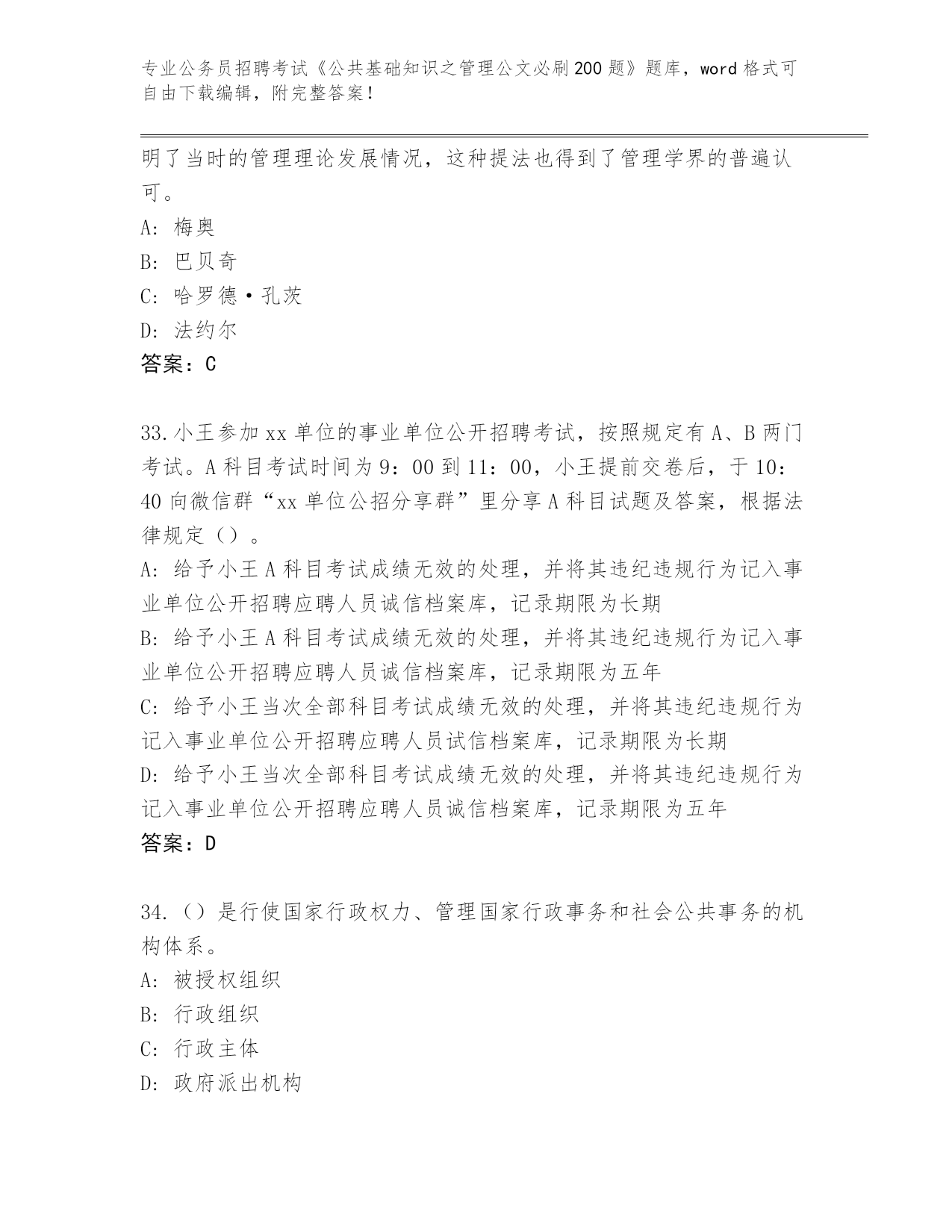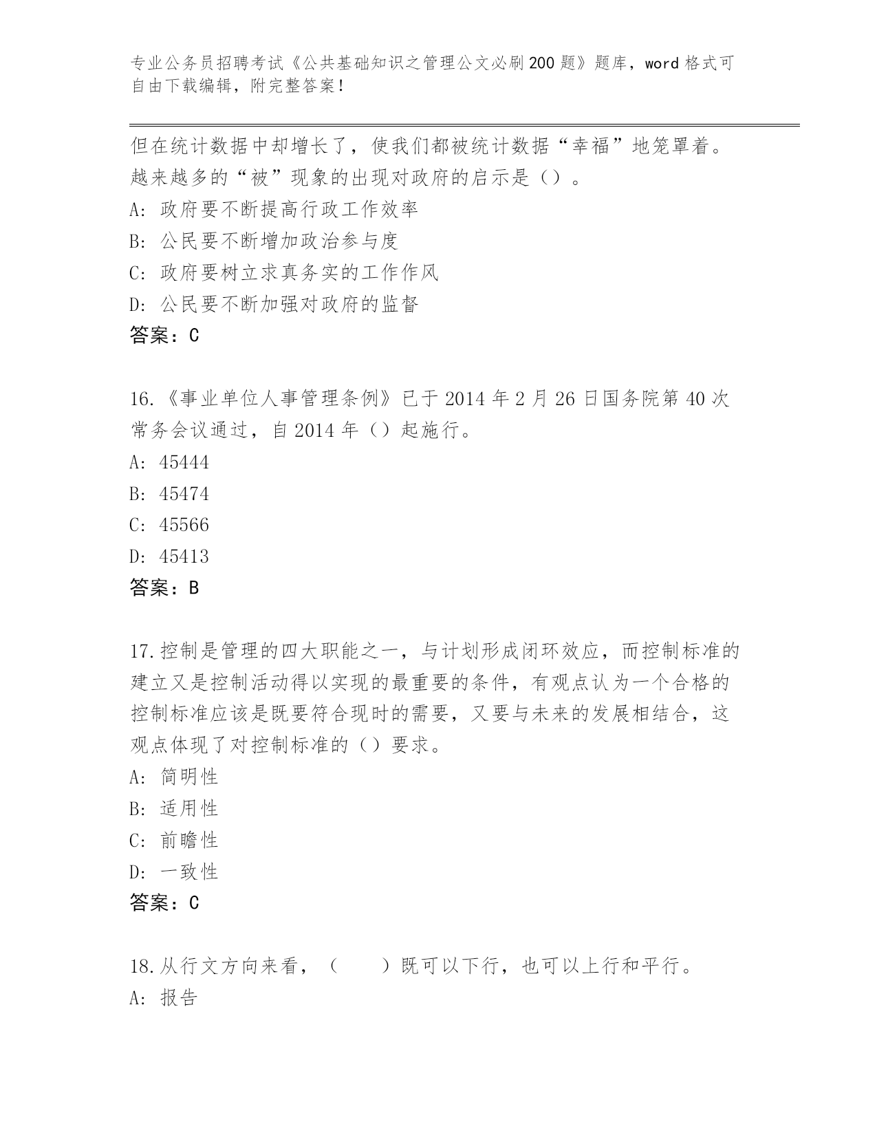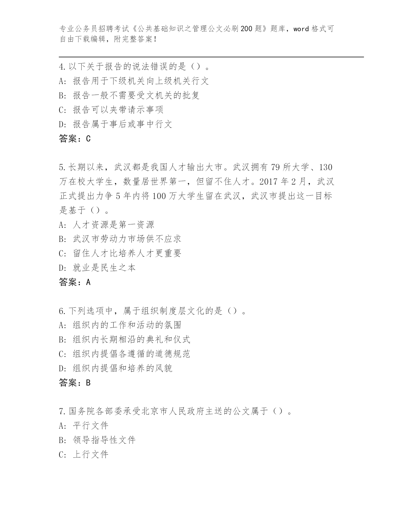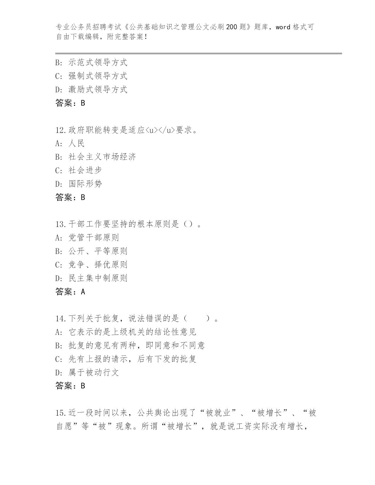 吉林省公务员招聘考试《公共基础知识之管理公文必刷200题》完整版【精练】