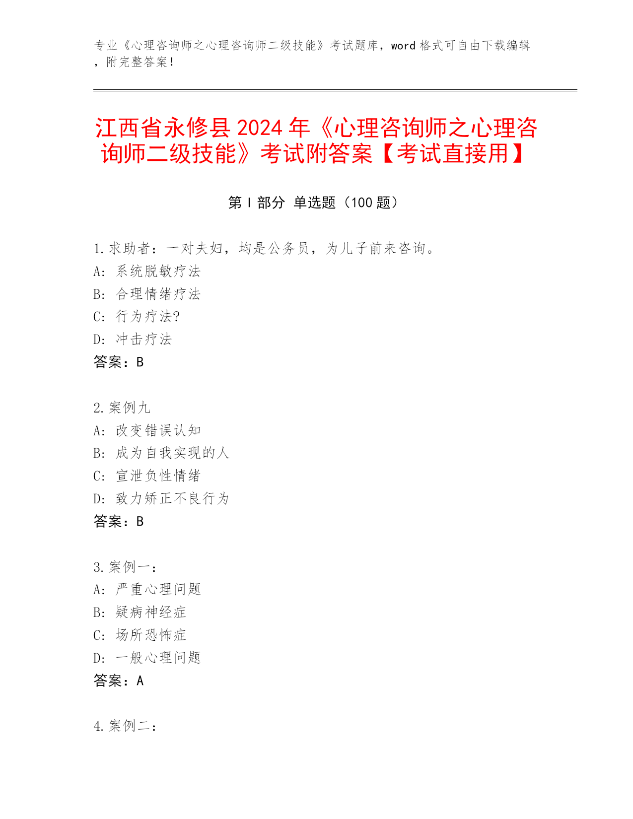 江西省永修县2024年《心理咨询师之心理咨询师二级技能》考试附答案【考试直接用】