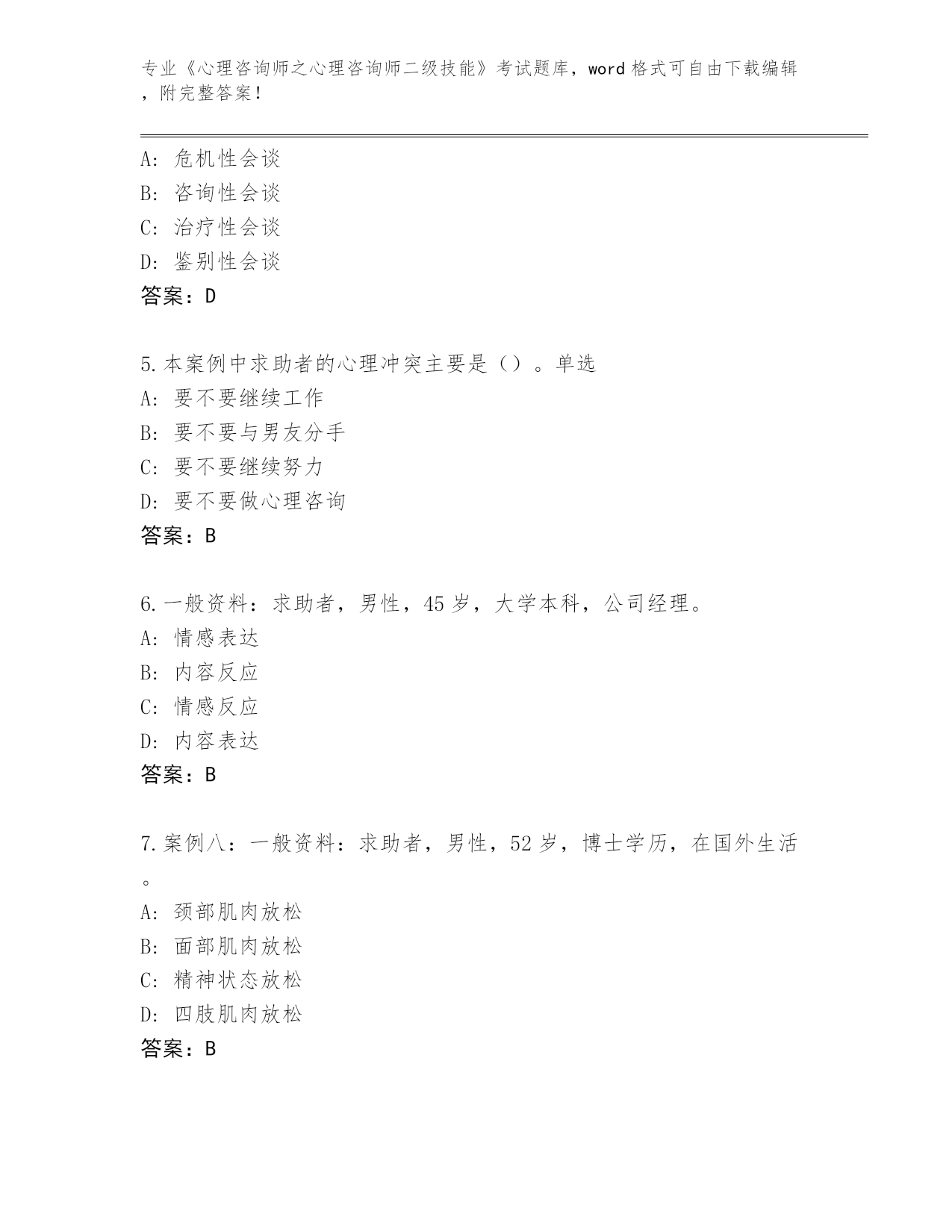 2024年甘肃省《心理咨询师之心理咨询师二级技能》考试内部题库附答案【考试直接用】