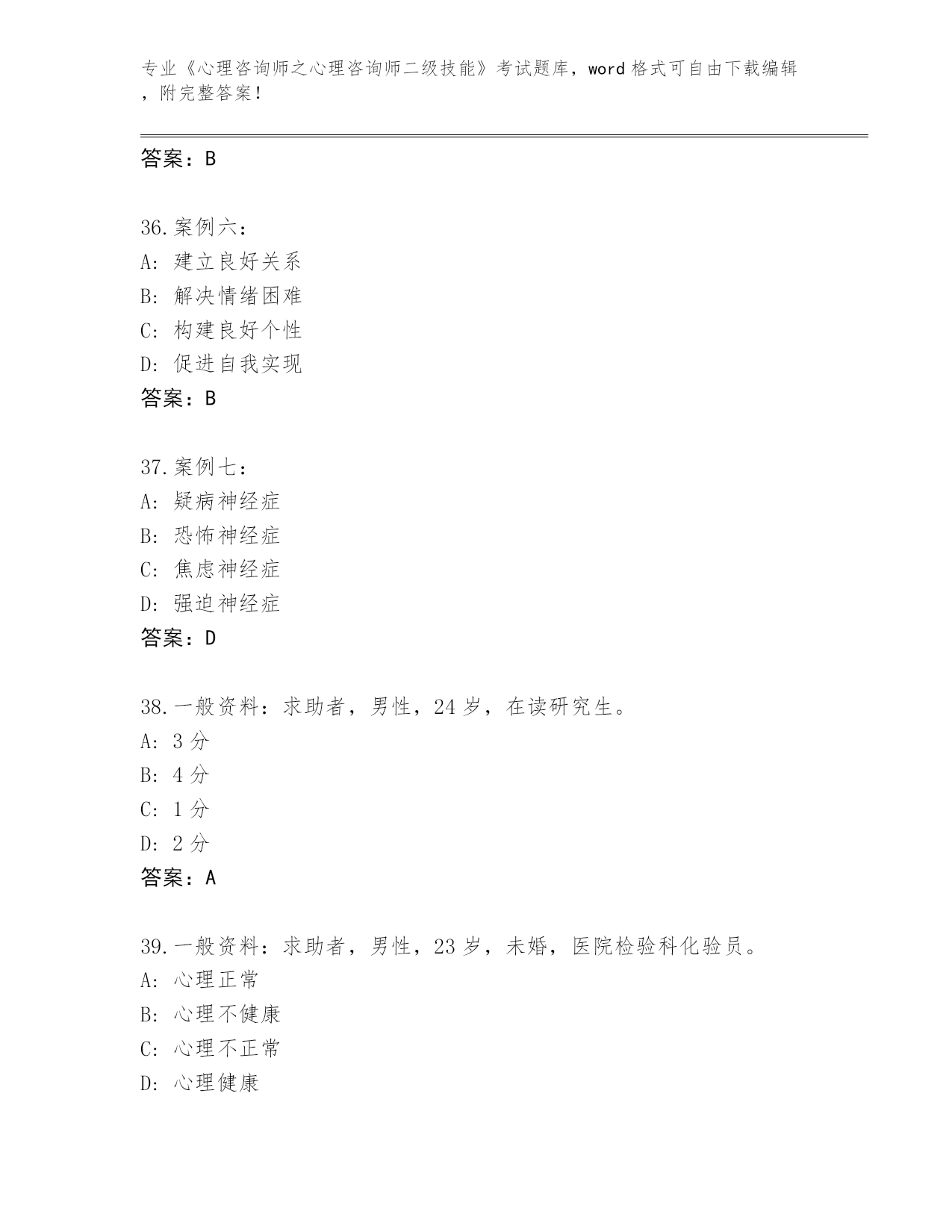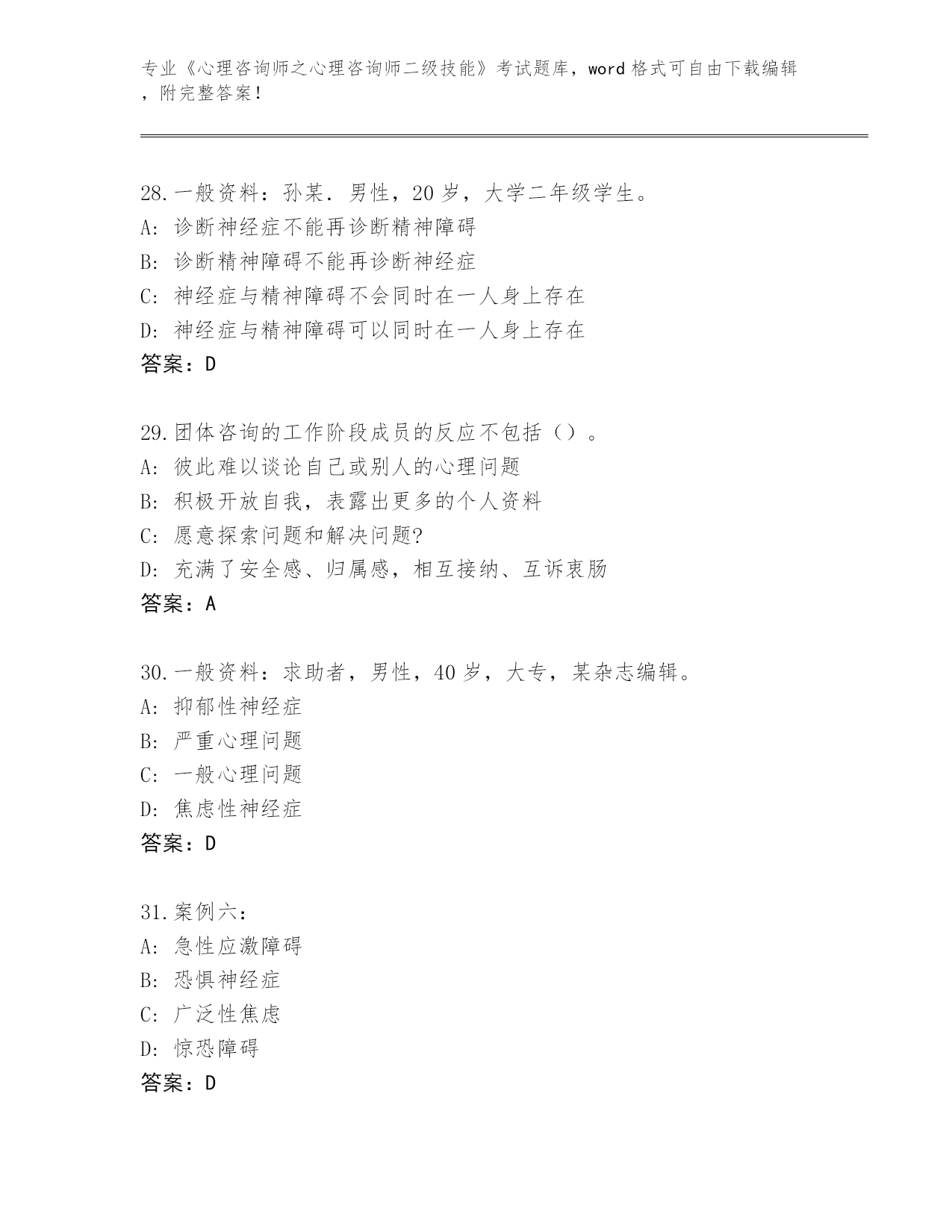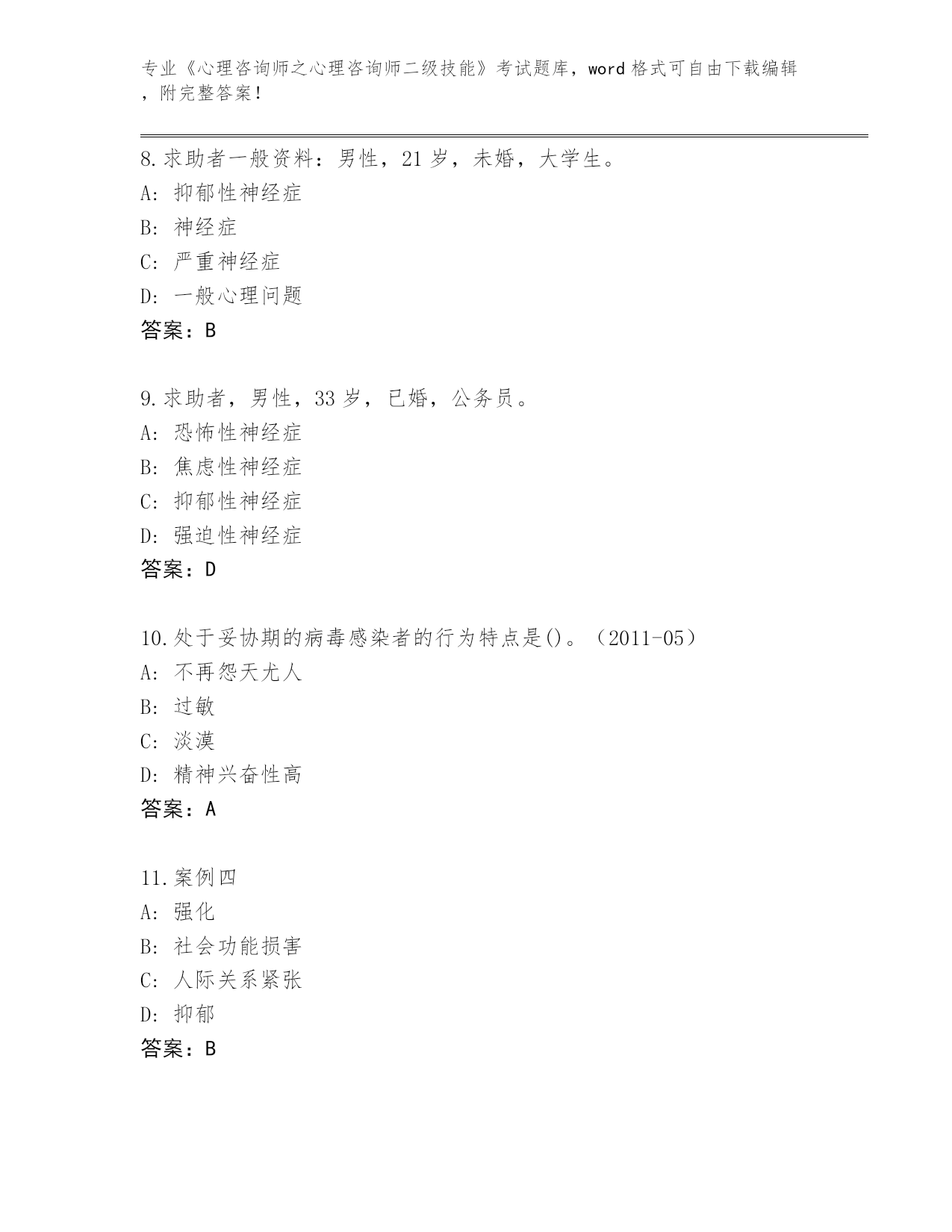 河南省《心理咨询师之心理咨询师二级技能》考试必考200题大全附答案(考试直接用)