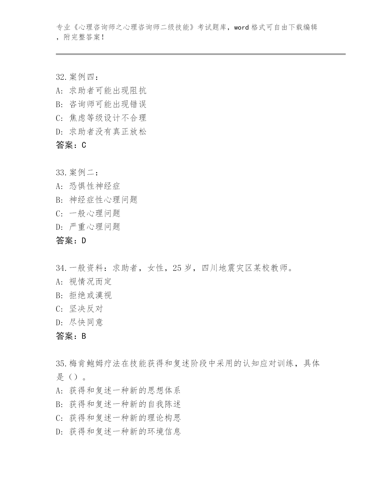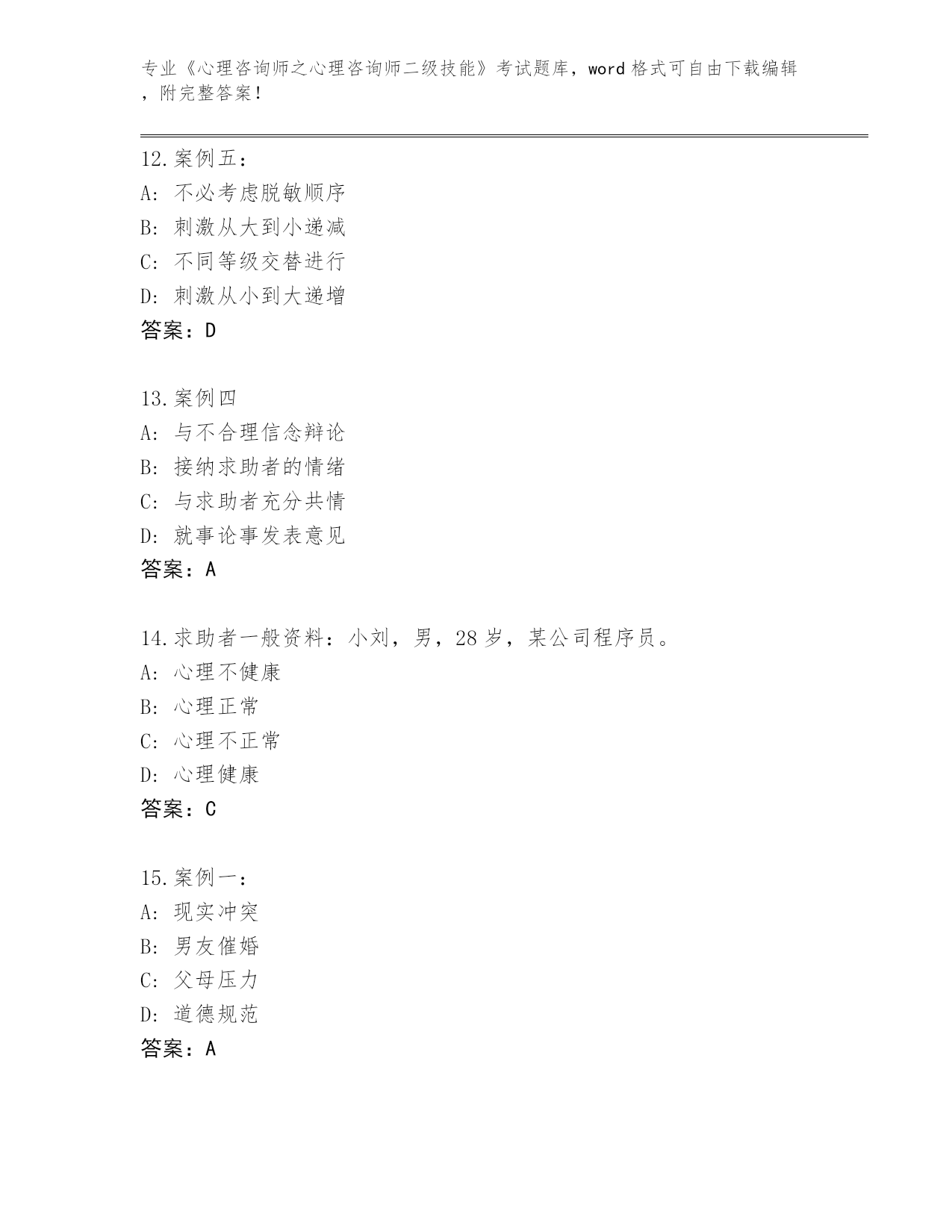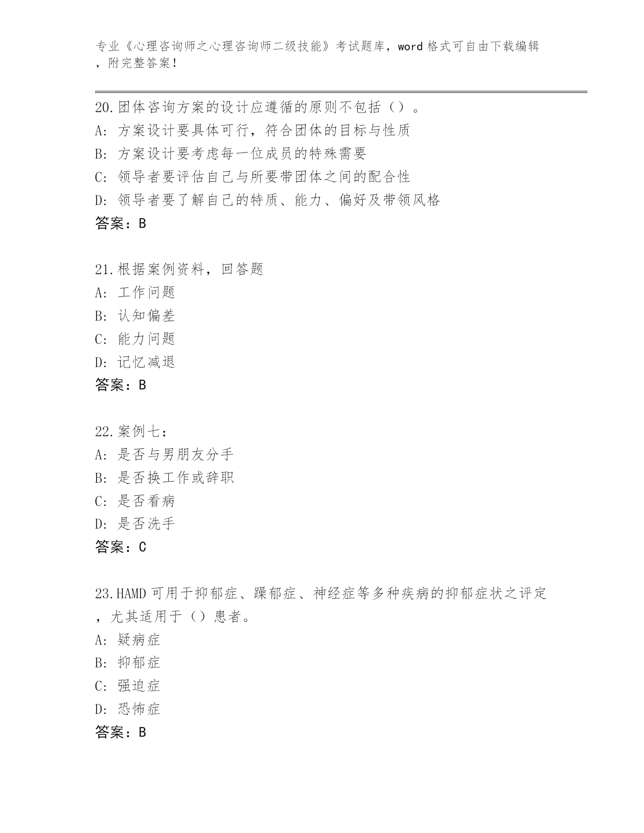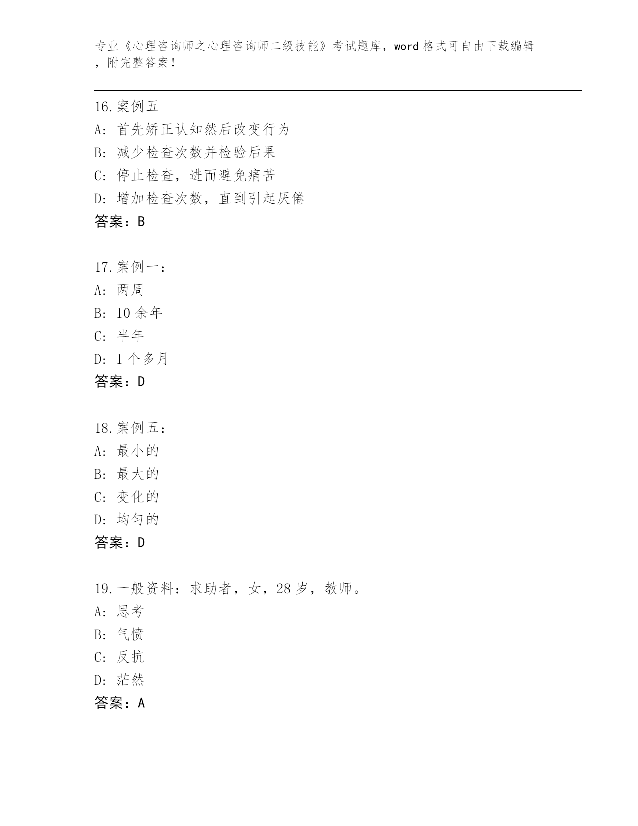 内部使用江西省永修县《心理咨询师之心理咨询师二级技能》资格考试及下载答案