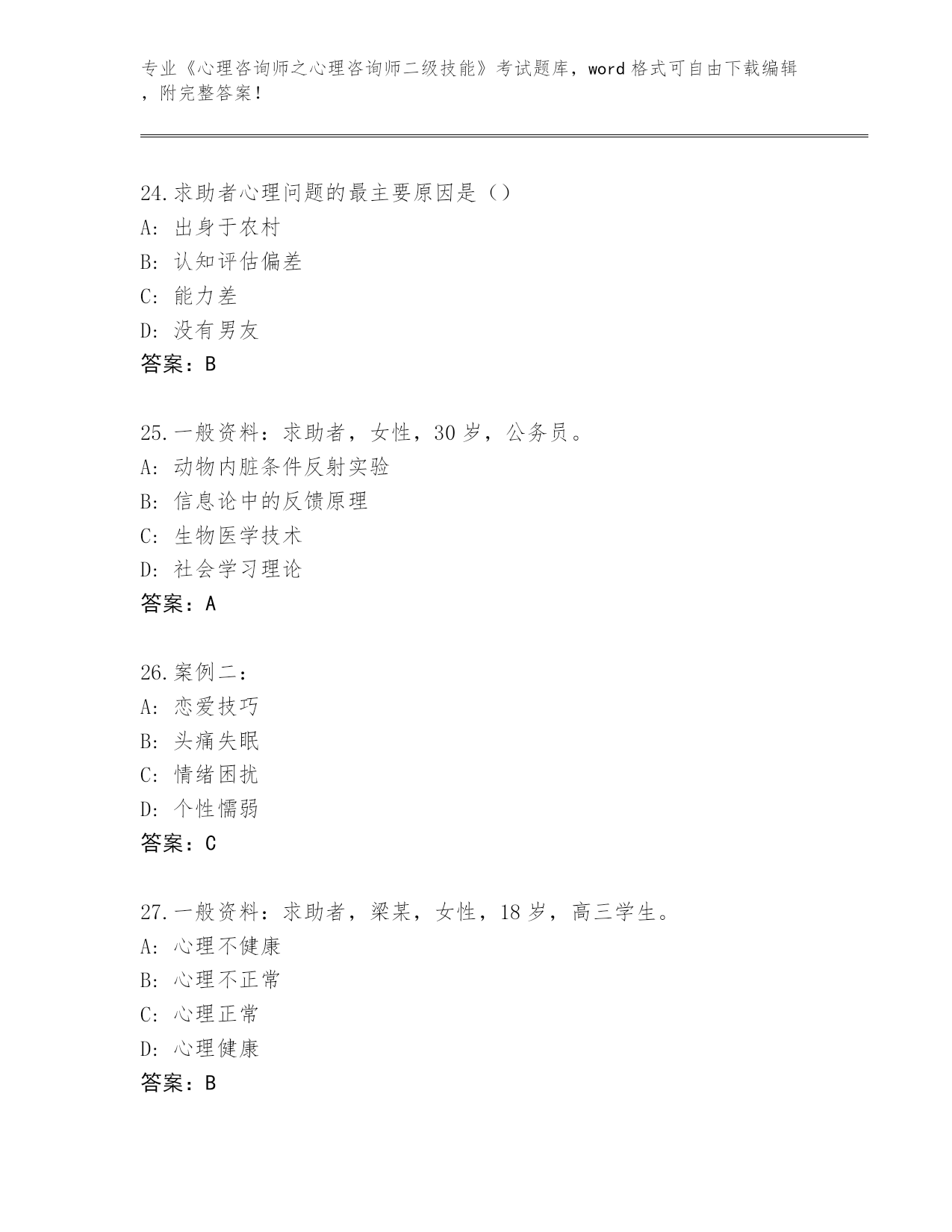 2024年江西省浔阳区《心理咨询师之心理咨询师二级技能》考试王牌题库含答案(考试直接用)