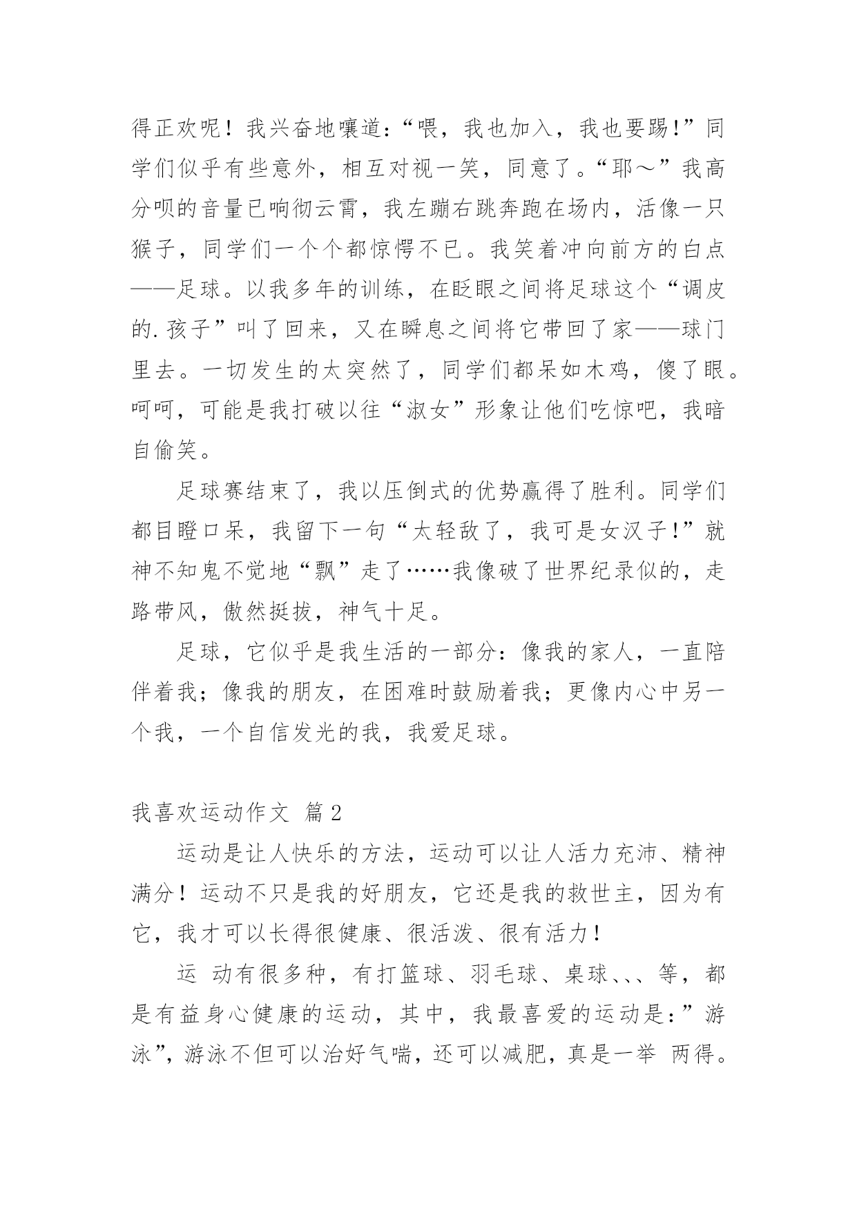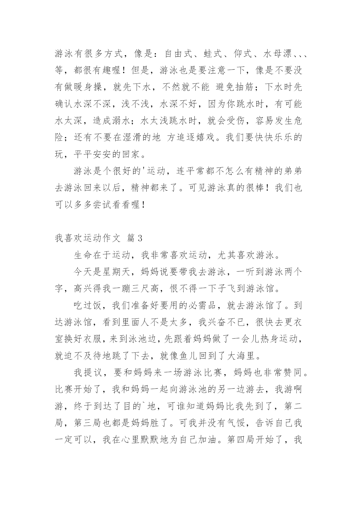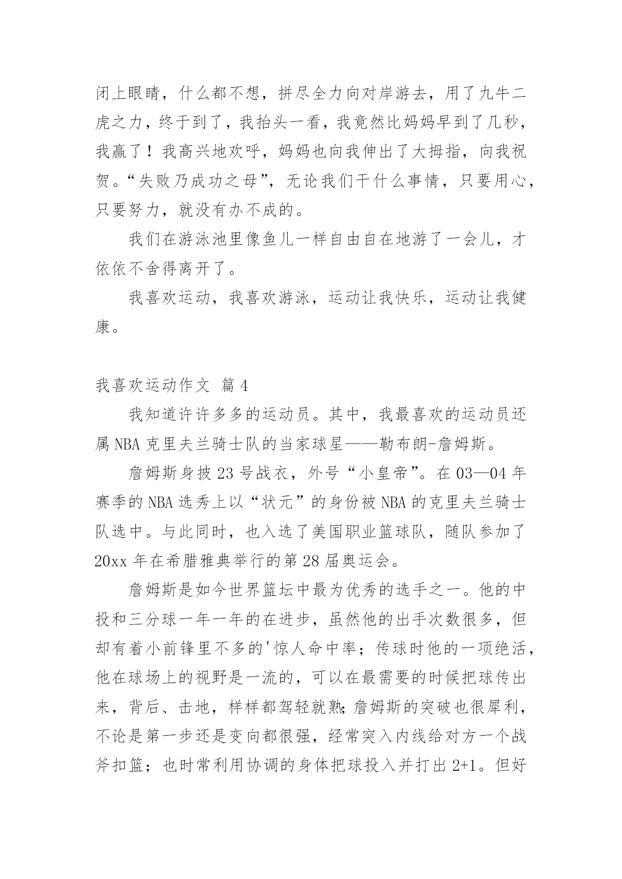 我喜欢运动作文实用的我喜欢运动作文4篇在平日的学习、工作和生活里,大家都尝试过写作文吧,作文是人们把记忆中所存储的有关知识、经验和思想用书面形式表达出来的记叙方式。作文的注意事项有许多,你确定会写吗?下面是小编帮大家整理的我喜欢运动作文4篇,希望能够帮助到大家。我喜欢运动作文篇1“哇,一个漂亮的大脚,球进了!”大家应该很熟悉这个台词吧,是的,就是足球赛。我一个“体育白痴”,却偏偏爱上了这个东西。你说奇不奇怪?其实呀,我与足球可有着许多的缘分呢!我爸爸可是个球迷,在我小时候,他常常拉着我的小手,一同看一场又一场足球赛,年幼无知的我感到十分的新奇。慢慢地,当我再一次望向足球赛场时,我竟然崇拜起那些高大的球员,仰慕起他们高超的球技,还默默地下决心:我一定要超越他们!父亲知道我的想法非常兴奋,像打了鸡血似的,拉着我抱着球就向球场奔去……很快,足球就成了我生命中不可缺少的一部分,我也就爱上了这个白白胖胖的小伙子——足球。这不,一个圆滚滚的小胖子又出现在我的视线里。我不管三七二十一,以百米冲刺的速度冲下楼去。一群同学球踢得正欢呢!我兴奋地嚷道:“喂,我也加入,我也要踢!”同学们似乎有些意外,相互对视一笑,同意了。“耶~”我高分呗的音量已响彻云霄,我左蹦右跳奔跑在场内,活像一只猴子,同学们一个个都惊愕不已。我笑着冲向前方的白点——足球。以我多年的训练,在眨眼之间将足球这个“调皮的.孩子”叫了回来,又在瞬息之间将它带回了家——球门里去。一切发生的太突然了,同学们都呆如木鸡,傻了眼。呵呵,可能是我打破以往“淑女”形象让他们吃惊吧,我暗自偷笑。足球赛结束了,我以压倒式的优势赢得了胜利。同学们都目瞪口呆,我留下一句“太轻敌了,我可是女汉子!”就神不知鬼不觉地“飘”走了……我像破了世界纪录似的,走路带风,傲然挺拔,神气十足。足球,它似乎是我生活的一部分:像我的家人,一直陪伴着我;像我的朋友,在困难时鼓励着我;更像内心中另一个我,一个自信发光的我,我爱足球。我喜欢运动作文篇2运动是让人快乐的方法,运动可以让人活力充沛、精神满分!运动不只是我的好朋友,它还是我的救世主,因为有它,我才可以长得很健康、很活泼、很有活力!运动有很多种,有打篮球、羽毛球、桌球、、、等,都是有益身心健康的运动,其中,我最喜爱的运动是:”游泳”,游泳不但可以治好气喘,还可以减肥,真是一举两得。游泳有很多方式,像是:自由式、蛙式、仰式、水母漂、、、等,都很有趣喔!但是,游泳也是要注意一下,像是不要没有做暖身操,就先下水,不然就不能避免抽筋;下水时先确认水深不深,浅不浅,水深不好,因为你跳水时,有可能水太深,造成溺水;水太浅跳水时,就会受伤,容易发生危险;还有不要在湿滑的地方追逐嬉戏。我们要快快乐乐的玩,平平安安的回家。游泳是个很好的'运动,连平常都不怎么有精神的弟弟去游泳回来以后,精神都来了。可见游泳真的很棒!我们也可以多多尝试看看喔!我喜欢运动作文篇3生命在于运动,我非常喜欢运动,尤其喜欢游泳。今天是星期天,妈妈说要带我去游泳,一听到游泳两个字,高兴得我一蹦三尺高,恨不得一下子飞到游泳馆。吃过饭,我们准备好要用的必需品,就去游泳馆了。到达游泳馆,看到里面人不是太多,我兴奋不已,很快去更衣室换好衣服,来到泳池边,先跟着妈妈做了一会儿热身运动,就迫不及待地跳了下去,就像鱼儿回到了大海里。我提议,要和妈妈来一场游泳比赛,妈妈也非常赞同。比赛开始了,我和妈妈一起向游泳池的另一边游去,我游啊游,终于到达了目的`地,可谁知道妈妈比我先到了,第二局,第三局也都是妈妈胜了。可我并没有气馁,告诉自己我一定可以,我在心里默默地为自己加油。第四局开始了,我闭上眼睛,什么都不想,拼尽全力向对岸游去,用了九牛二虎之力,终于到了,我抬头一看,我竟然比妈妈早到了几秒,我赢了!我高兴地欢呼,妈妈也向我伸出了大拇指,向我祝贺。“失败乃成功之母”,无论我们干什么事情,只要用心,只要努力,就没有办不成的。我们在游泳池里像鱼儿一样自由自在地游了一会儿,才依依不舍得离开了。我喜欢运动,我喜欢游泳,运动让我快乐,运动让我健康。我喜欢运动作文篇4我知道许许多多的运动员。其中,我最喜欢的运动员还属NBA克里夫兰骑士队的当家球星——勒布朗-詹姆斯。詹姆斯身披23号战衣,外号“小皇帝”。在03—04年赛季的NBA选秀上以“状元”的身份被NBA的克里夫兰骑士队选中。与此同时,也入选了美国职业篮球队,随队参加了20xx年在希腊雅典举行的第28届奥运会。詹姆斯是如今世界篮坛中最为优秀的选手之一。他的中投和三分球一年一年的在进步,虽然他的出手次数很多,但却有着小前锋里不多的'惊人命中率;传球时他的一项绝活,他在球场上的视野是一流的,可以在最需要的时候把球传出来,背后、击地,样样都驾轻就熟;詹姆斯的突破也很犀利,不论是第一步还是变向都很强