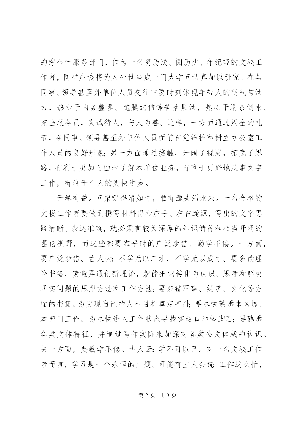 第PAGE\*Arabic\*MERGEFORMAT3页共NUMPAGES\*MERGEFORMAT3页公务员办公室工作心得用心。认真只能合格,用心才会优秀。用心做事,不只是简单地、机械地去做,而是用自己的真心、诚心、良心去做。成功者和失败者的区别就在于:成功者无论做什么工作,都会积极主动、用心完成,并力求达到最佳的效果,不会有丝毫的放松与懈怠;失败者则往往相反,在做工作时,常常轻率敷衍、得过且过。很长一段时间,我是一个习惯马虎的人,在上学时得到老师最多的评语就是缺少认真的精神、端正的态度,说到底就是做事不用心,凡事喜欢率性而为。为此,我走了不少弯路,也遇到几回挫折,在吃过几堑之后,终于长了一智用心做事。参加工作后,我一直在刻意保持这种作风,让用心成为习惯、成为自然。细心。老子曾经说过。天下难事,必做于易;天下大事,必做于细,这句话精辟地指出了要想成就一番大的事业,必须从最简单的事情做起,从细微之处着手。公文较之于其它文体,逻辑上讲究环环相扣,语言上注重简明扼要,主旨上更为开门见山,文风上倾向严肃庄重。撰写这样的文章,我们一定要不厌其轻、不厌其小、不厌其烦,抱着如临深渊、如履薄冰的谨慎态度,在行文时处处细心、字字留意,努力追求零差错,确保万无一失。只有这样,才能让领导满意、让阅读者满意,也才能维护党政机关应有的权威。热心。世事洞明皆学问,人情练达亦文章。身处办公室这样的综合性服务部门,作为一名资历浅、阅历少、年纪轻的文秘工作者,同样应该将为人处世当成一门大学问认真加以研究。在与同事、领导甚至外单位人员交往中要时刻体现年轻人的朝气与活力,热心于内务整理、跑腿送信等苦活累活,热心于端茶倒水、充当服务员,真诚待人,与人为善。这样,一方面通过周全的礼节,在同事、领导甚至外单位人员面前自觉维护和树立办公室工作人员的良好形象;另一方面通过接触,开阔了视野,拓宽了思路,有利于更加全面地了解本单位业务,有利于更好地从事文字工作,有利于个人的更快进步。开卷有益。问渠哪得清如许,惟有源头活水来。一名合格的文秘工作者要做到撰写材料得心应手、左右逢源,写出的文字思路清晰、表达准确,就必须有较为深厚的知识储备和相当开阔的理论视野,而这些都要靠平时的广泛涉猎、勤学不倦。一方面,要广泛涉猎。古人云:不学无以广才,不学无以成才。要多读理论书籍,读懂弄通创新理论,就能把它转化为认识、思考和解决现实问题的思想方法和工作方法;要涉猎军事、经济、文化等方面的书籍,为实现自己的人生目标奠定基础;要尽快熟悉本区域、本部门工作,为尽快进入工作状态寻找突破口和垫脚石;要熟悉各类文体特征,并通过写作实际来加深对各类公文体裁的认识。另一方面,要勤学不倦。古人云:学不可以已。对一名文秘工作者而言,学习是一个永恒的主题。可能有些人会说:工作这么忙,哪有时间读书。其实不然,不是因为没有时间,而是人的惰性、大的环境等使得工作之后的我们很难再静下心来伏案读书,往往在翻开社会这部大书的同时,不经意间悄然合上了理论的书本。在这个问题上,我们不妨学学圣人先贤的读书态度。茶余饭后睡觉前,都可以翻翻书本,把读书视为自己生活的一部分。只要有股挤劲,终会学有所成。
